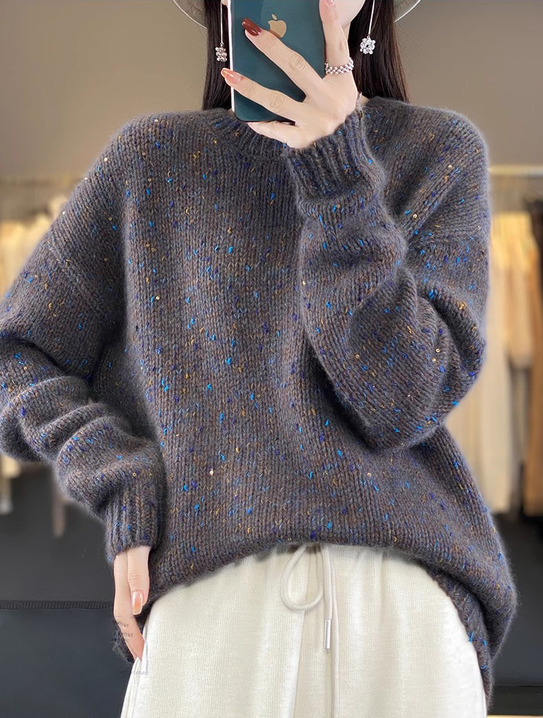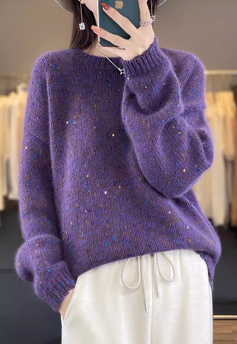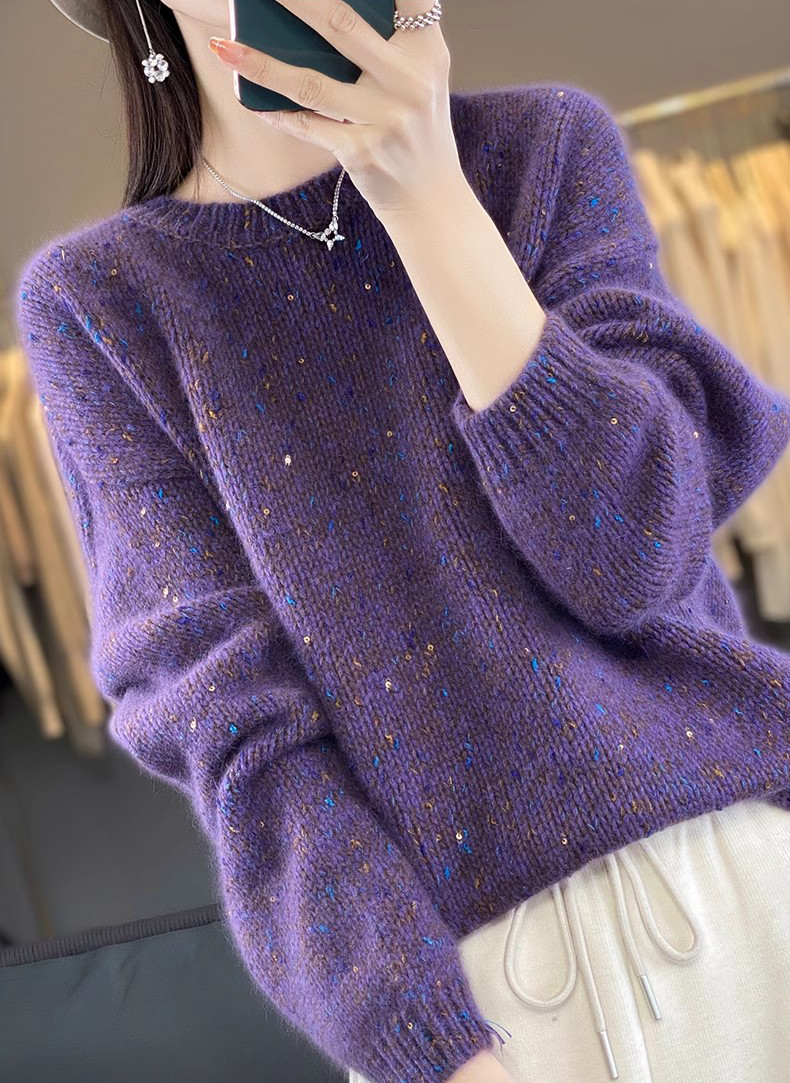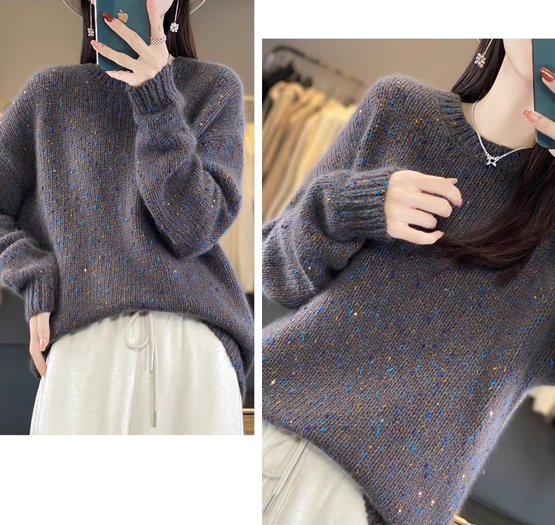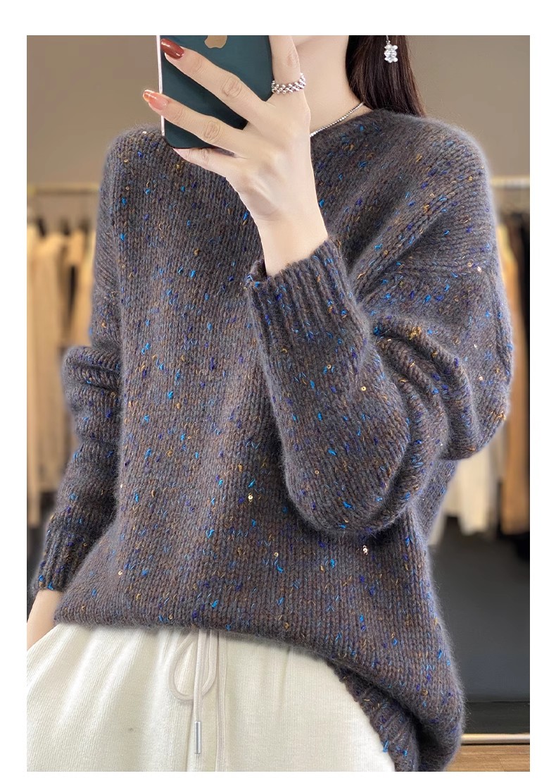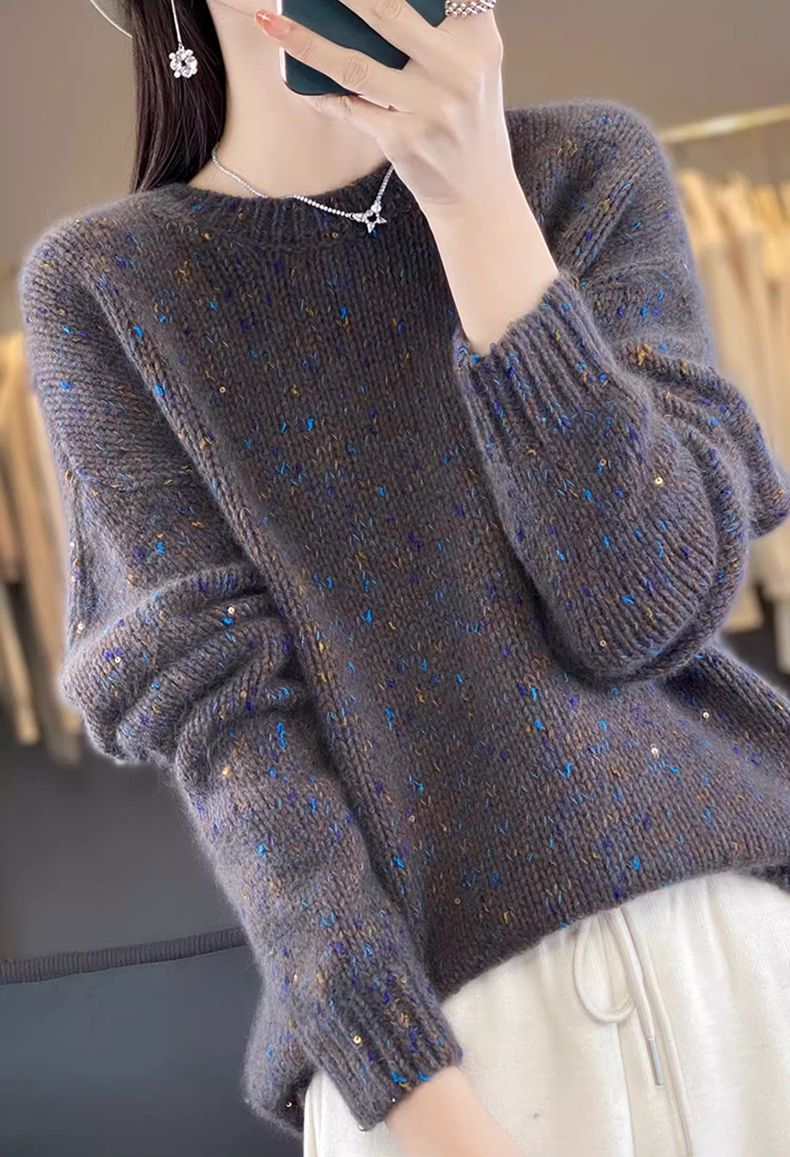 百搭珠片圓領長袖針織衫