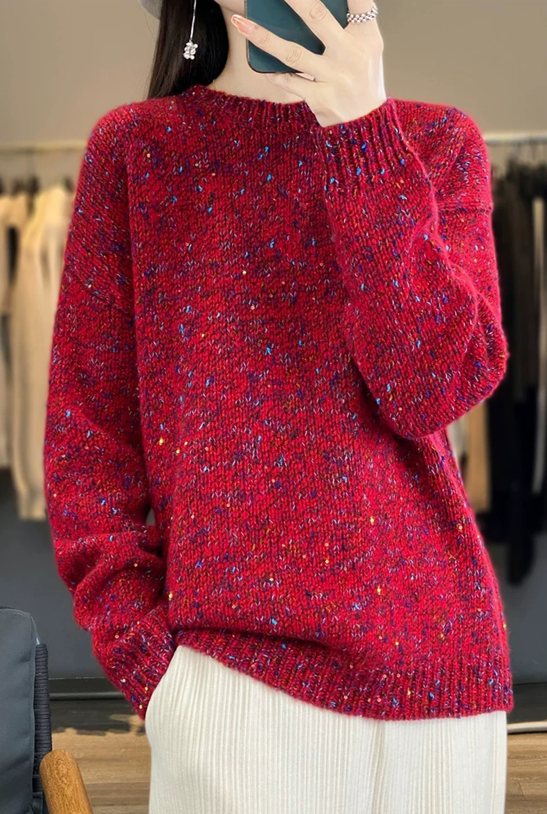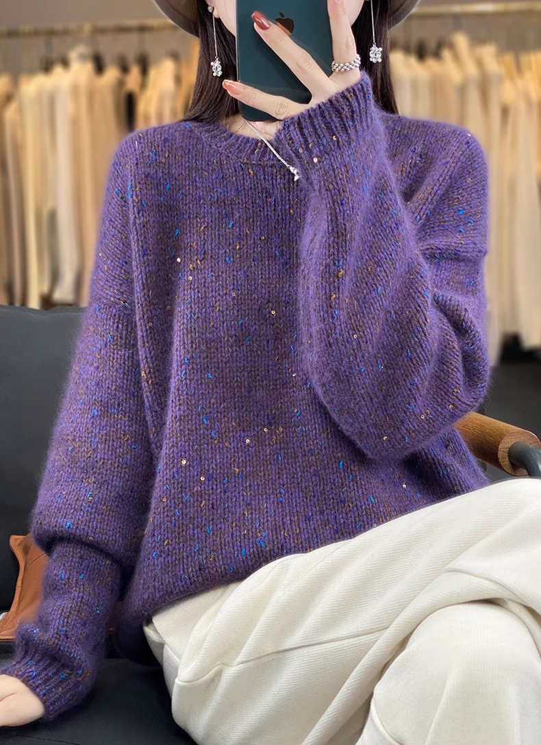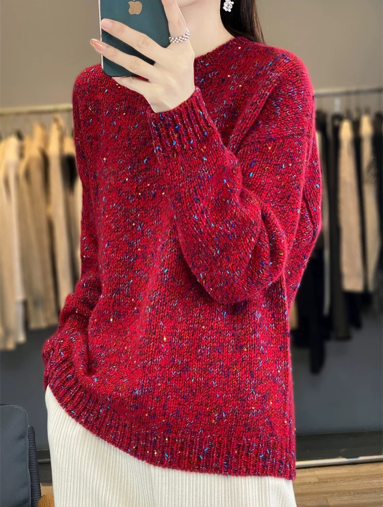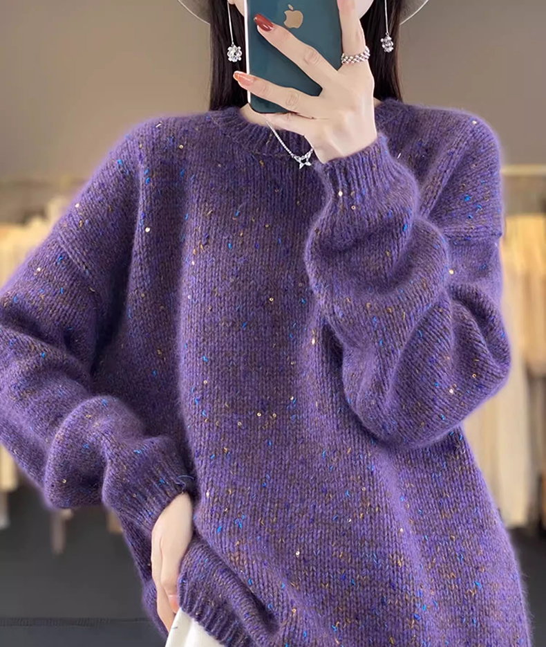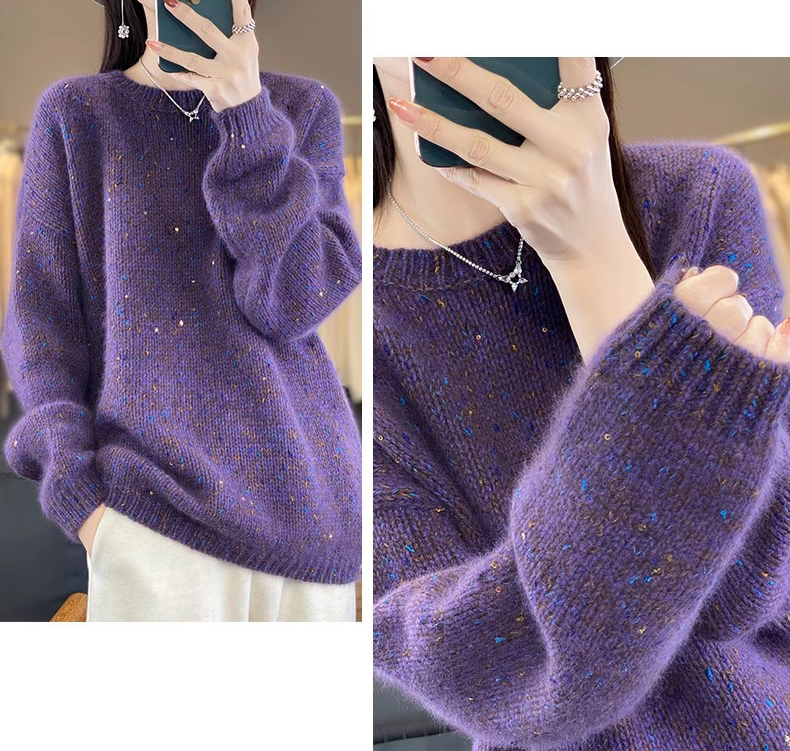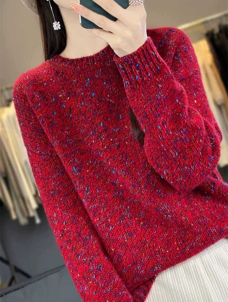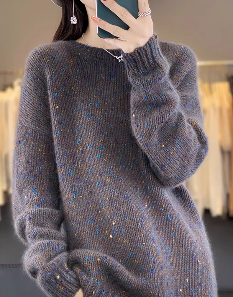 百搭珠片圓領長袖針織衫