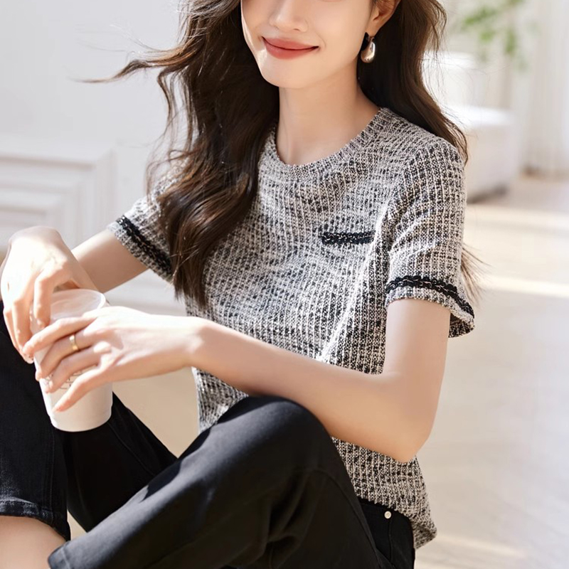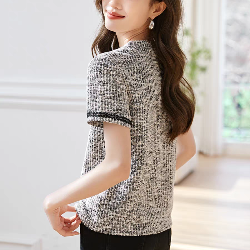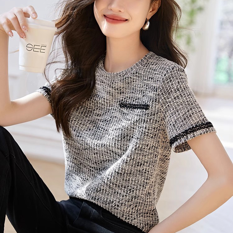 休閒圓領織帶拼接短袖T恤