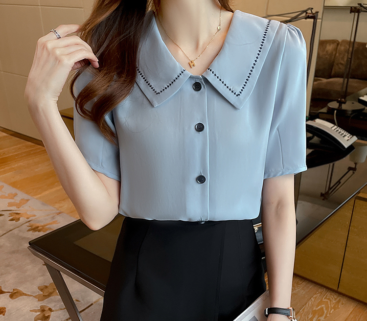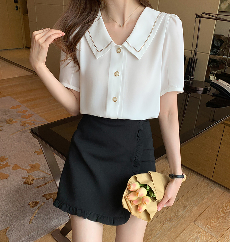 法式POLO領設計感小眾短袖襯衫(2色)