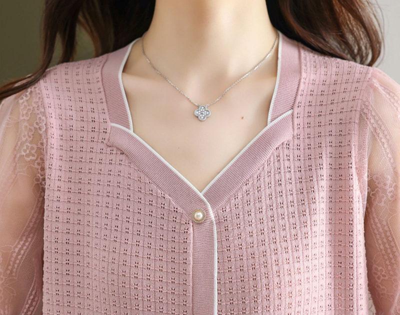 法式方領拼接蕾絲短小衫(4色)