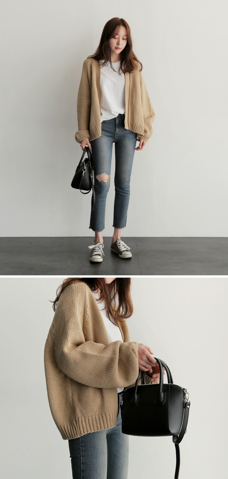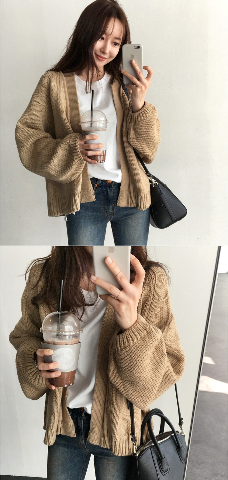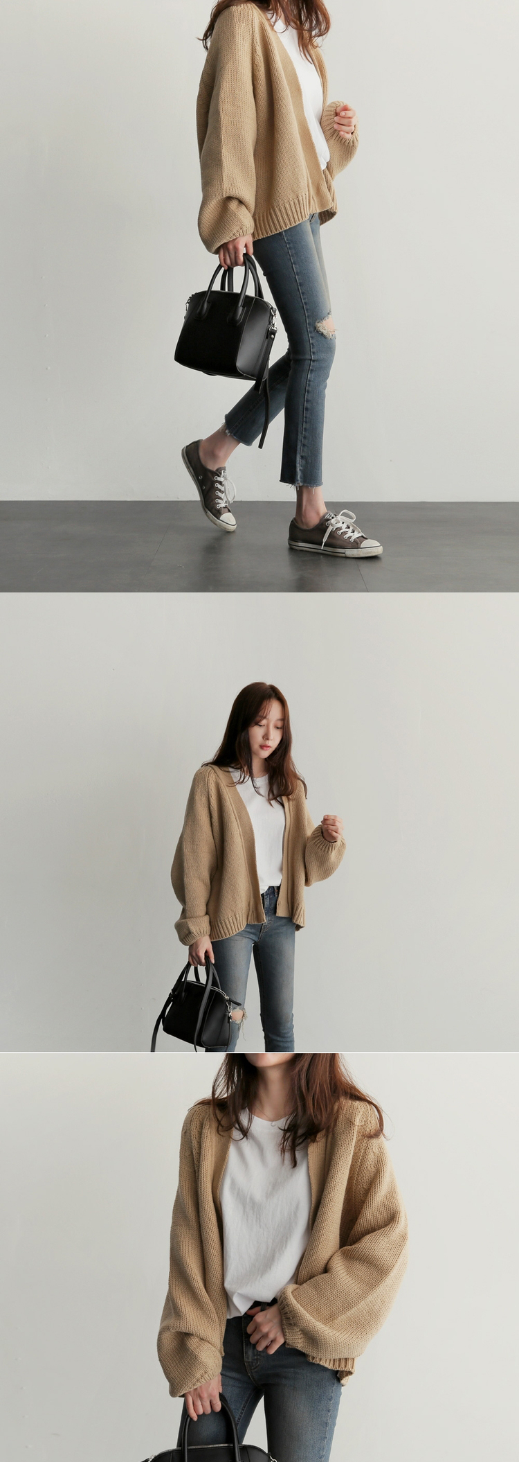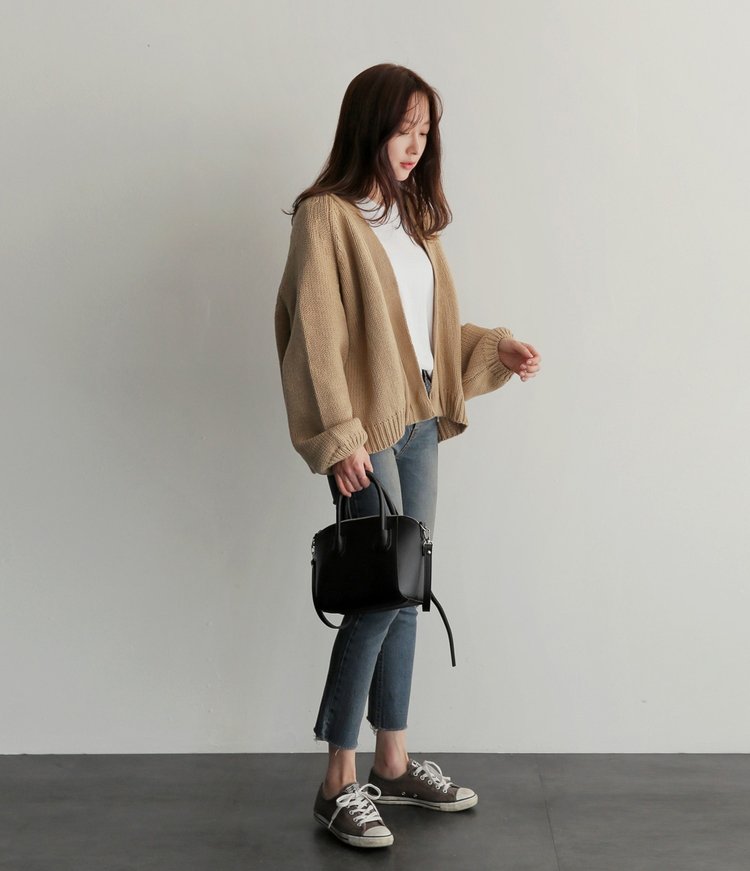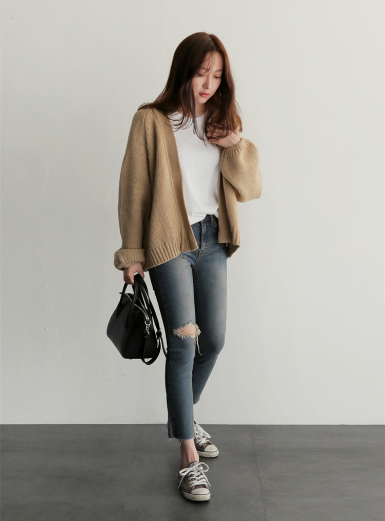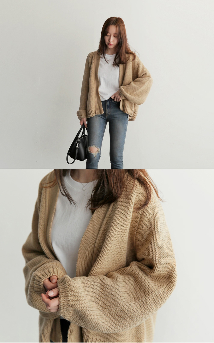 IG爆賣韓系慵懶風寬鬆短版針織開襟衫(3色)