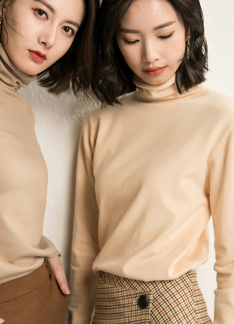 韓系百搭純色高圓領修身打底衫(9色)