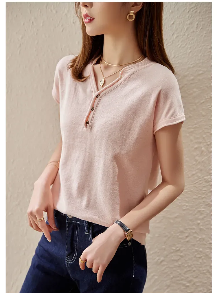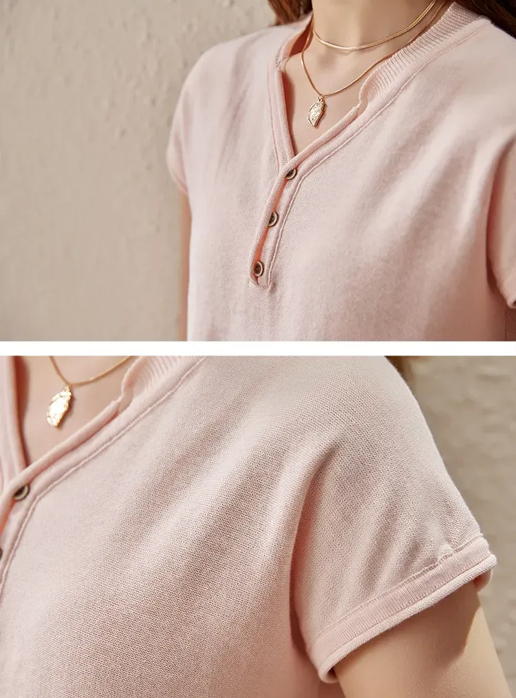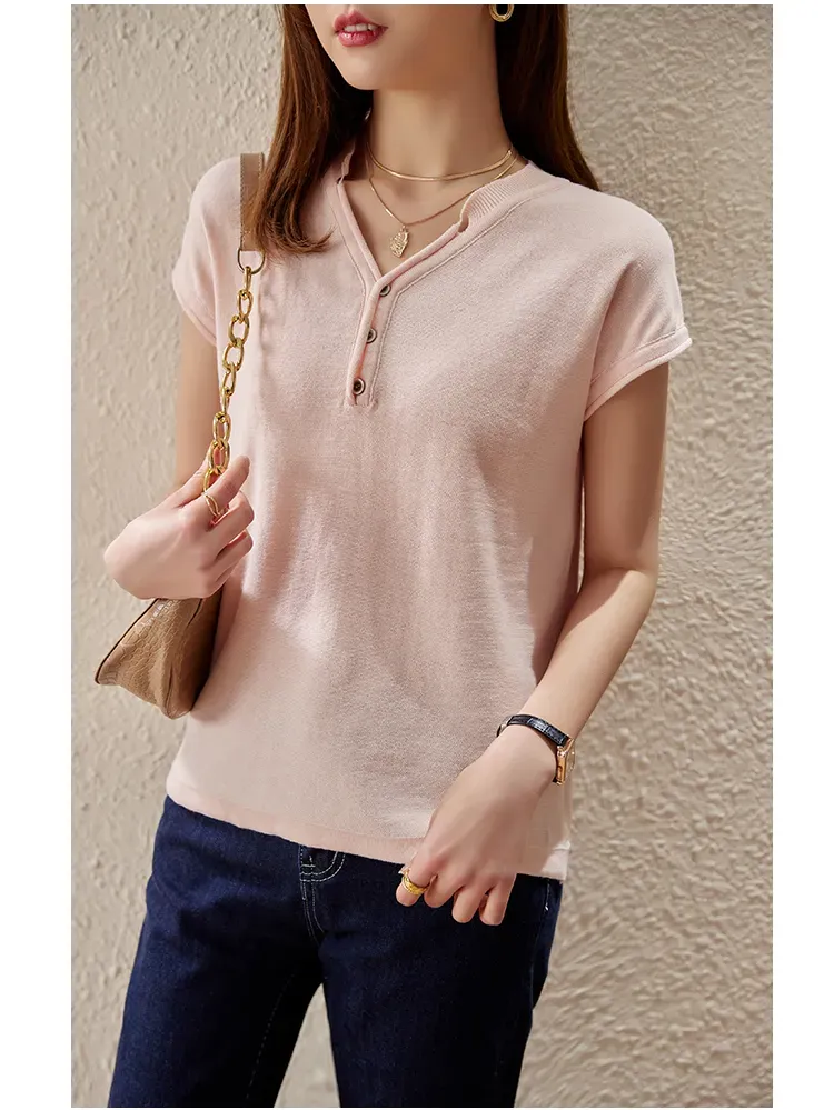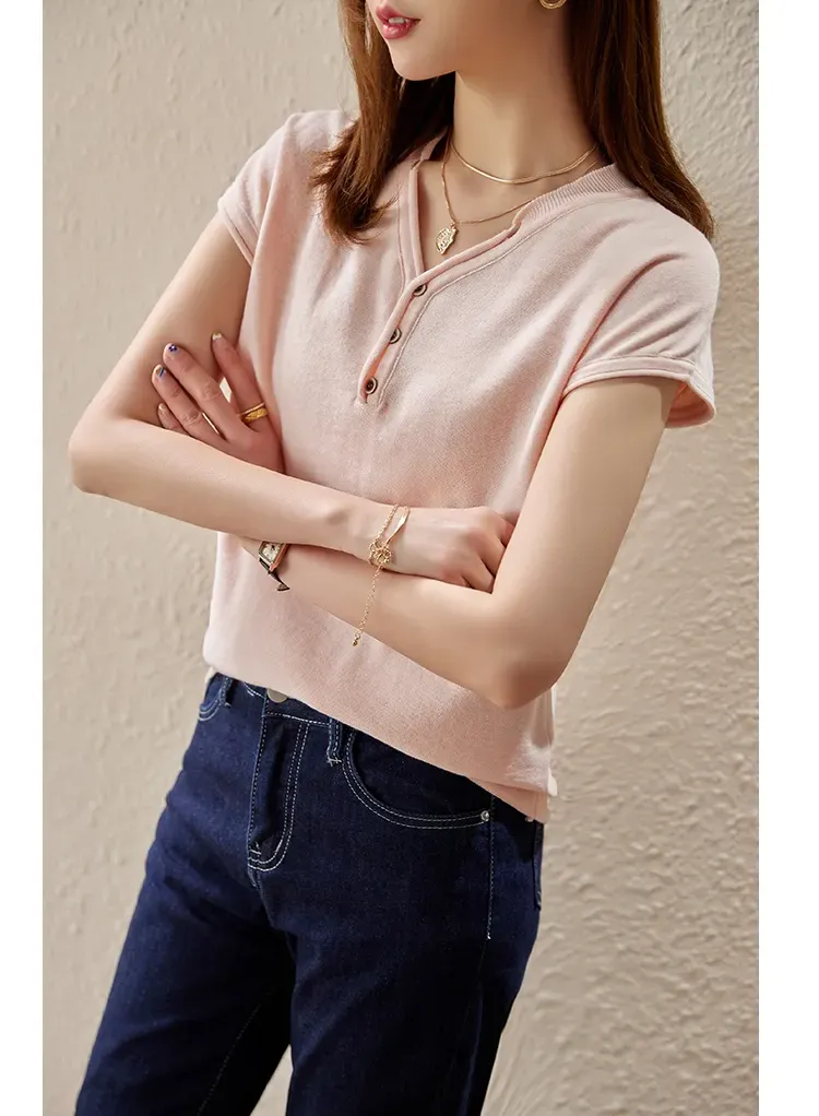 韓系V領簡約搭針織短袖T恤(9色)