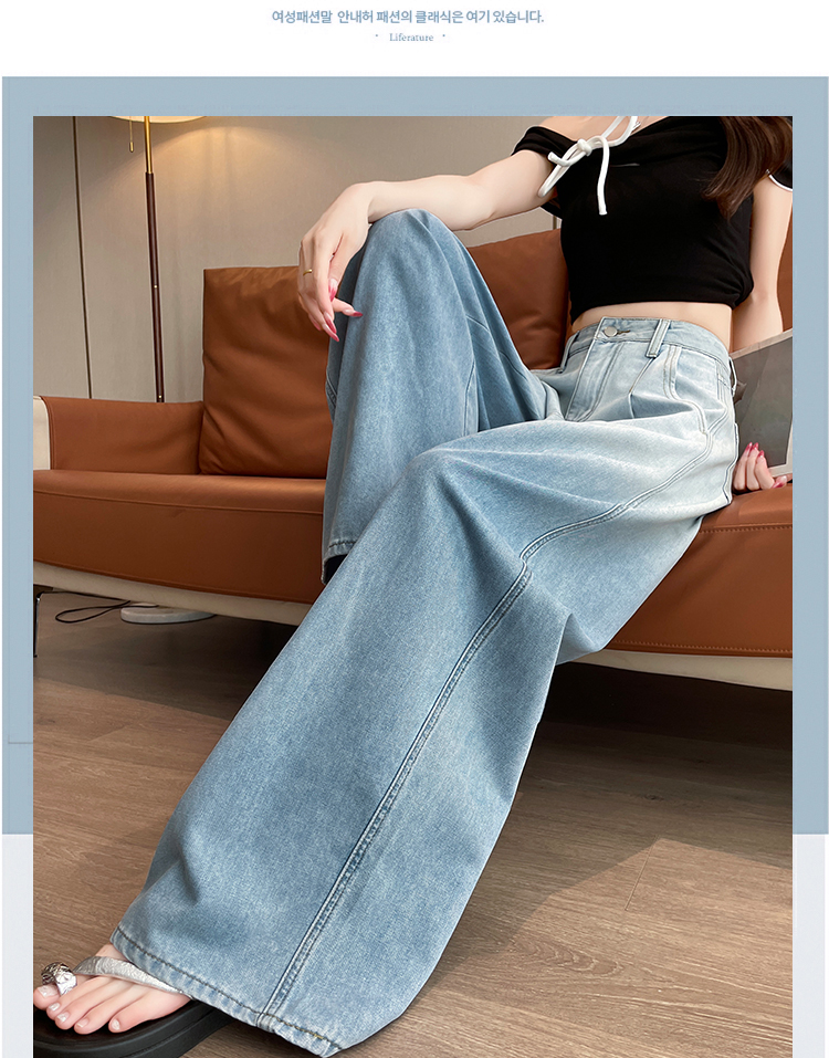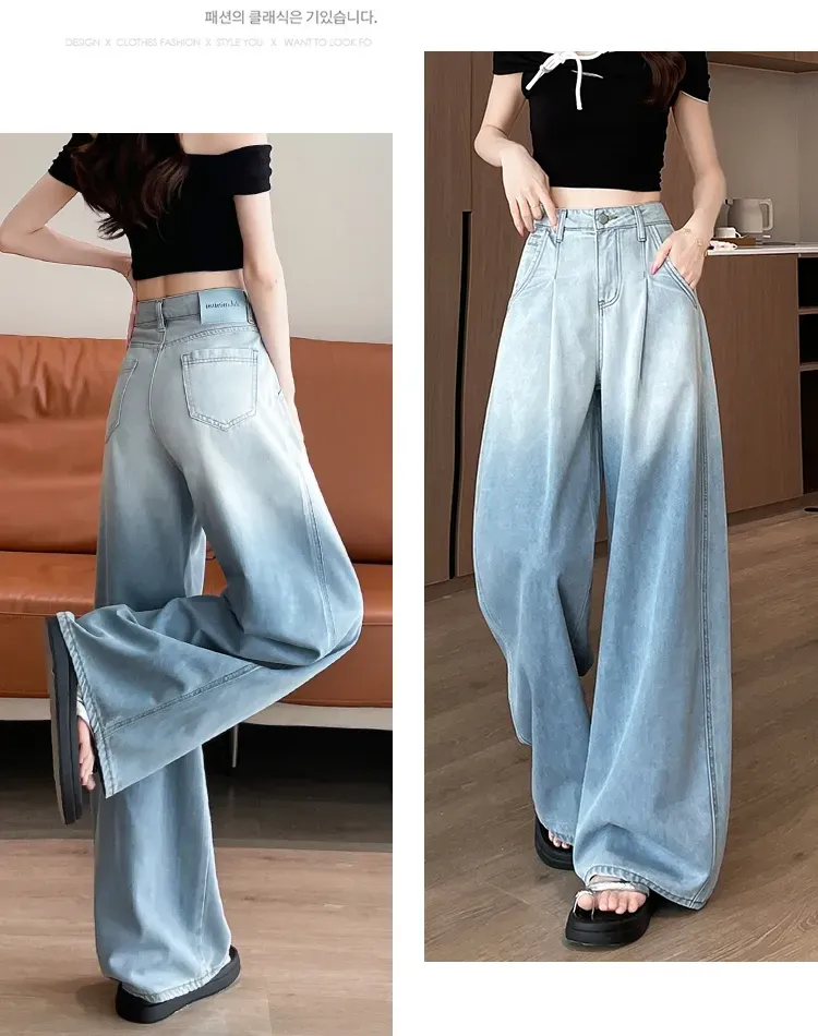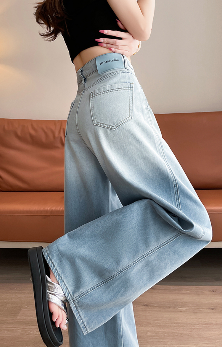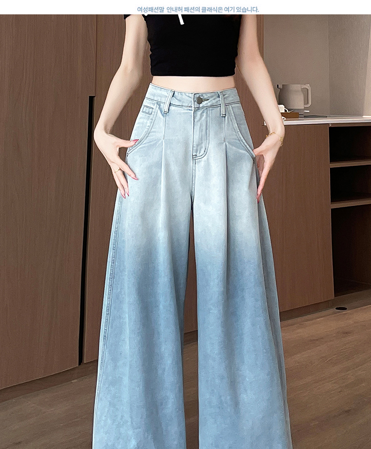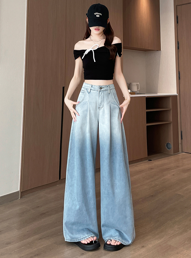 寬鬆垂感漸變色軟闊腿牛仔褲