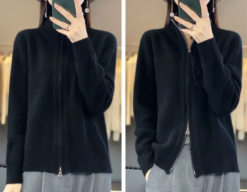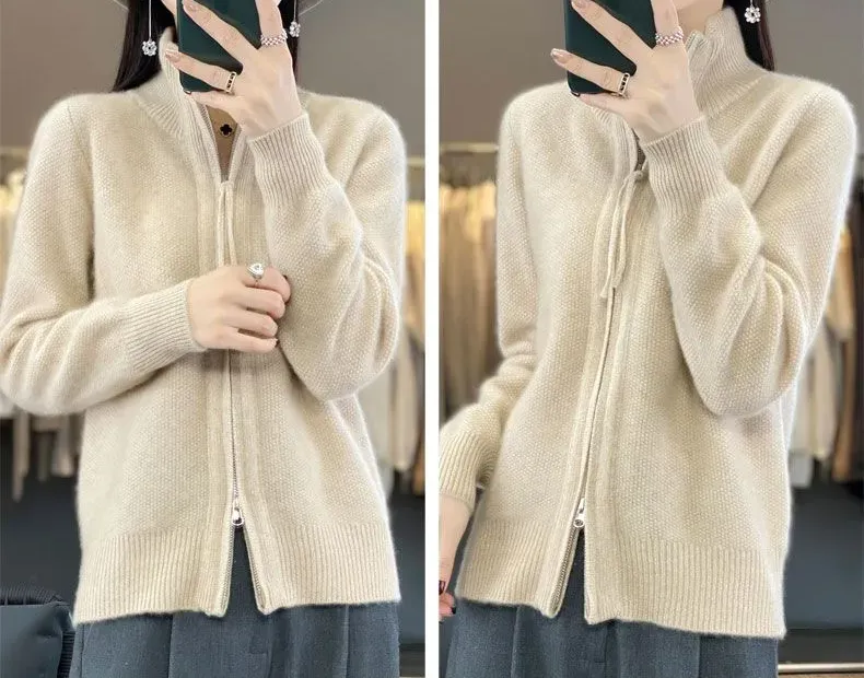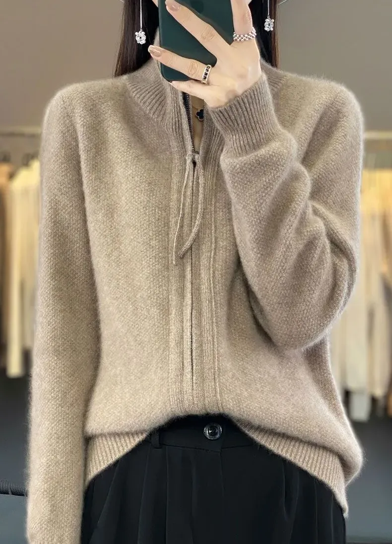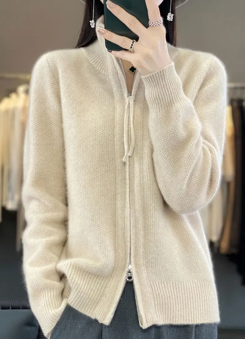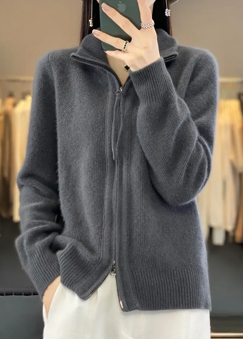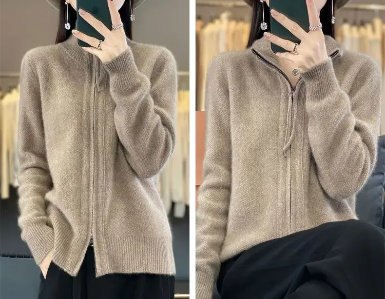 寬鬆拉鍊肌理感針織開襟衫(7色)