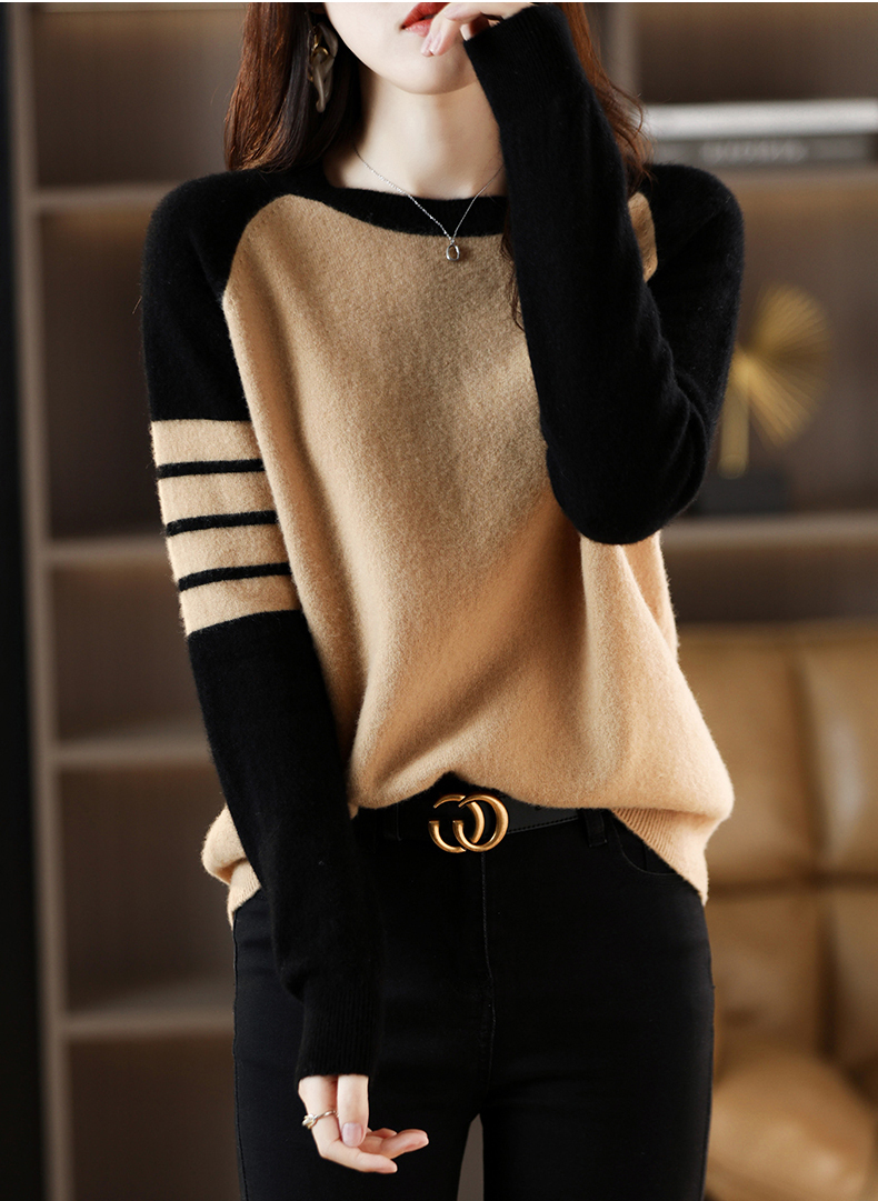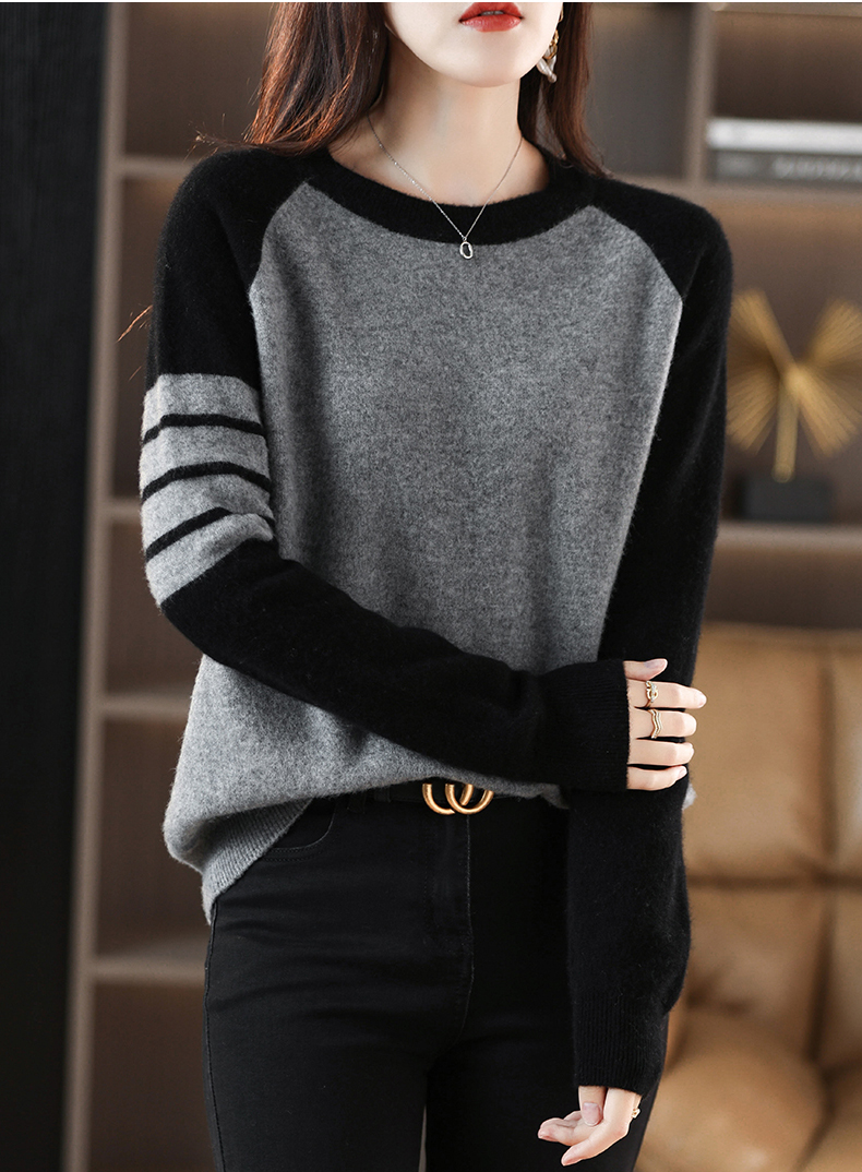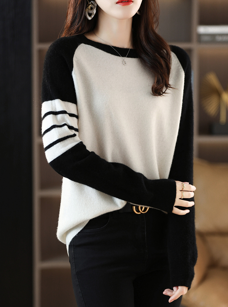 圓領拼色條紋撞色袖寬鬆針織衫(5色)
