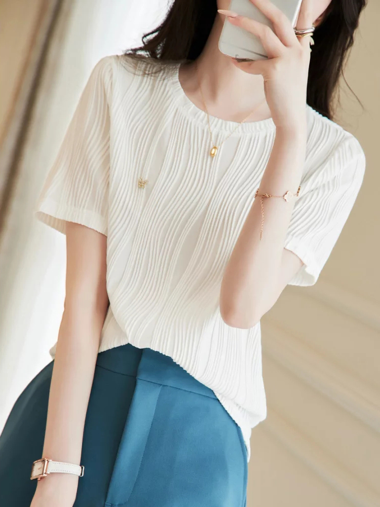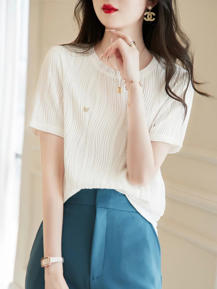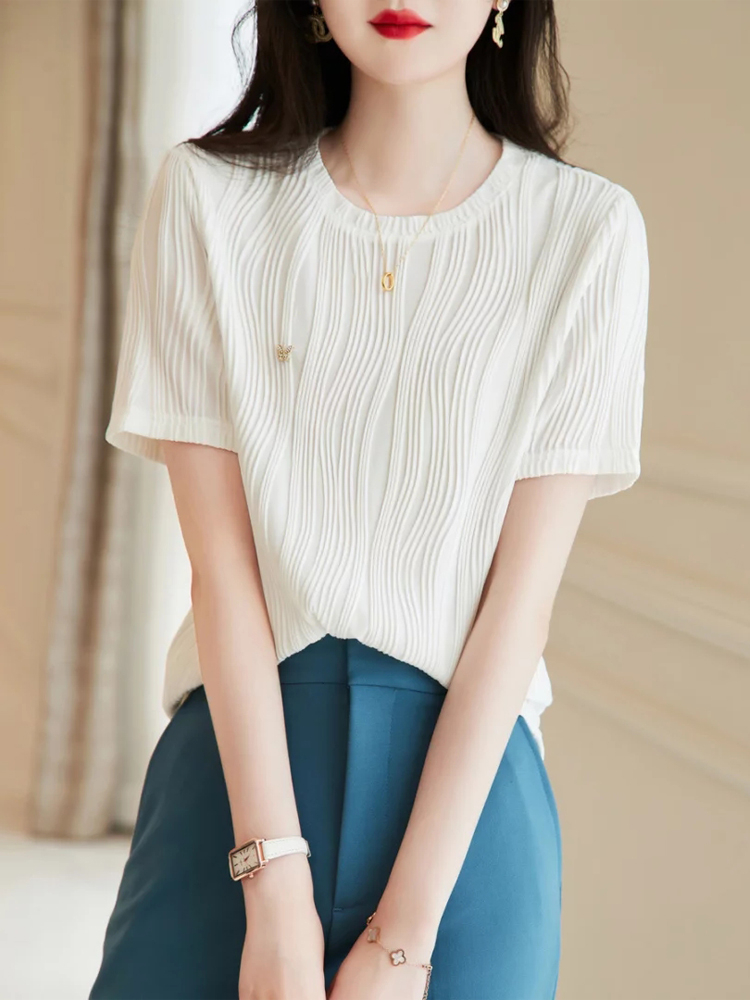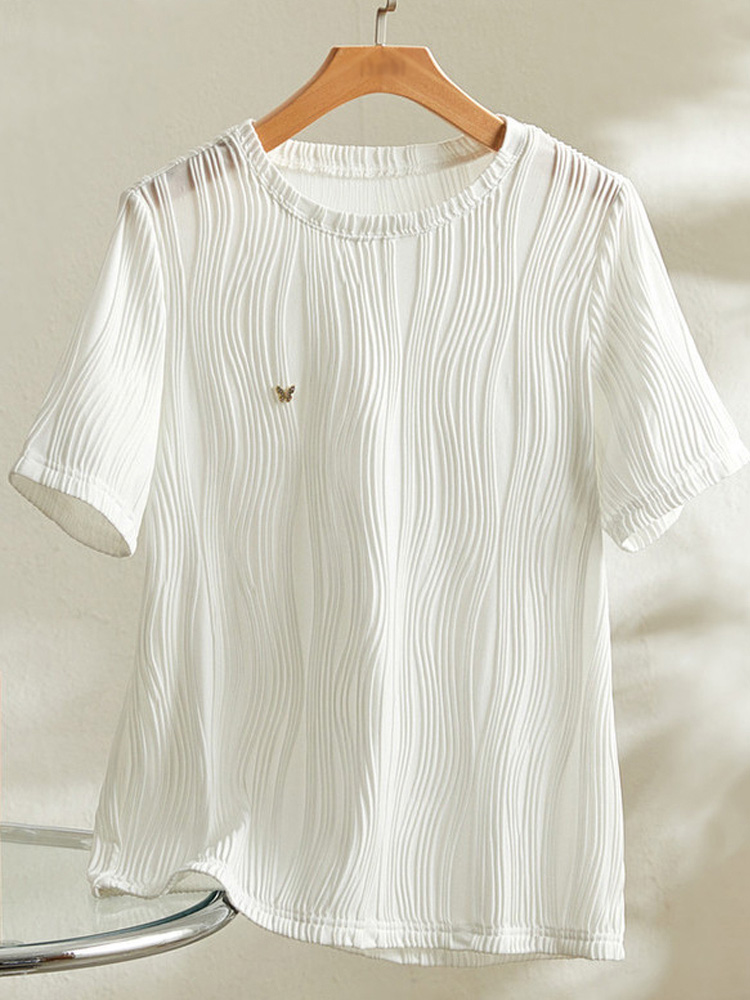 紋理感設計圓領短袖T恤(2色)
