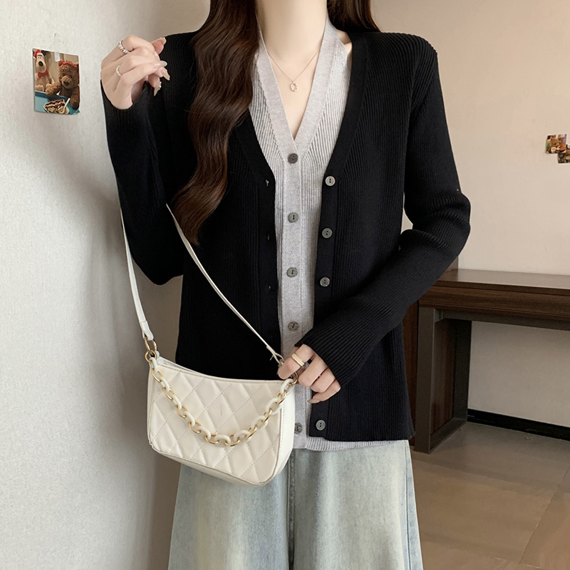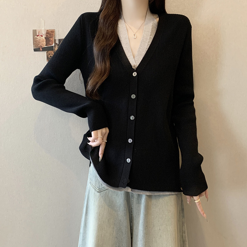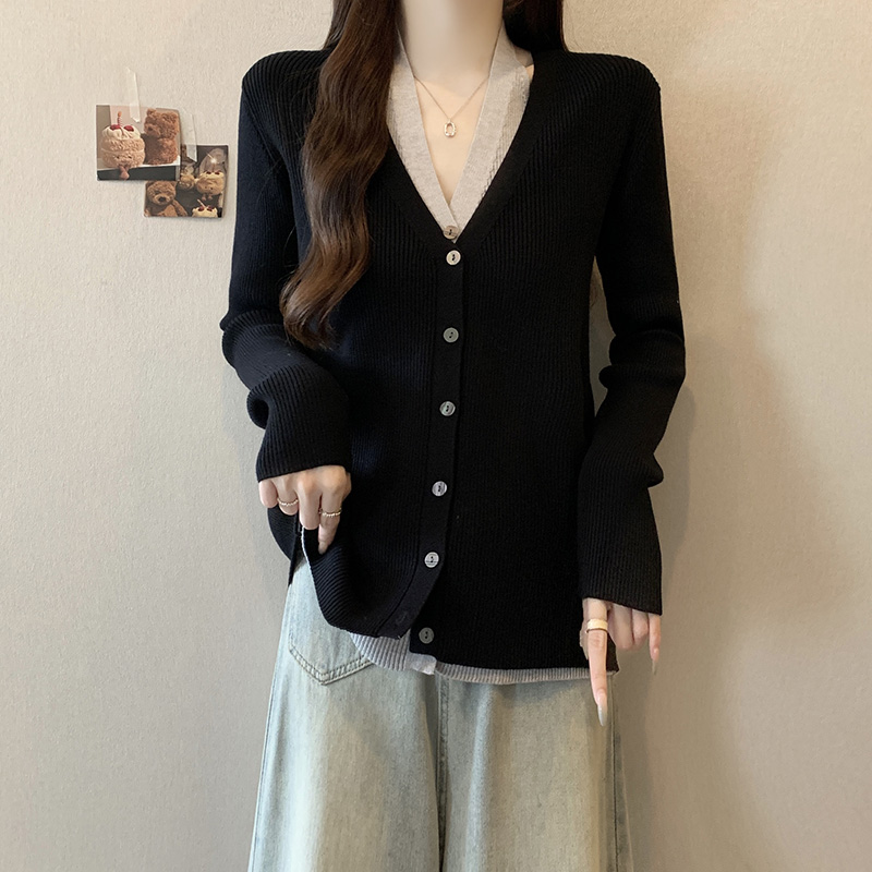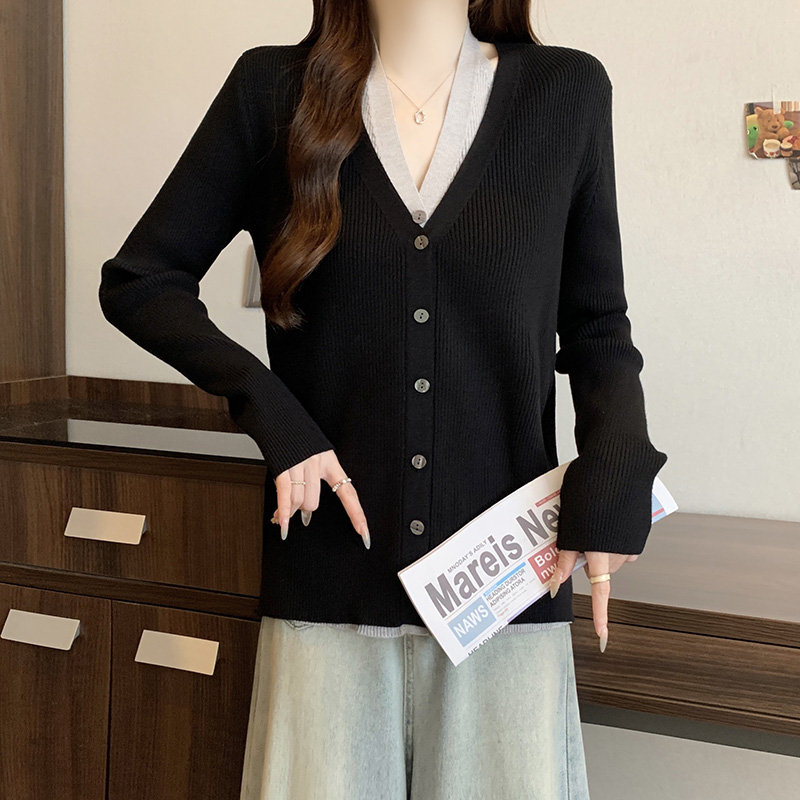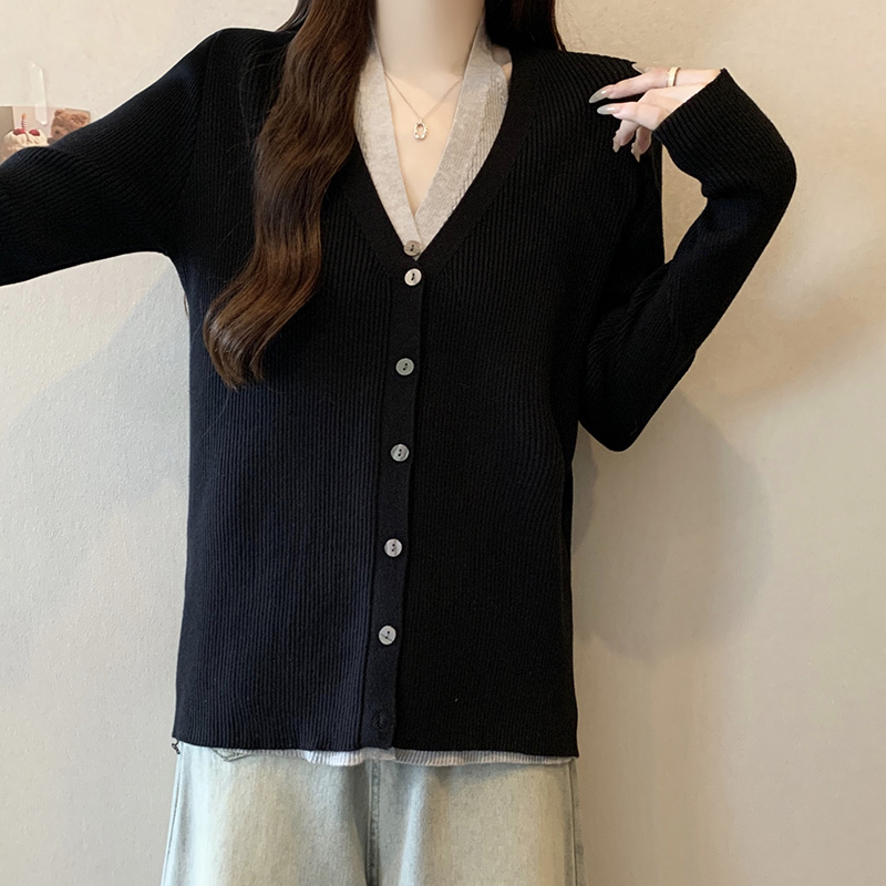 V領假兩件針織開襟衫