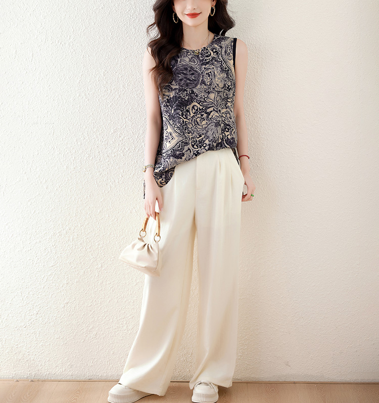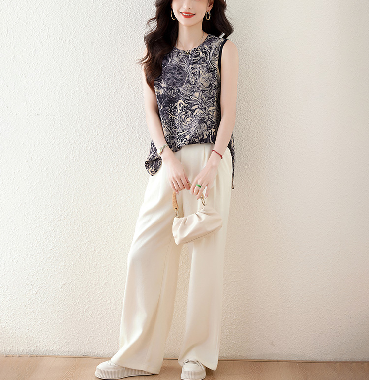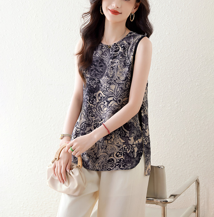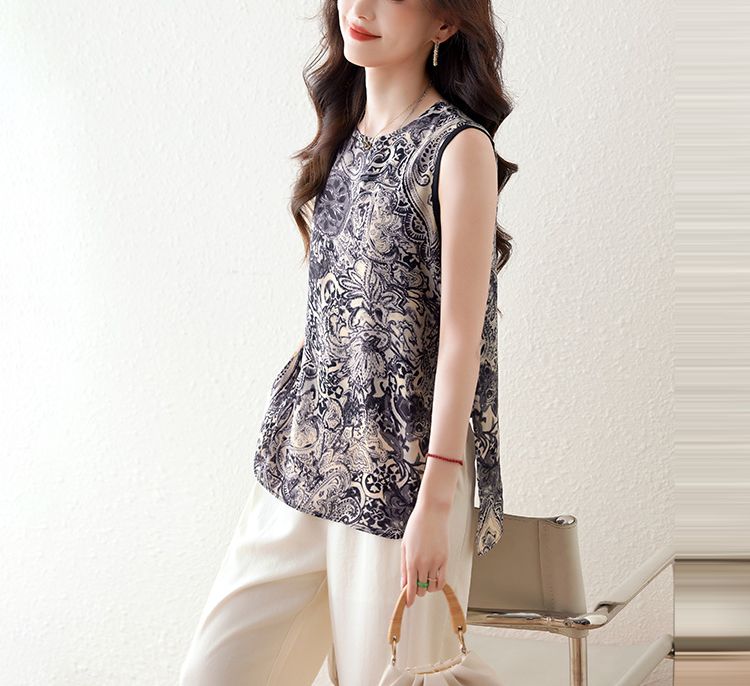 青花瓷紋印花開叉無袖小衫