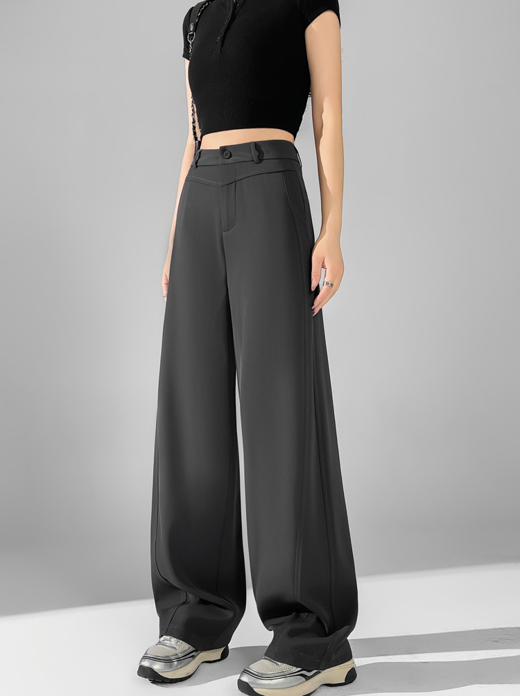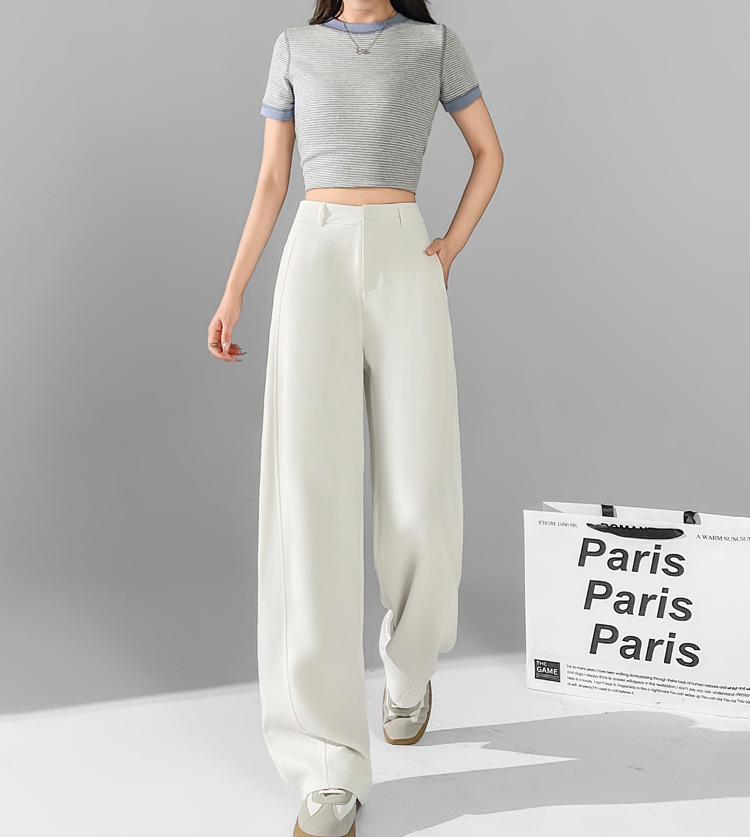 休閒高腰直筒垂感闊腿褲(3色)