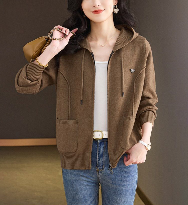 休閒連帽領拉鍊針織開衫(5色)