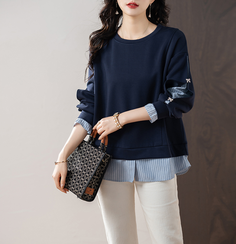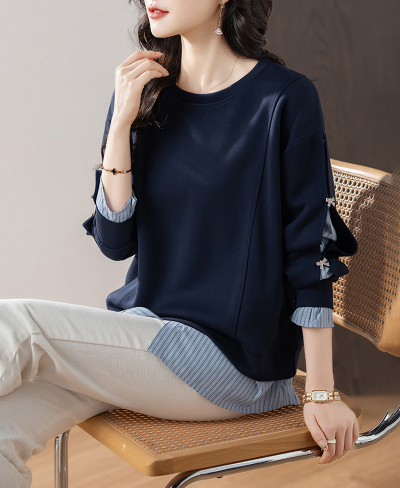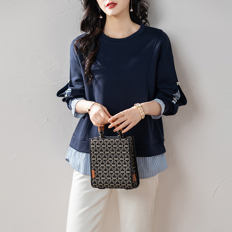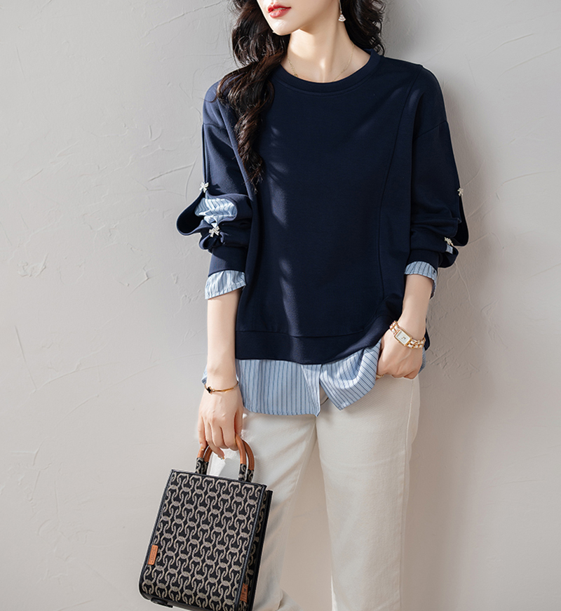 休閒圓領拼接假兩件衛衣