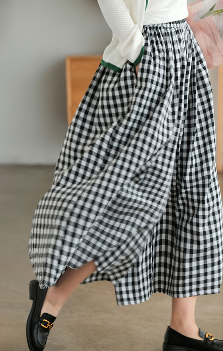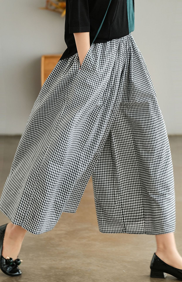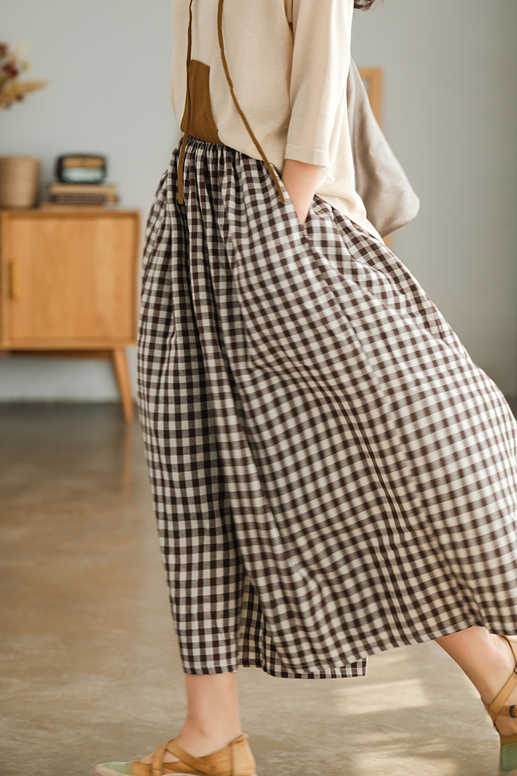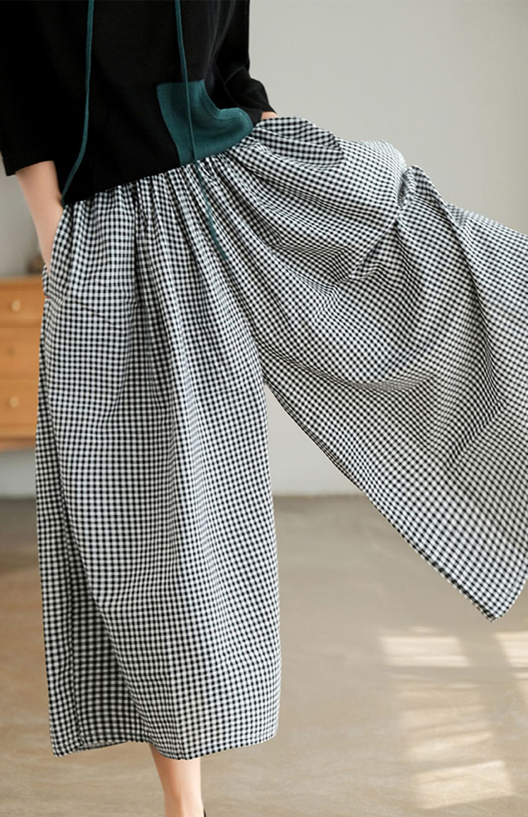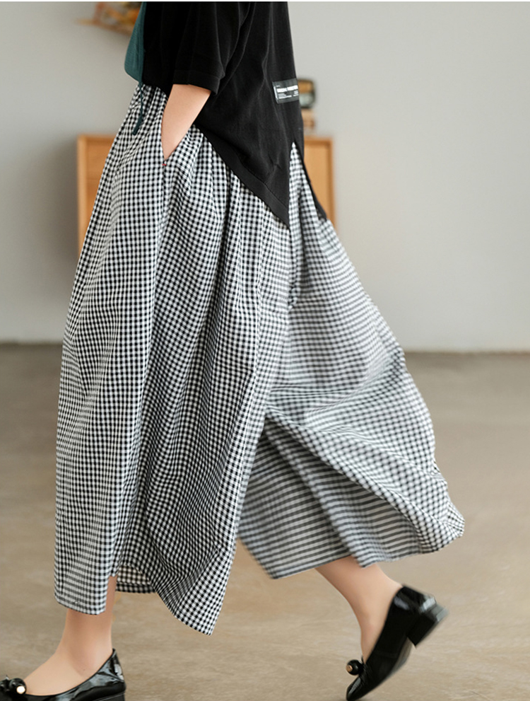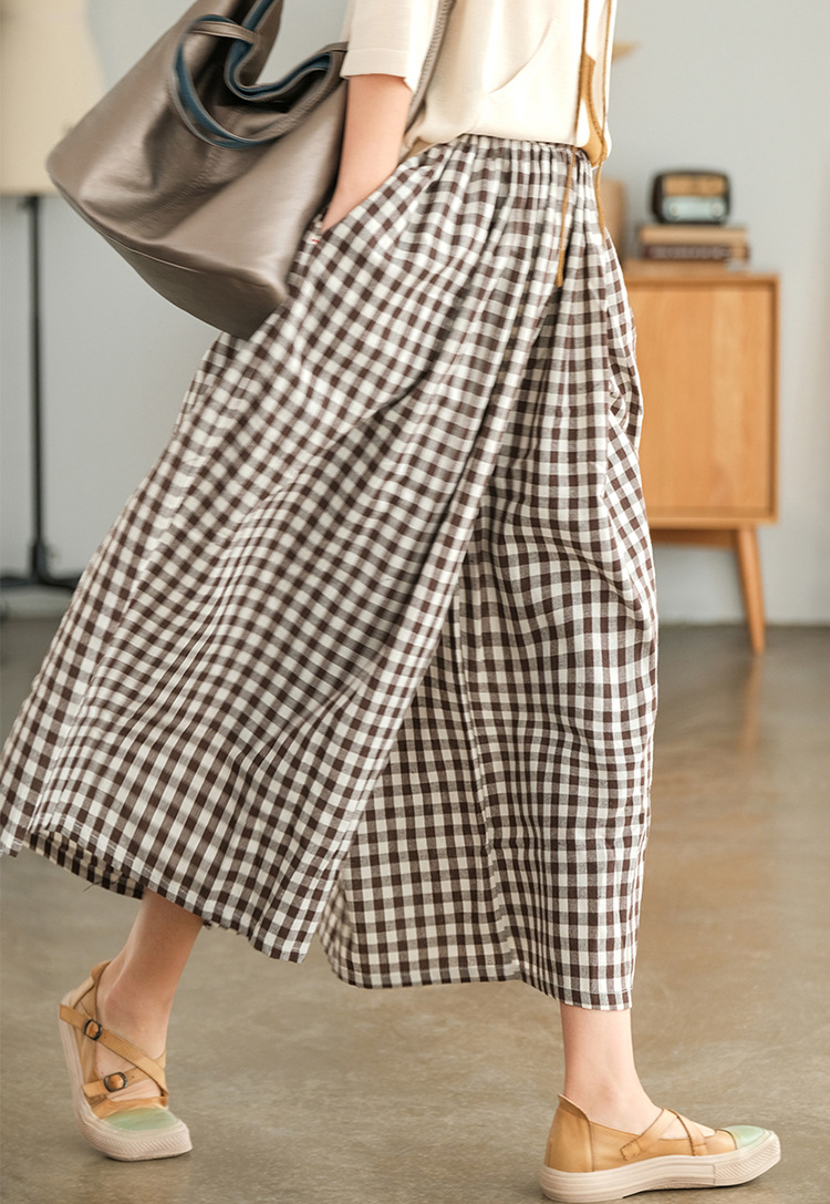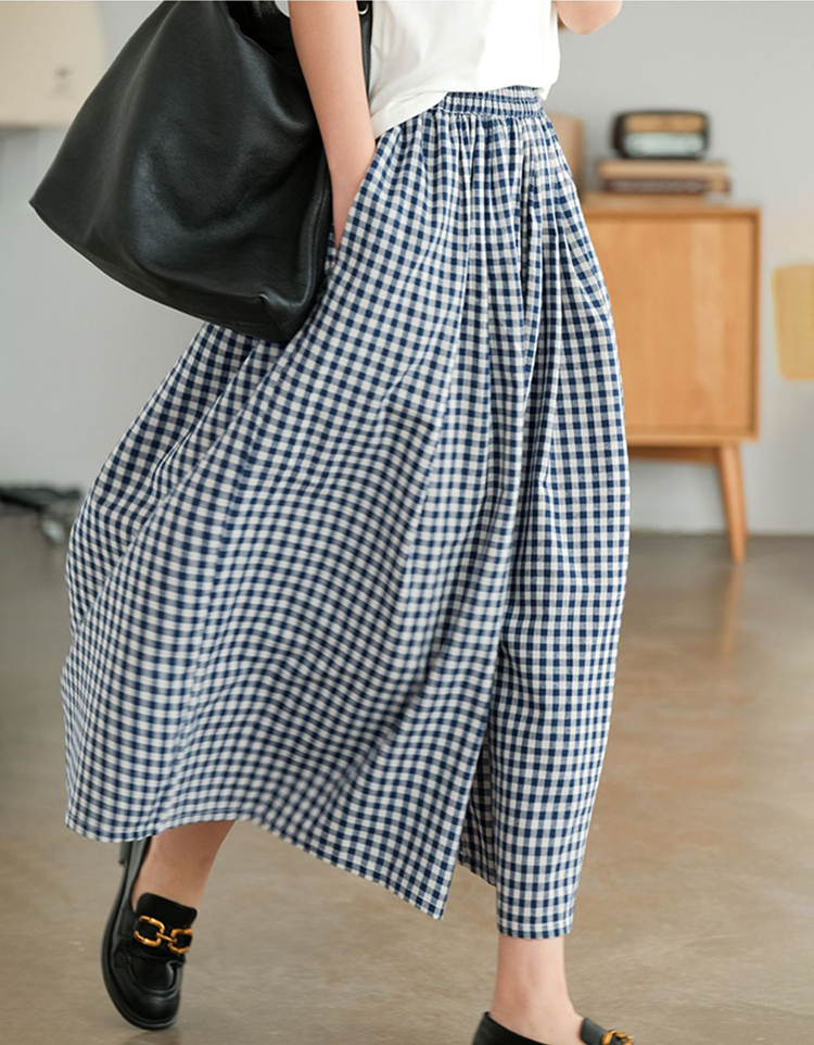舒適休閒棉麻格紋闊腿褲裙(4色)