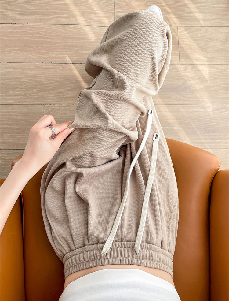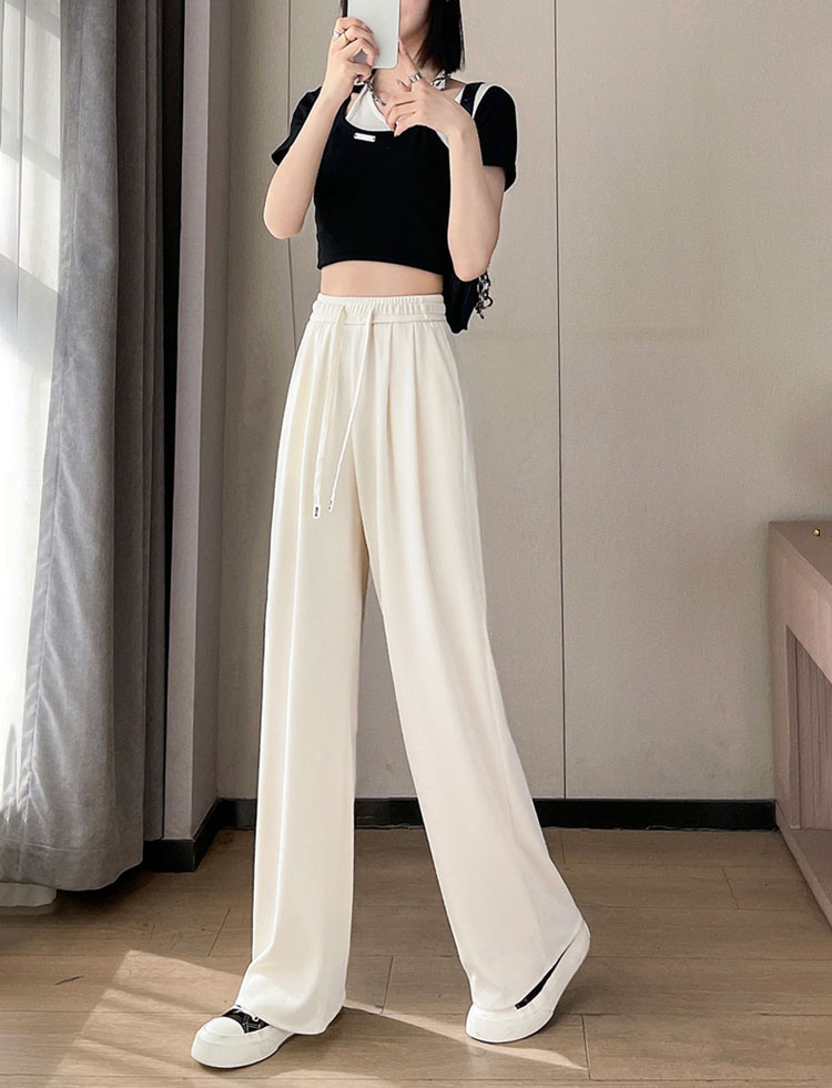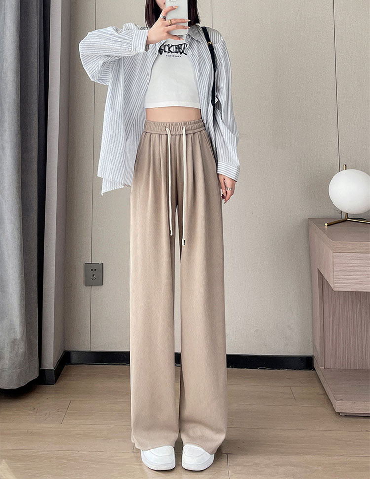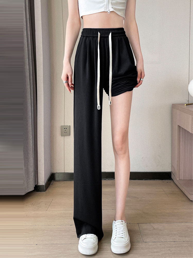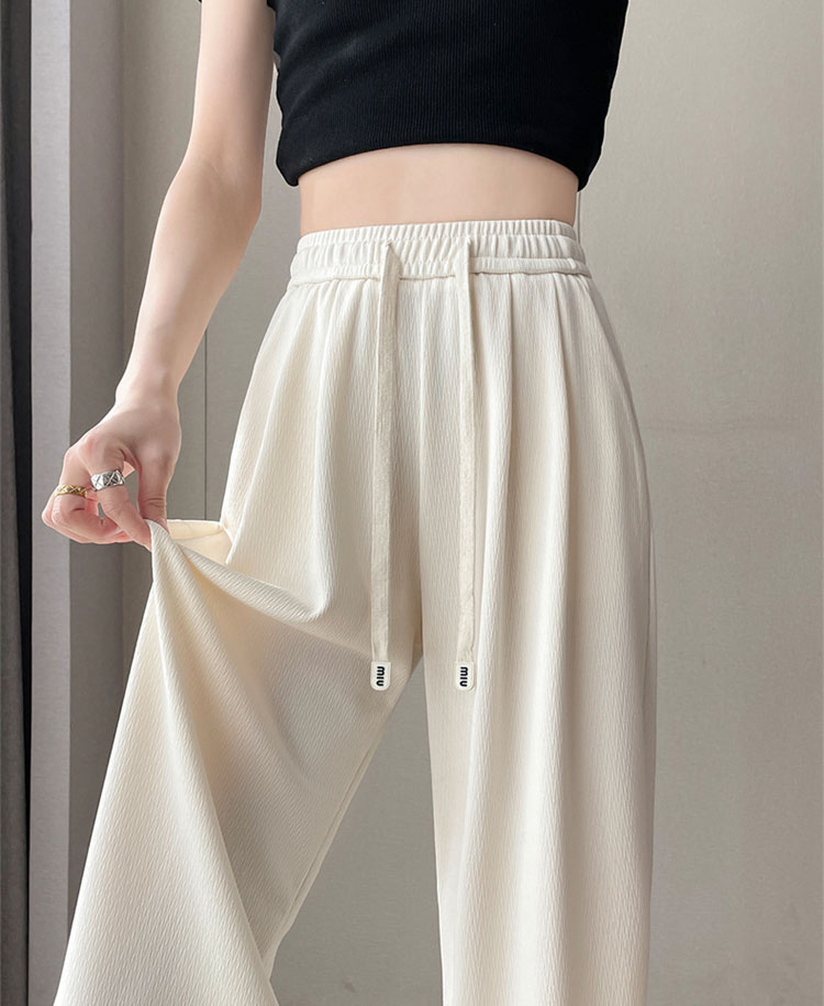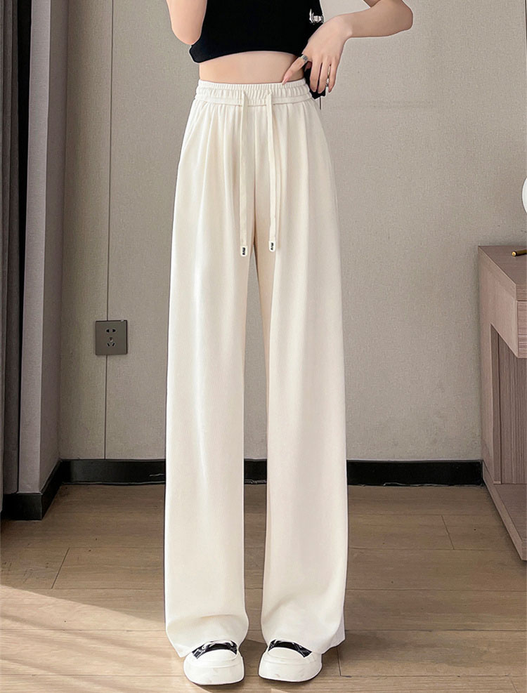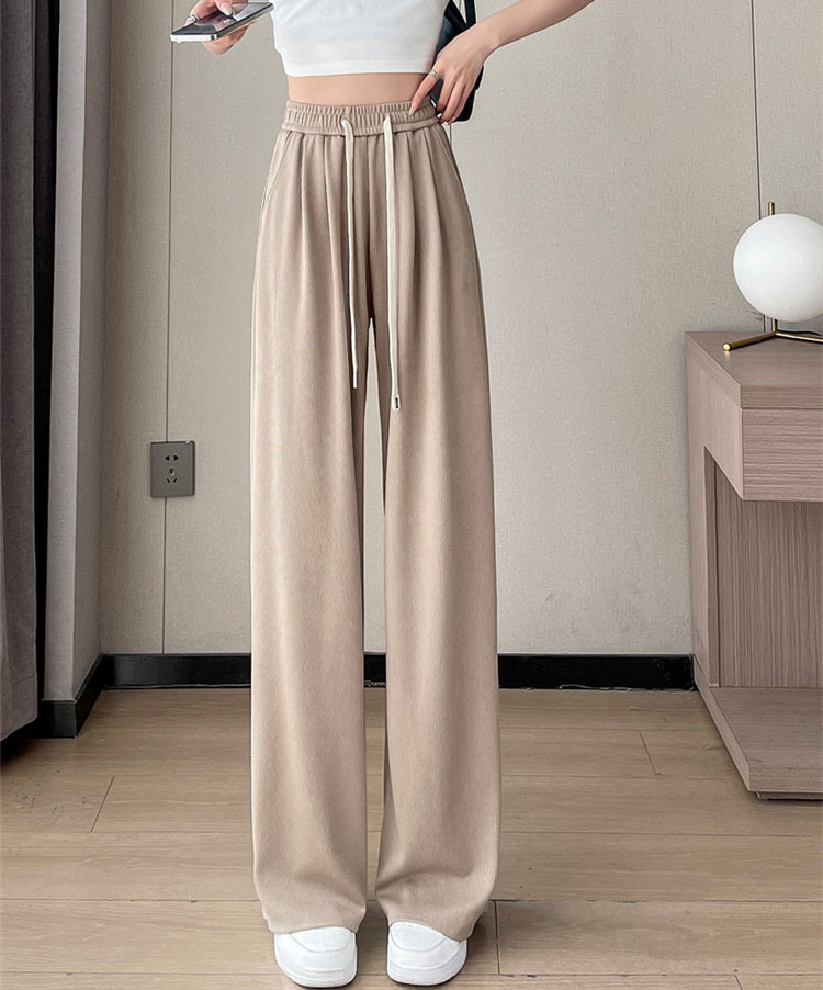 舒適竹節紋肌理感高腰窄版直筒休閒褲(3色)