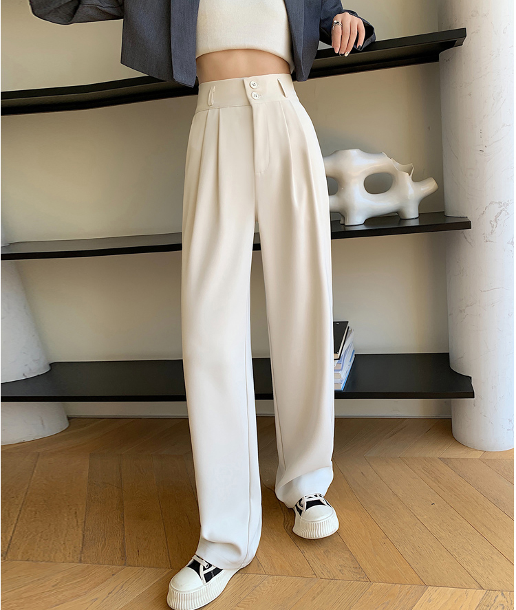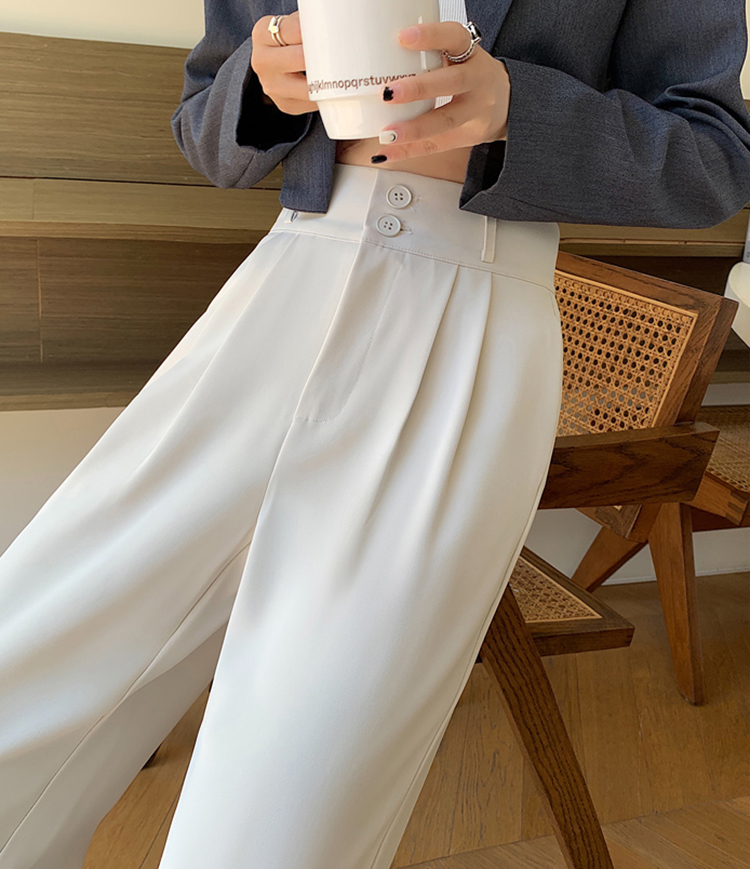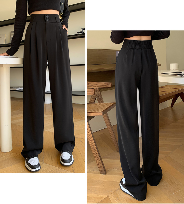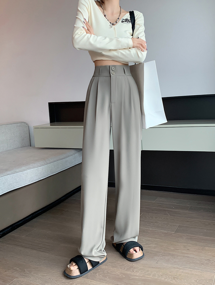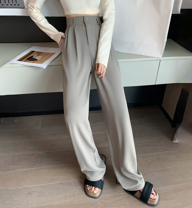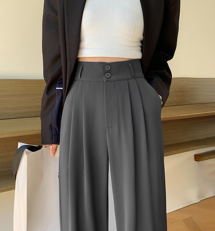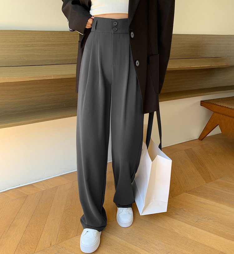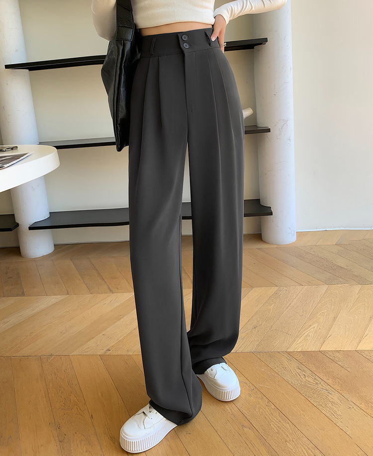 舒適雙扣高腰垂感窄版拖地西裝褲(4色)