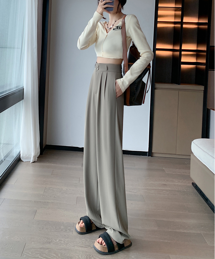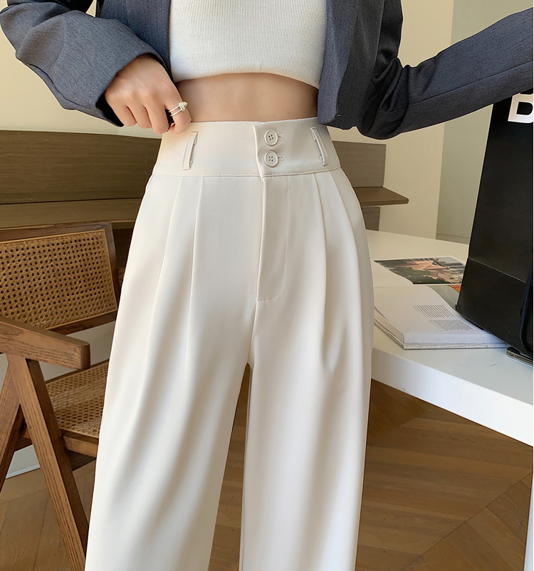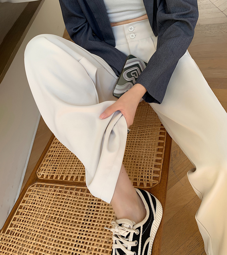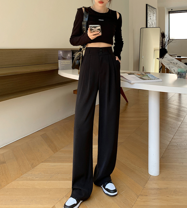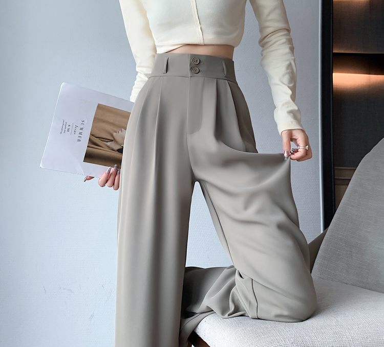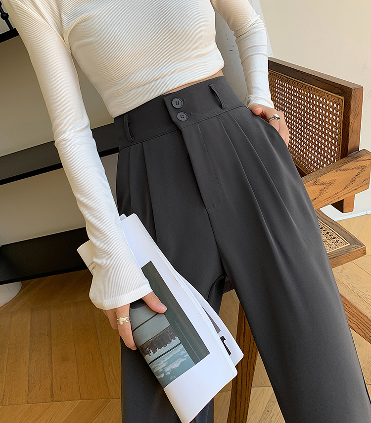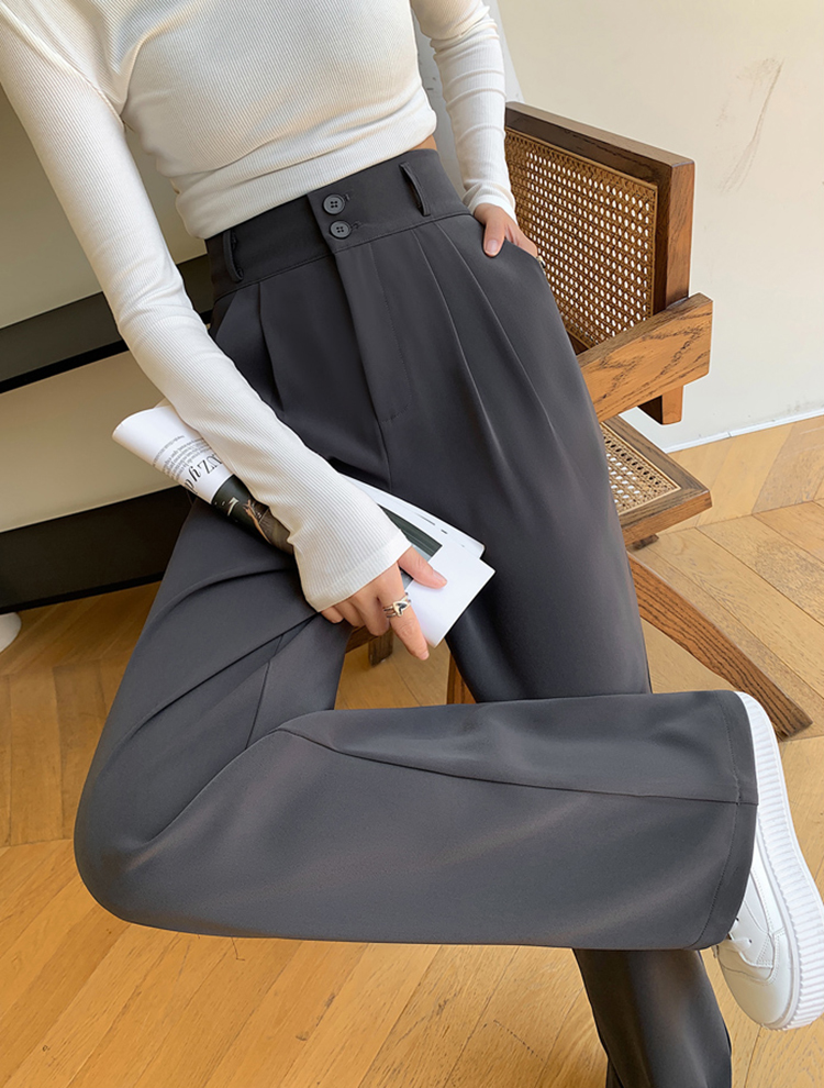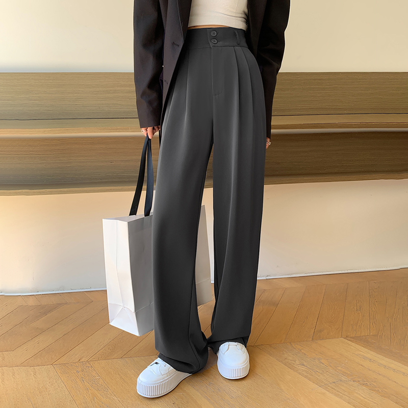 舒適雙扣高腰垂感窄版拖地西裝褲(4色)