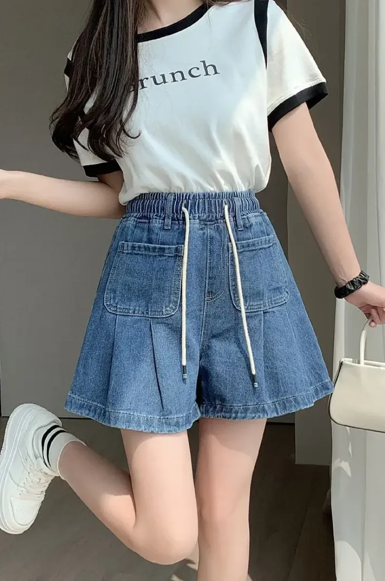 【S-5XL】寬鬆荷葉邊顯瘦牛仔短褲