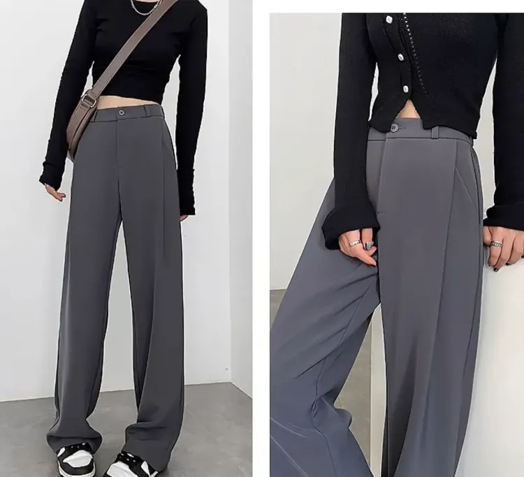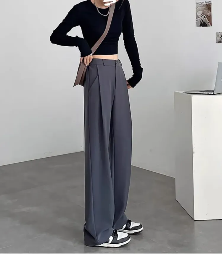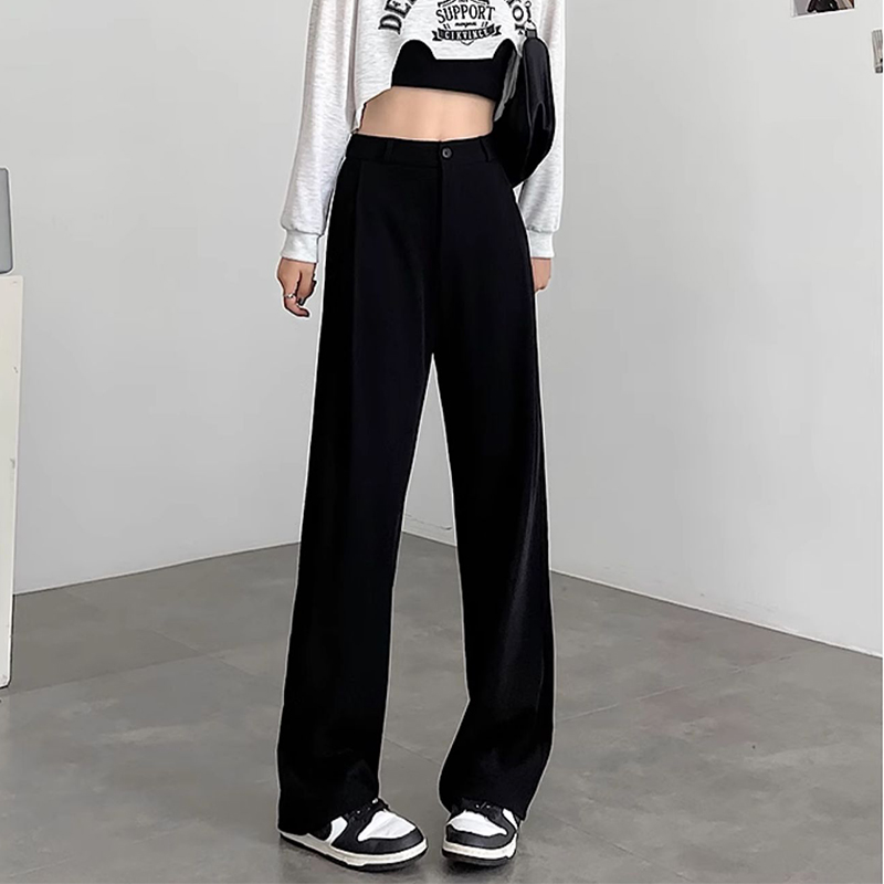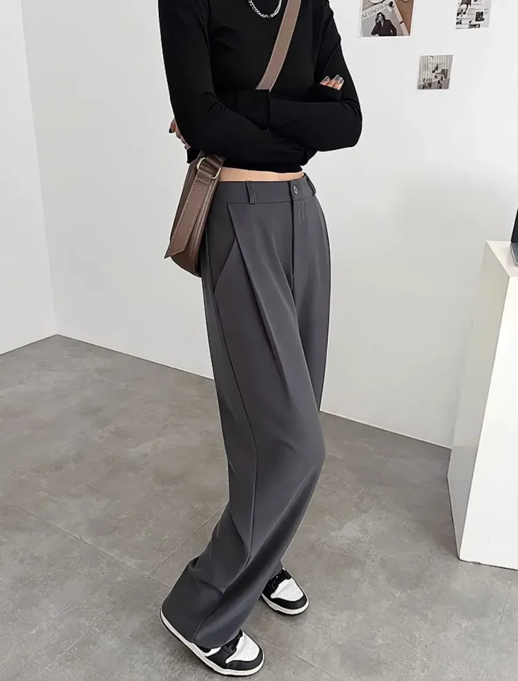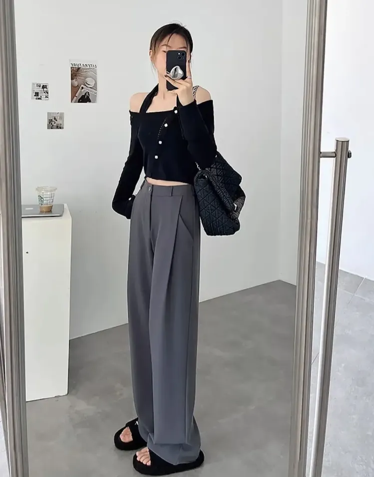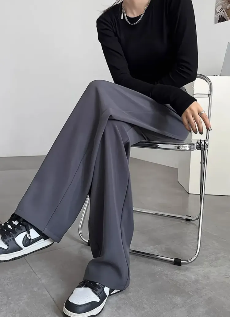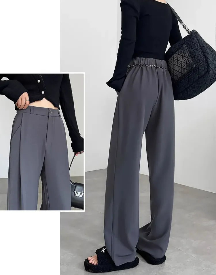 休閒鬆緊腰垂感窄版西裝闊腿褲(4色)