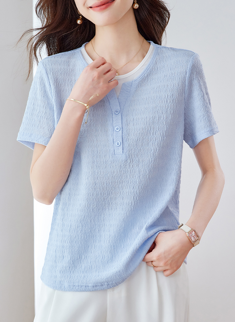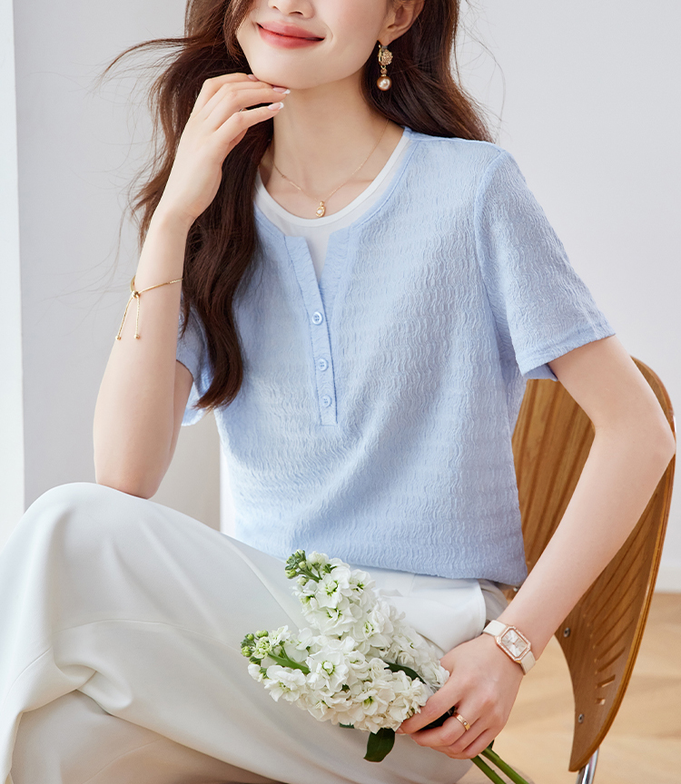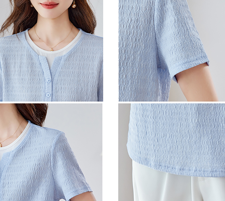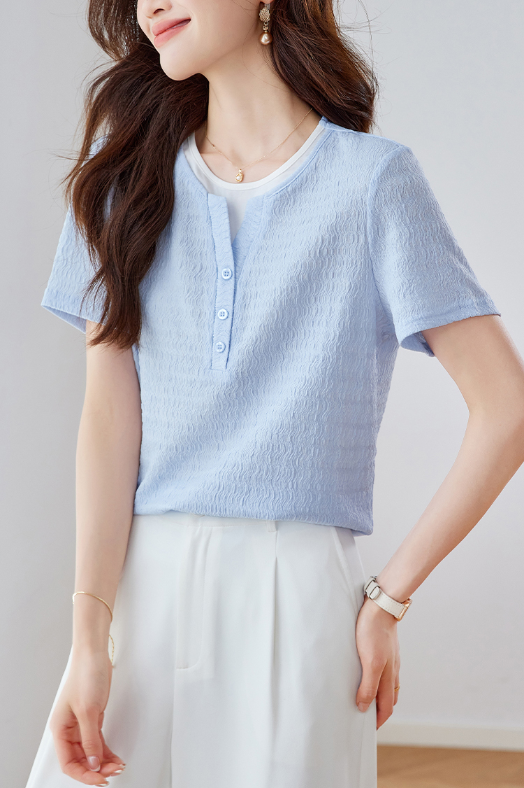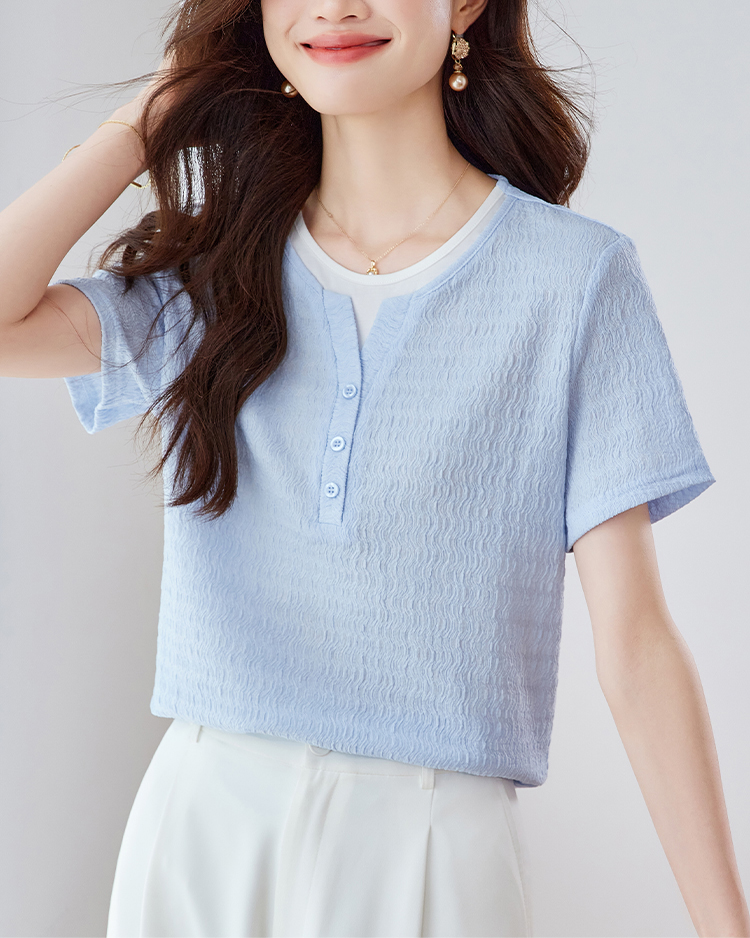 優雅假兩件拼接肌理短袖T恤