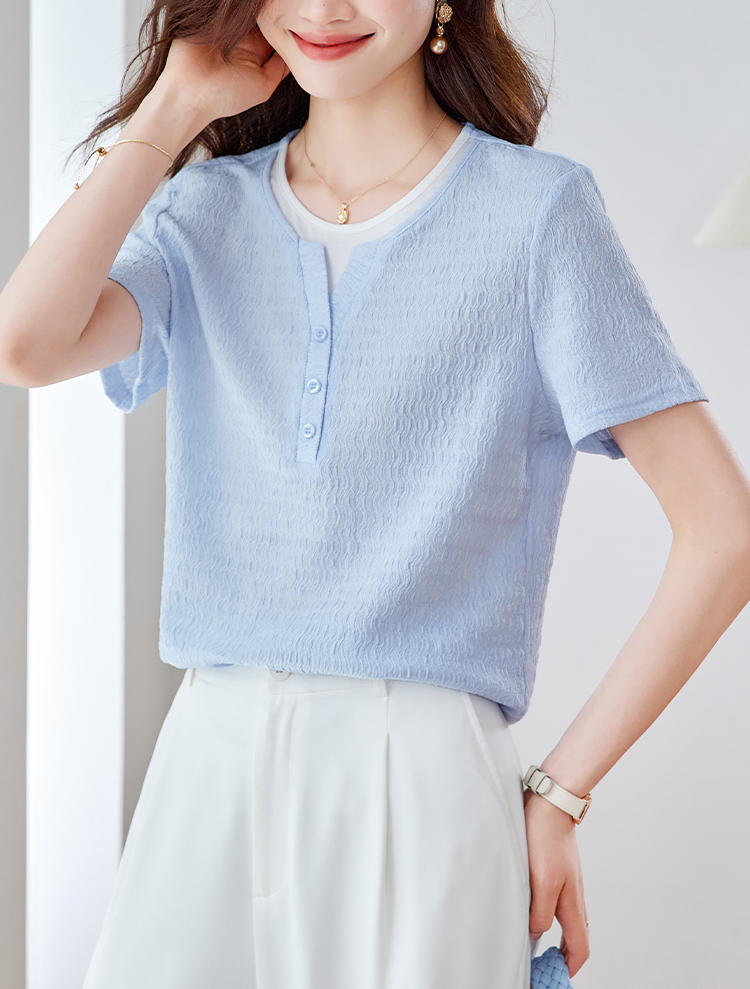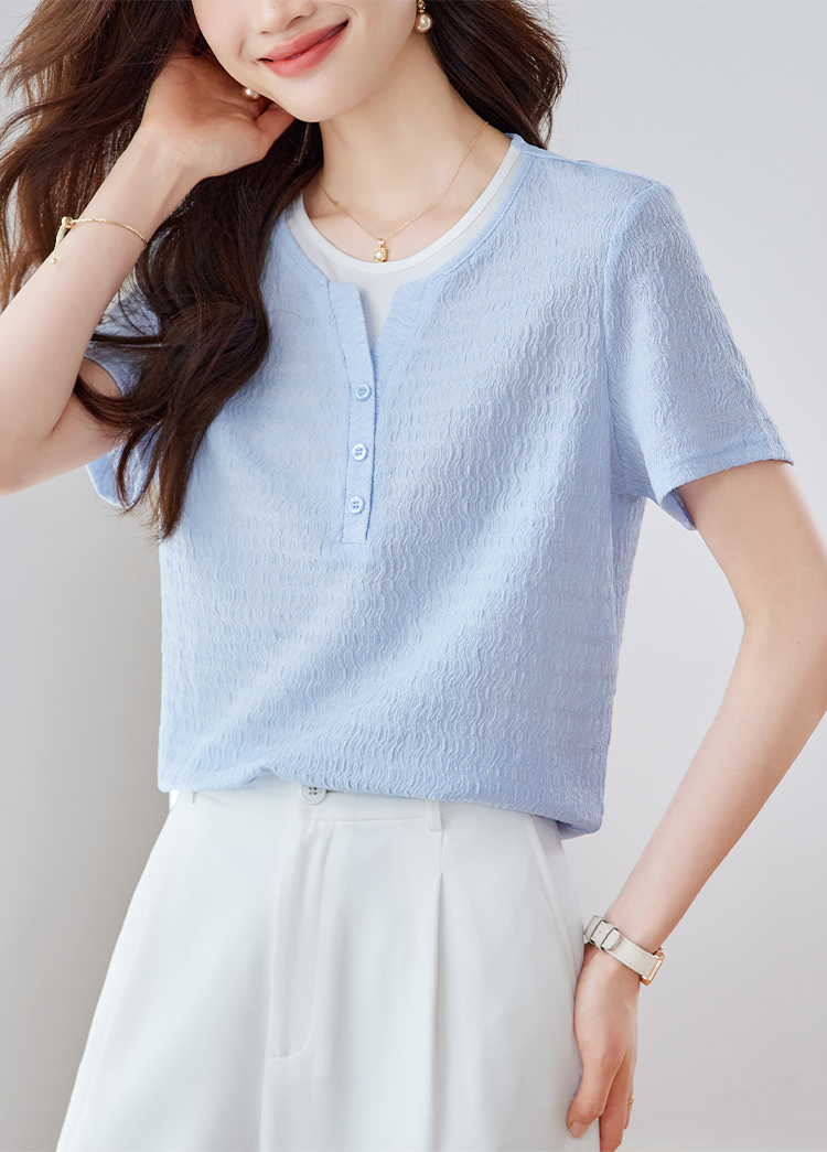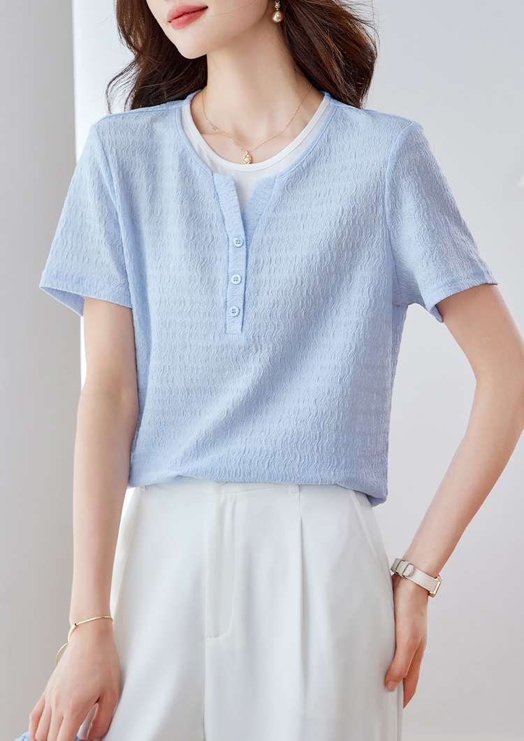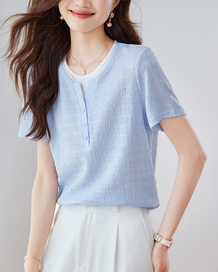 優雅假兩件拼接肌理短袖T恤