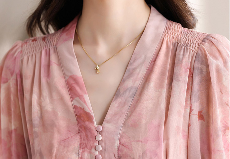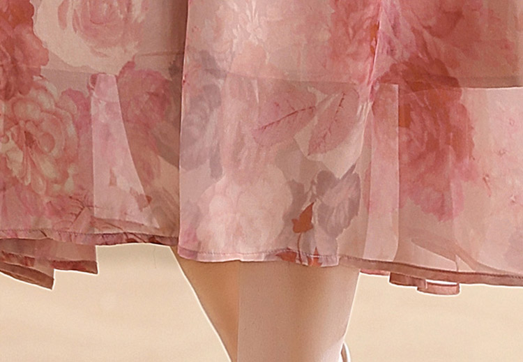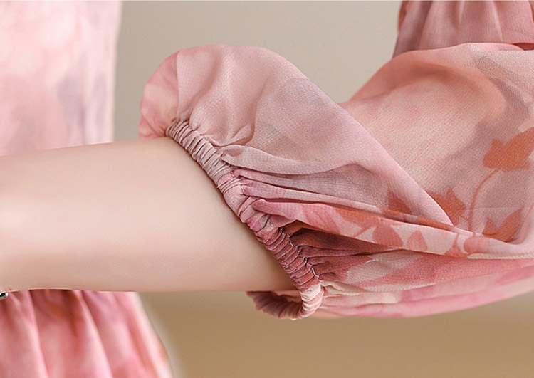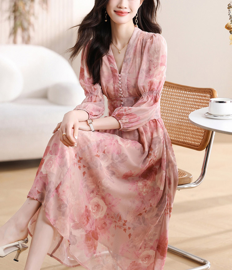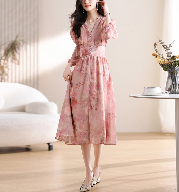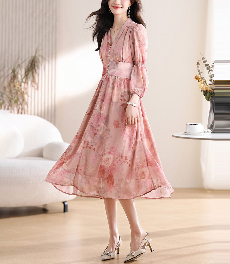 優雅收腰燈籠袖碎花連身裙