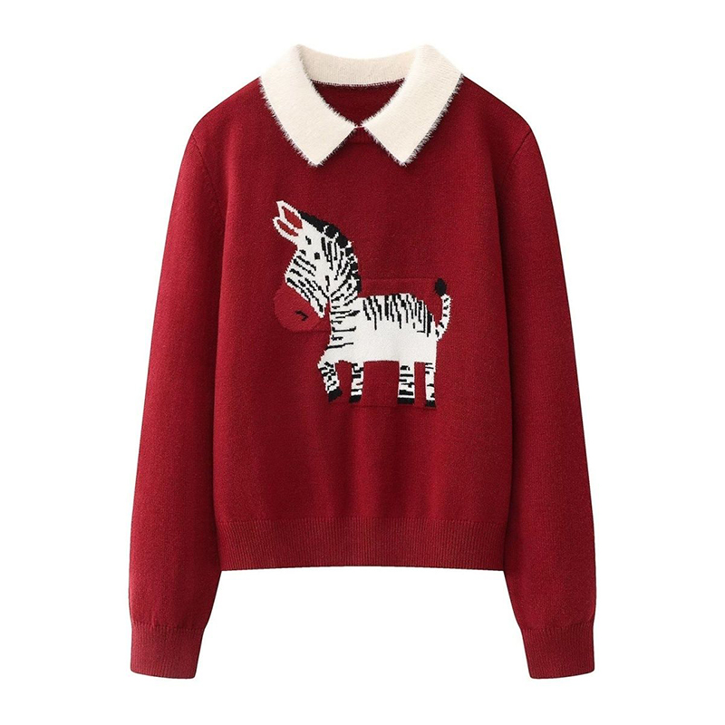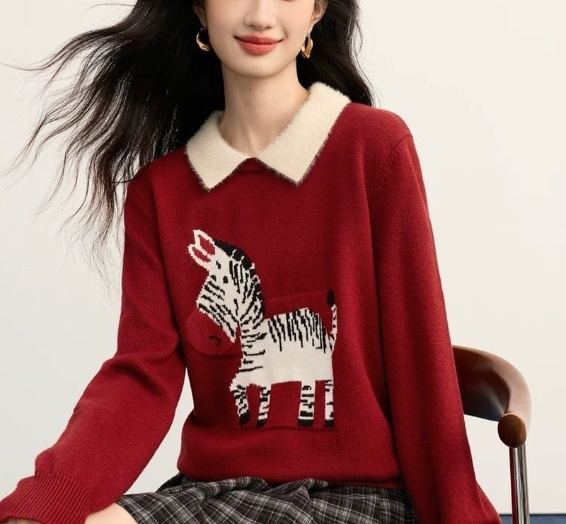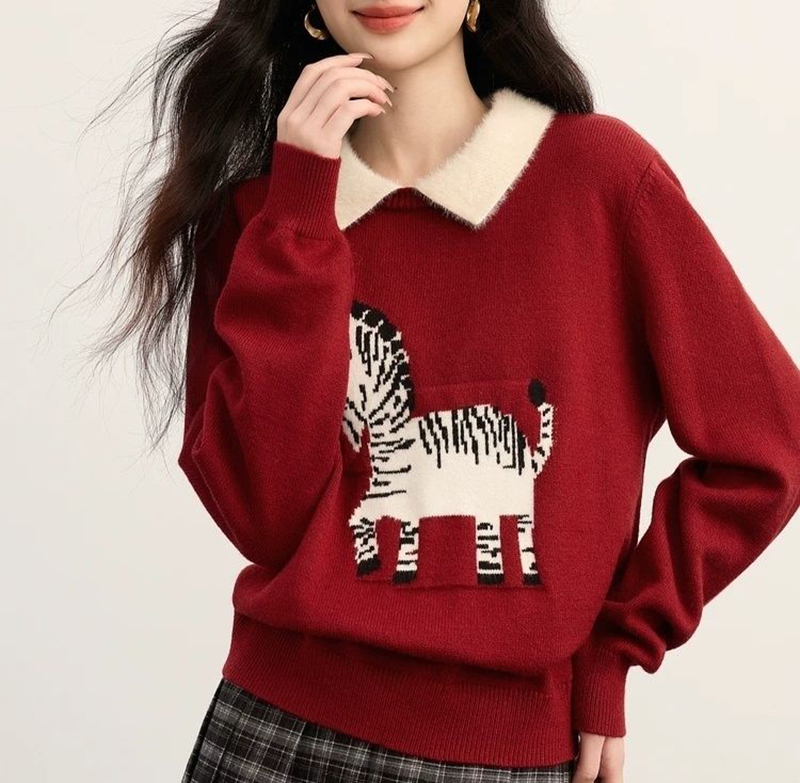 假兩件撞色翻領提花針織衫
