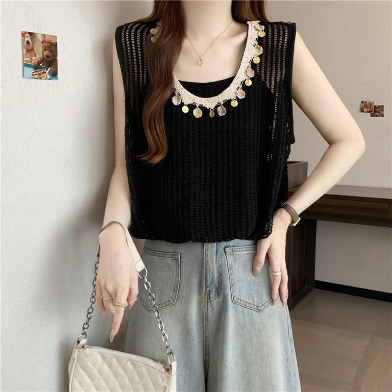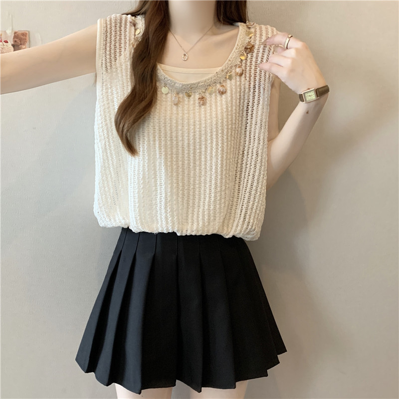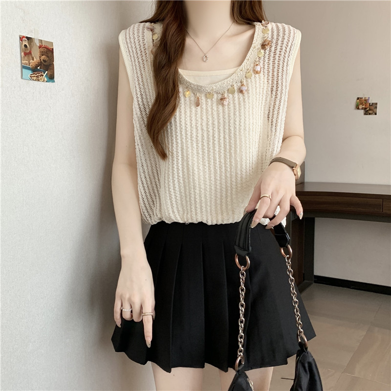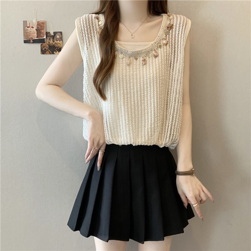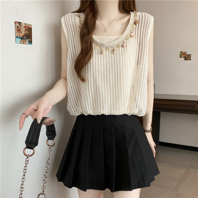 時尚百搭鏤空假兩件無袖坎肩(2色)