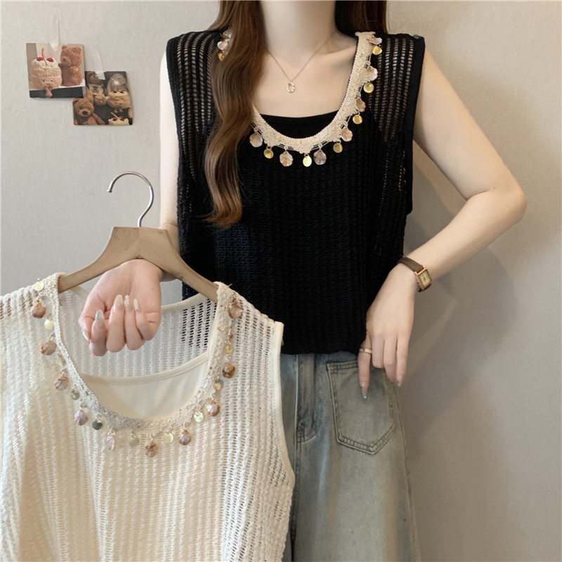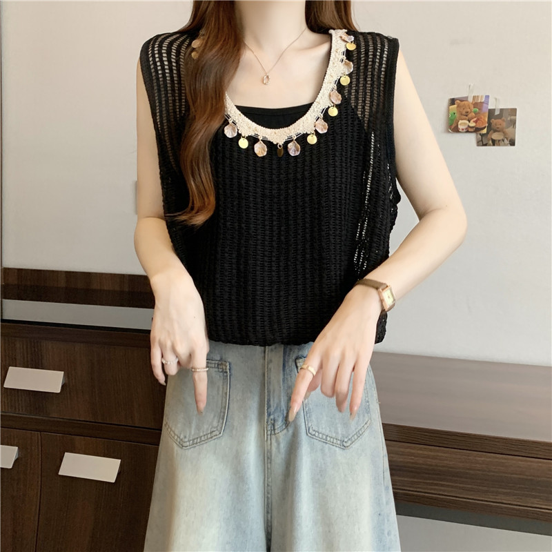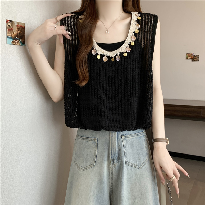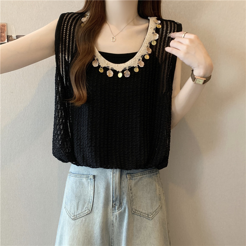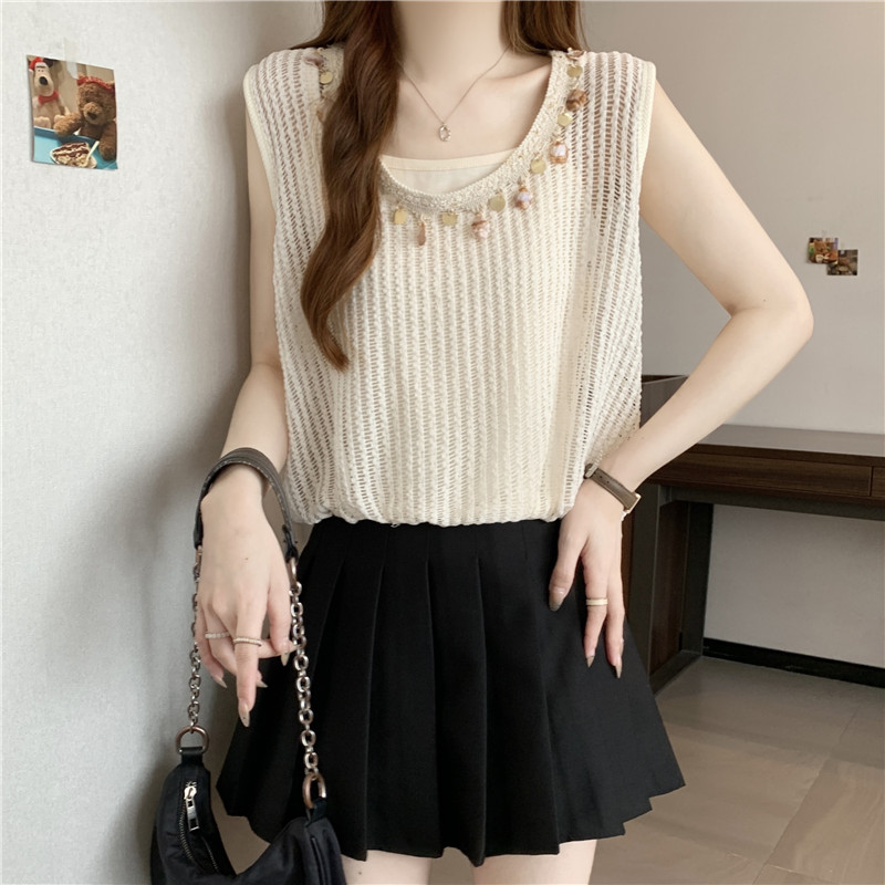 時尚百搭鏤空假兩件無袖坎肩(2色)