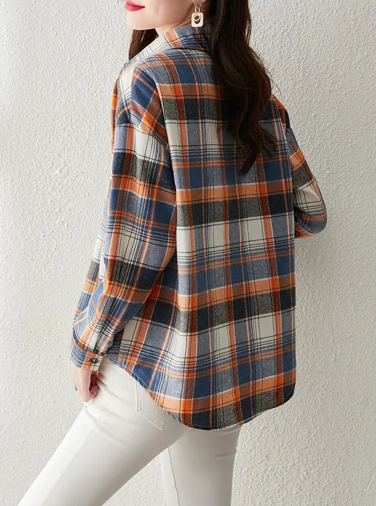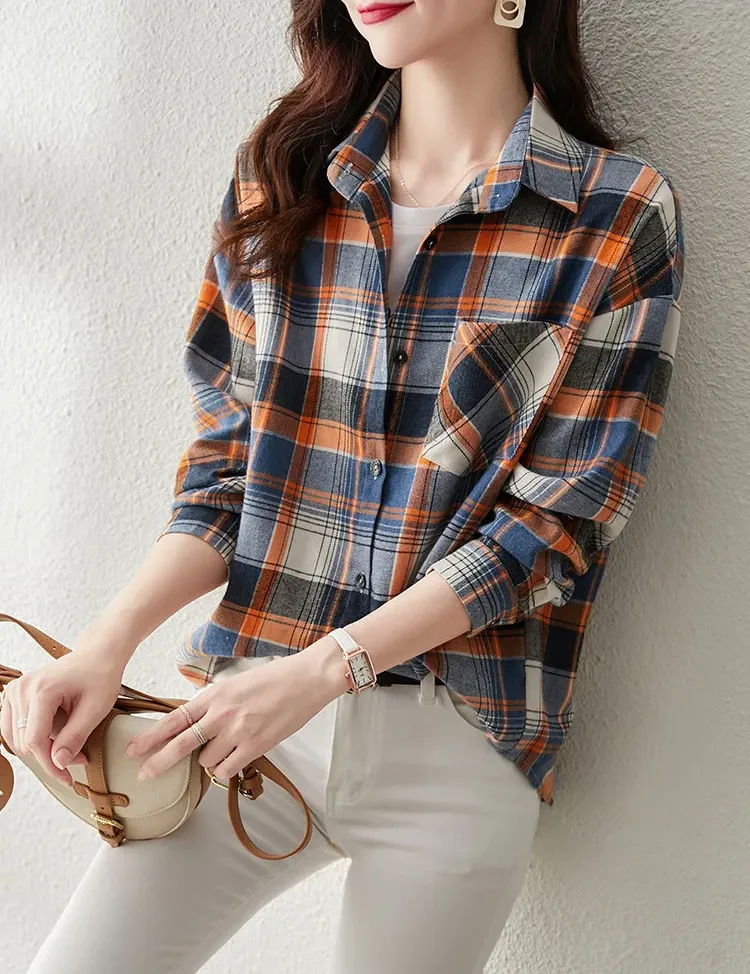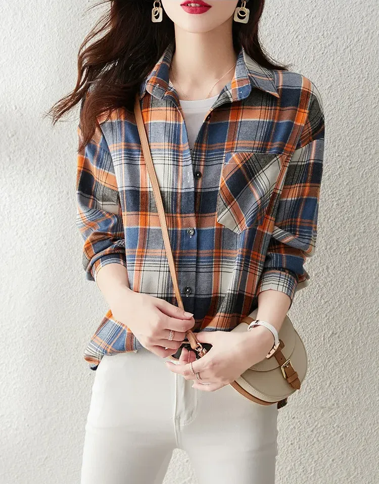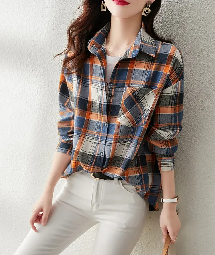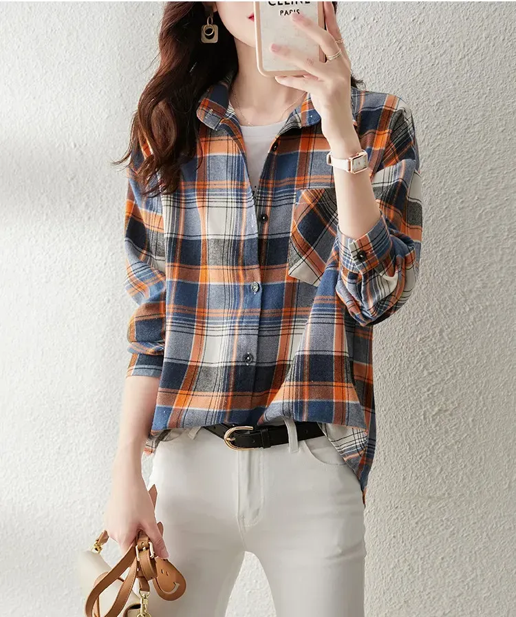 時尚通勤格紋設計休閒翻領襯衫