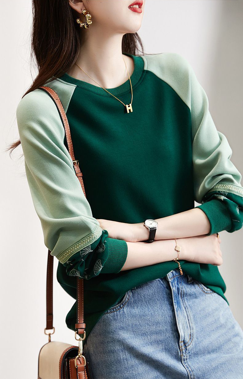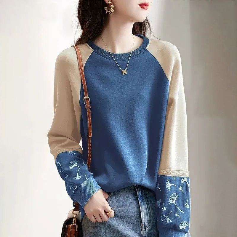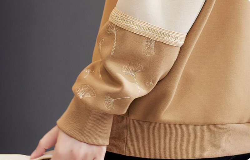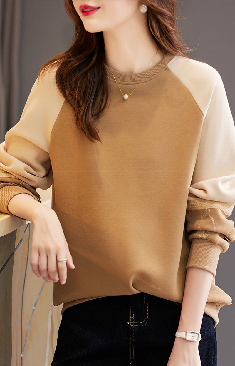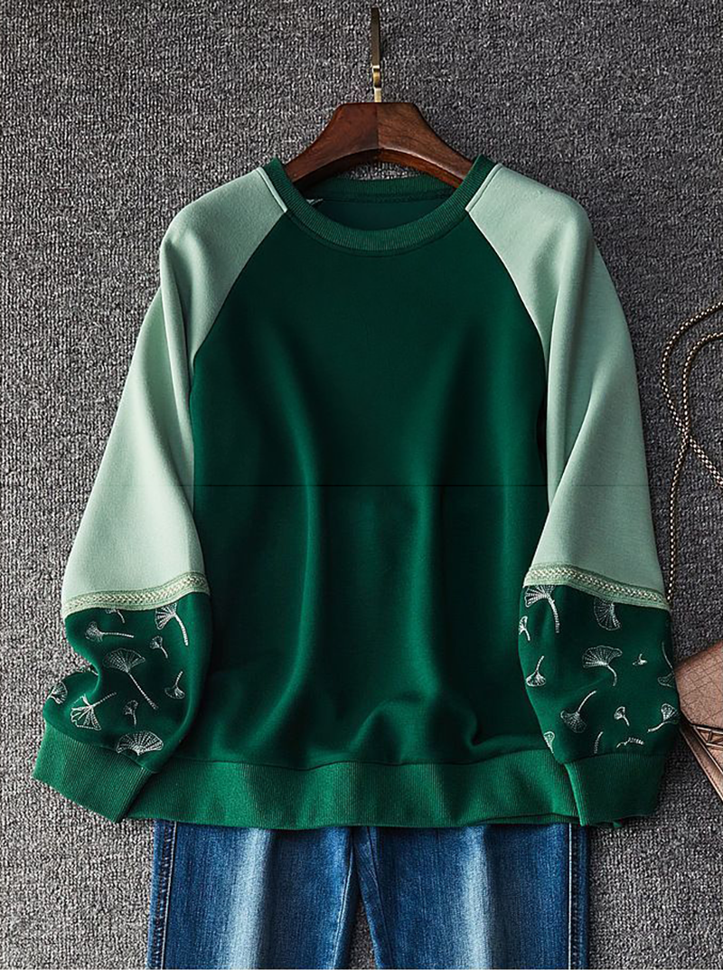 時尚氣質圓領拼色刺繡長袖衛衣(3色)