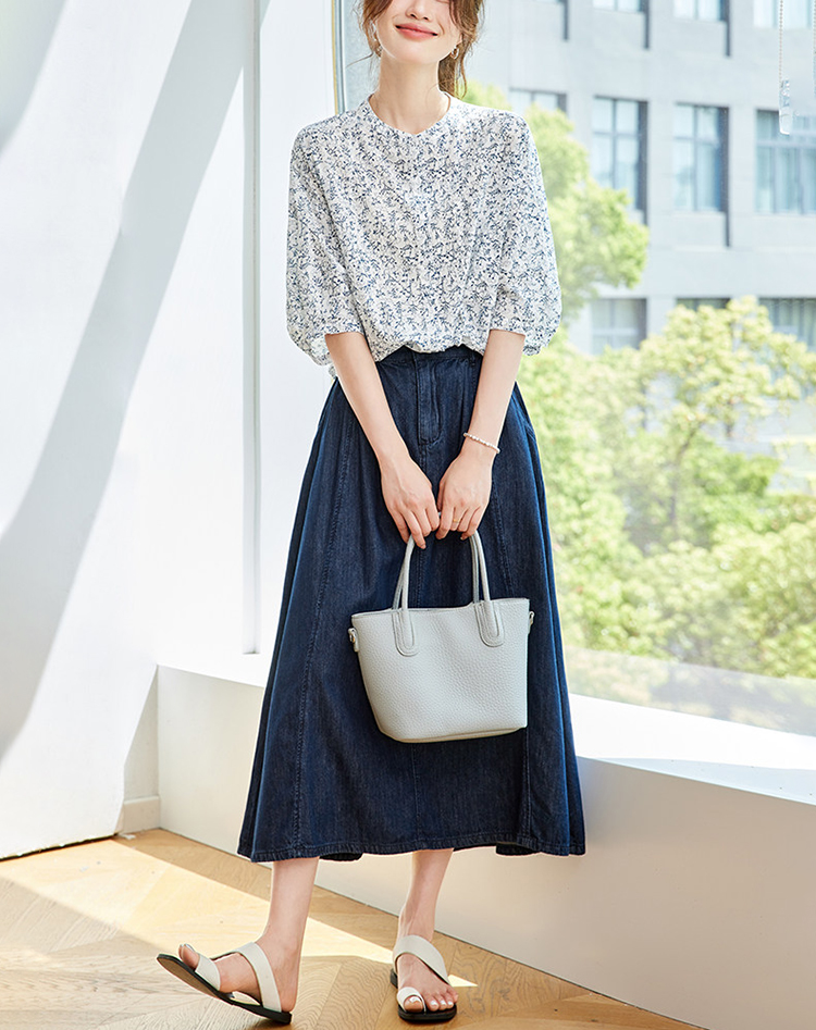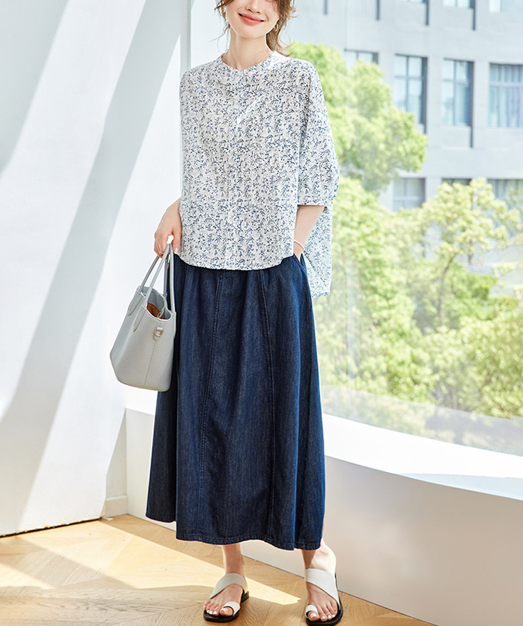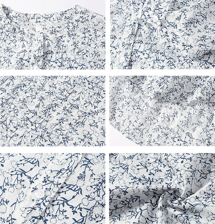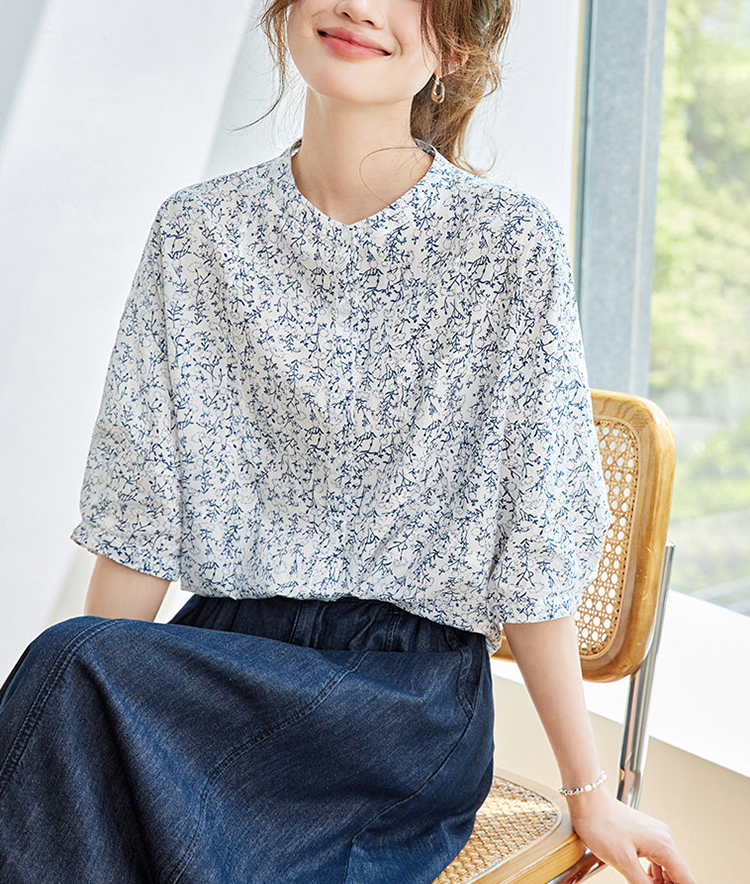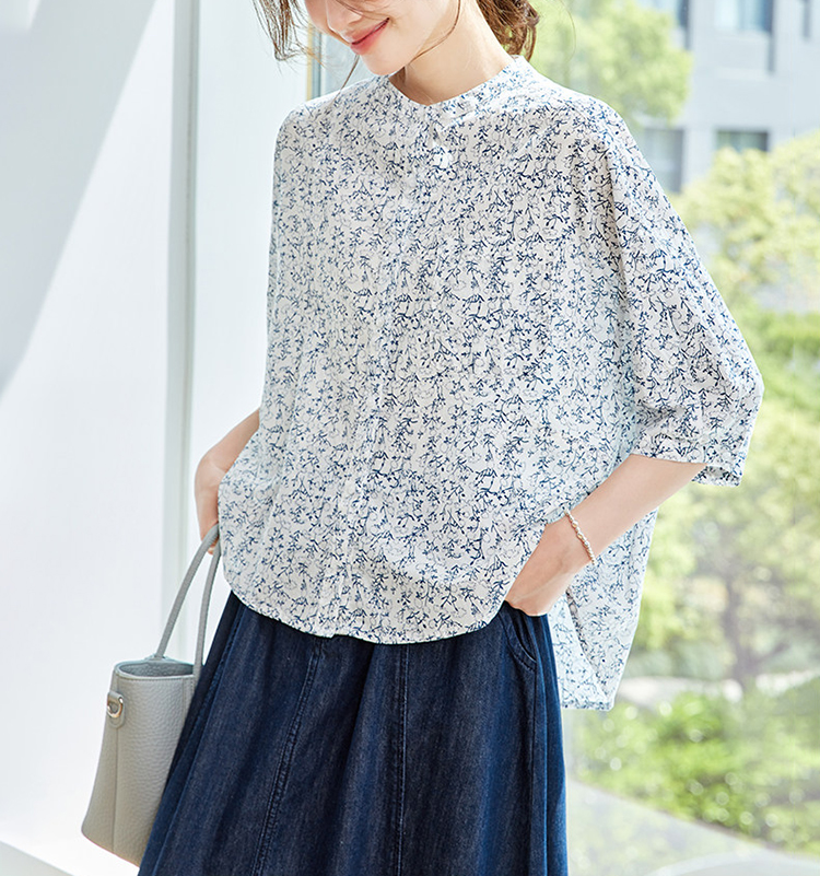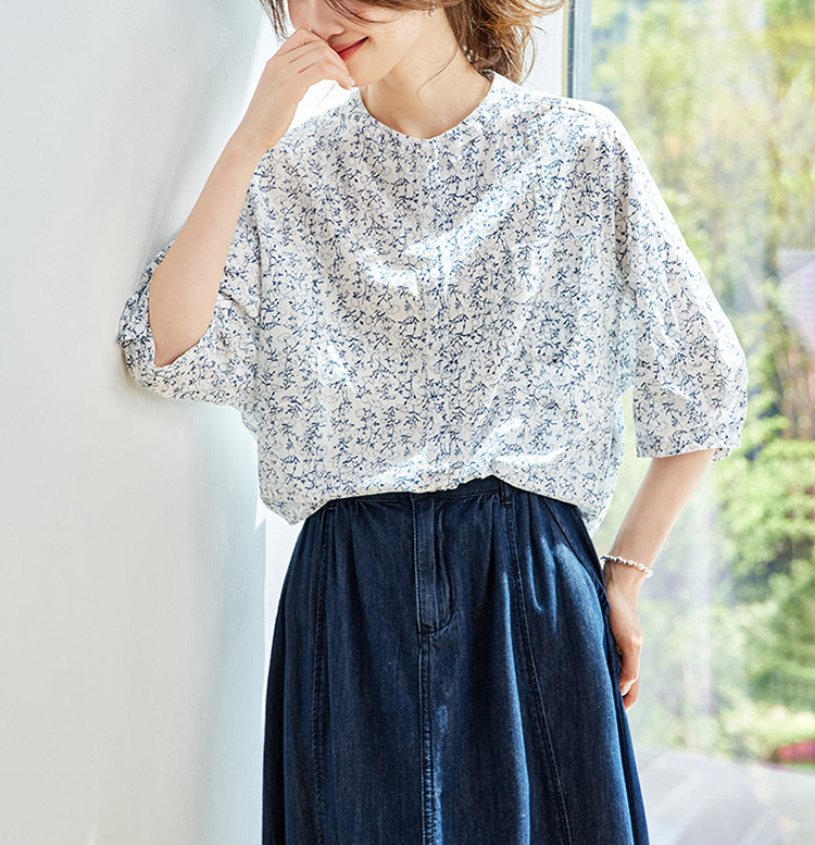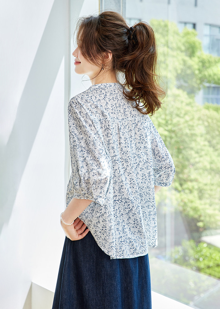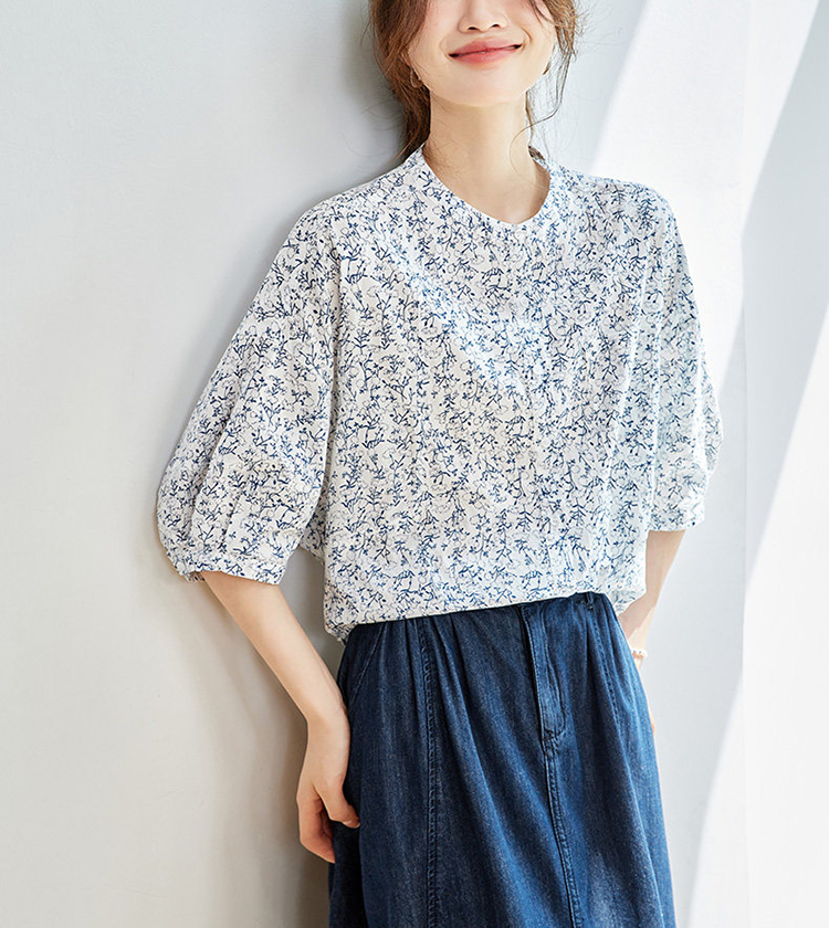 法式碎花純棉七分袖襯衫