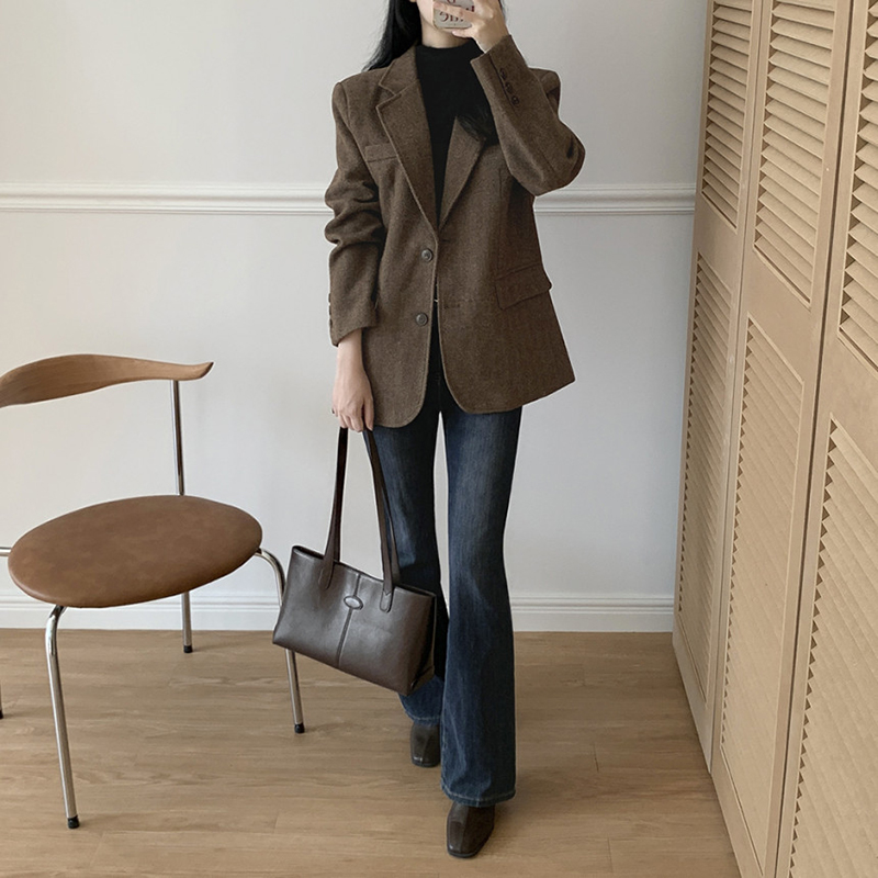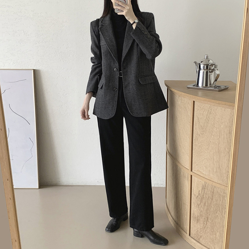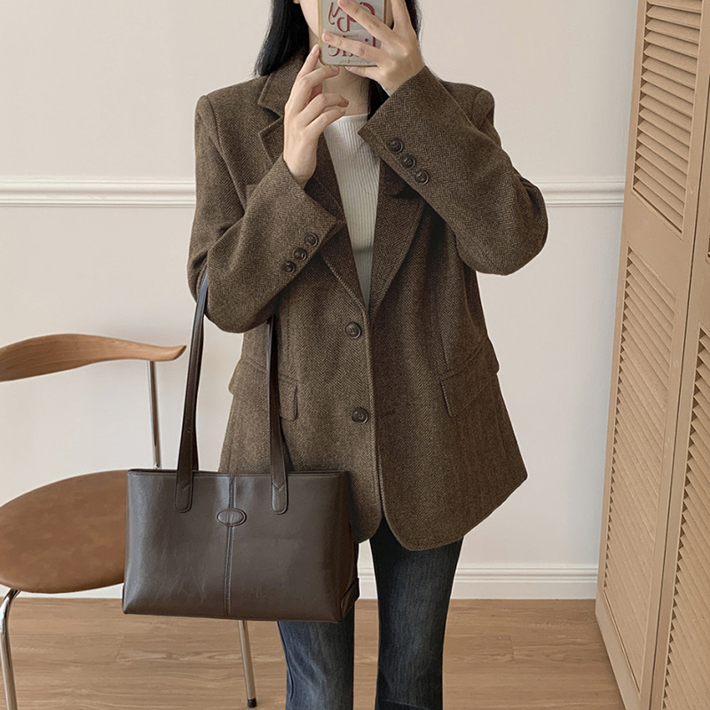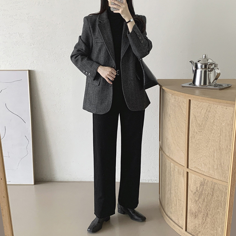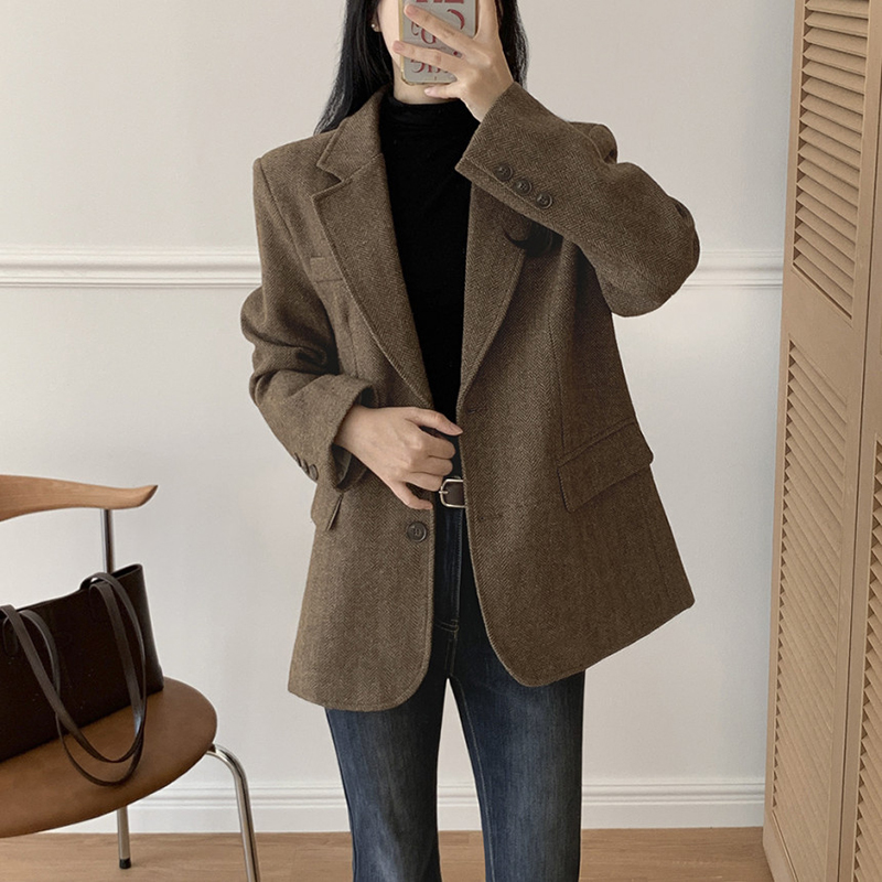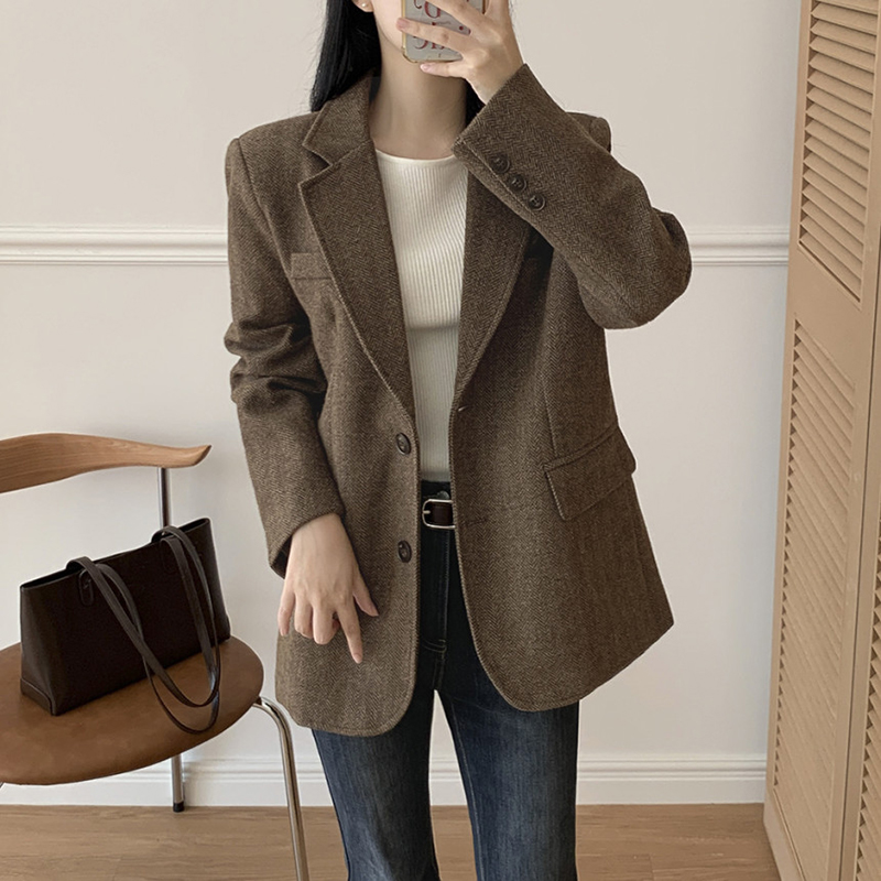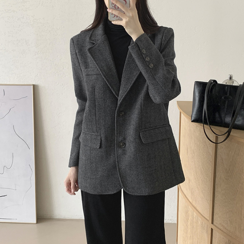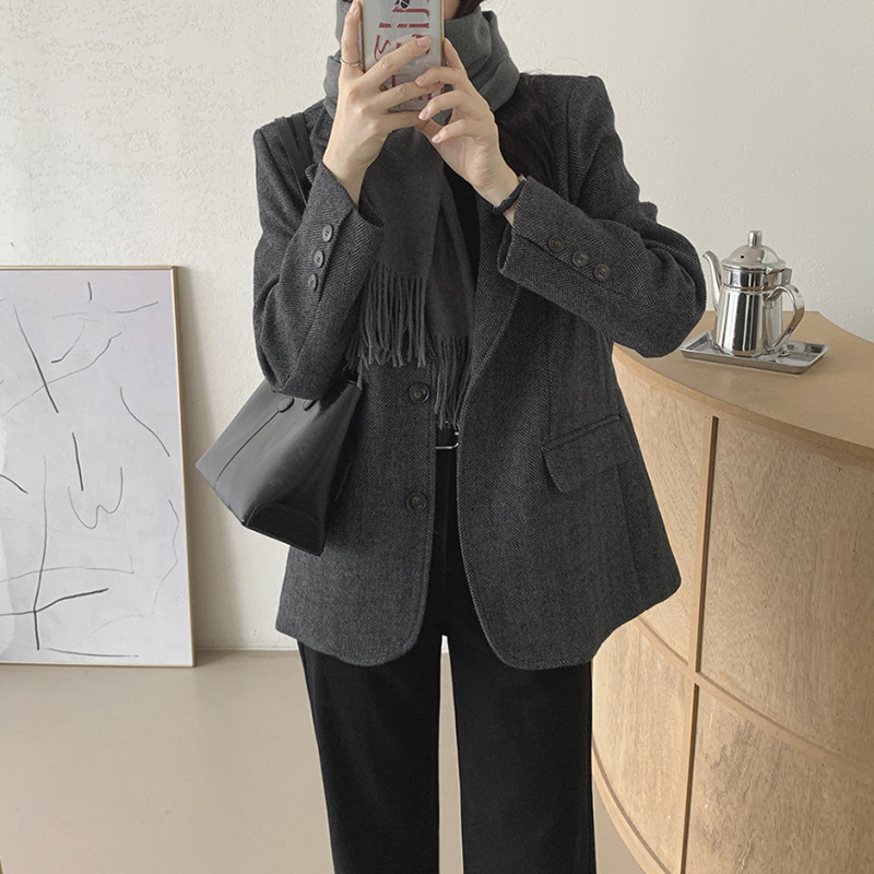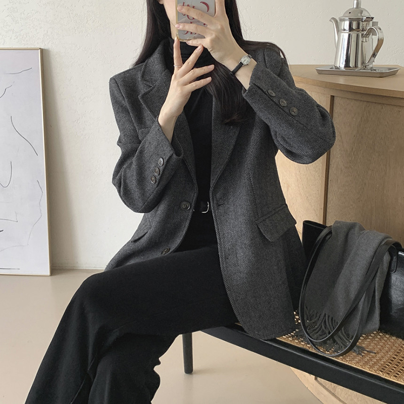 韓系單排扣人字斜紋外套(2色)