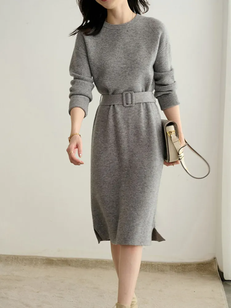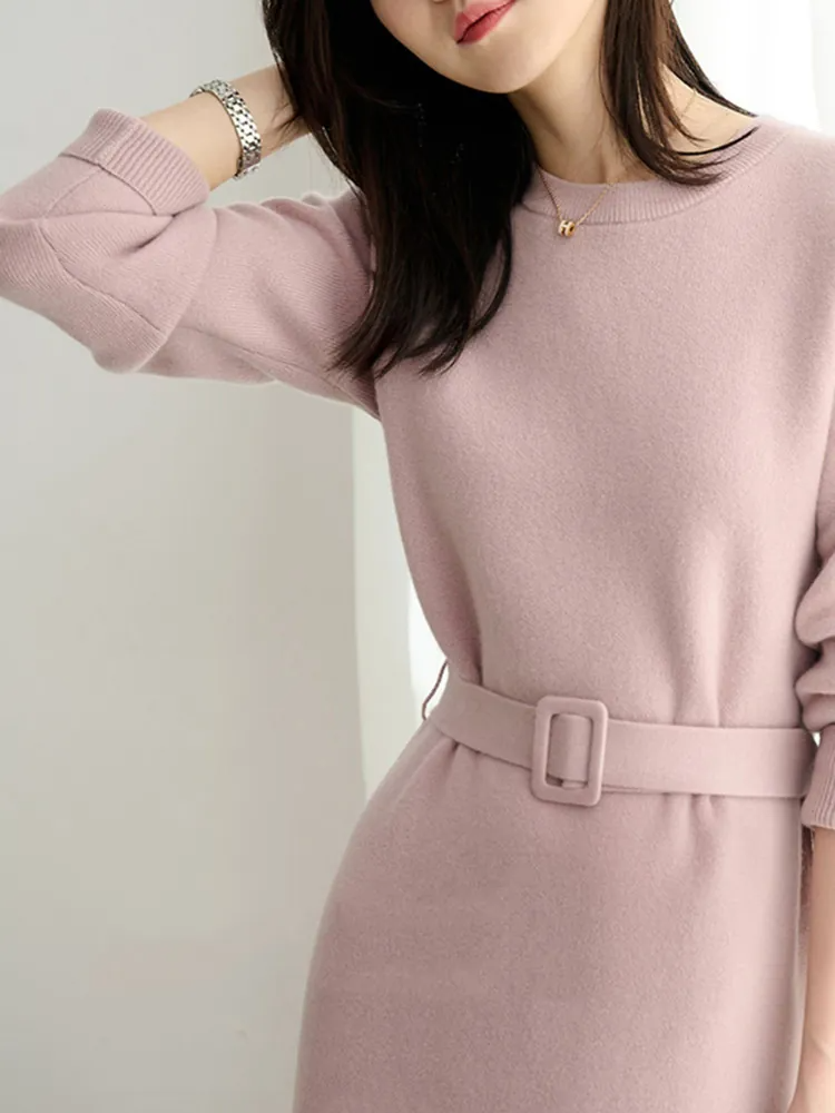 法式優雅繫帶收腰針織打底連身裙(2色)