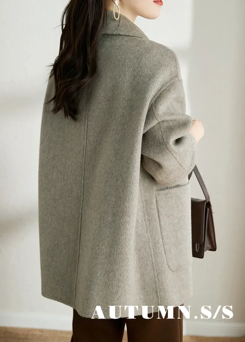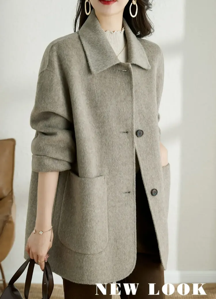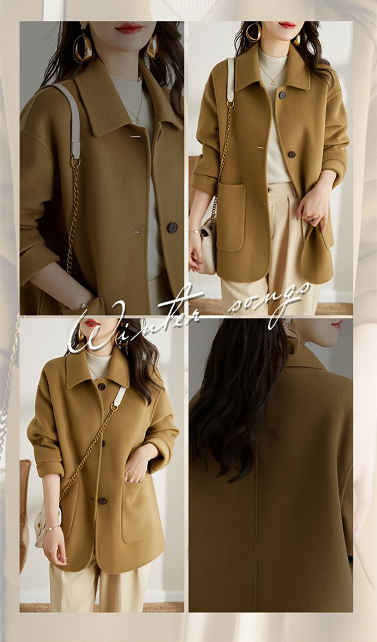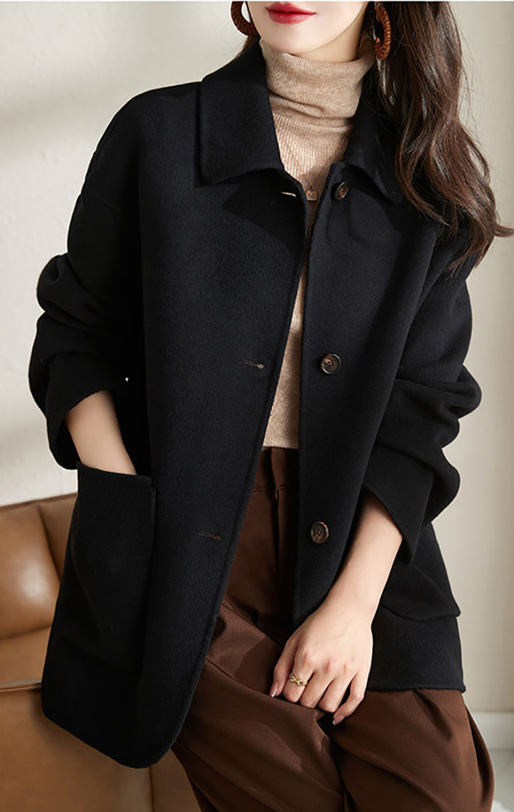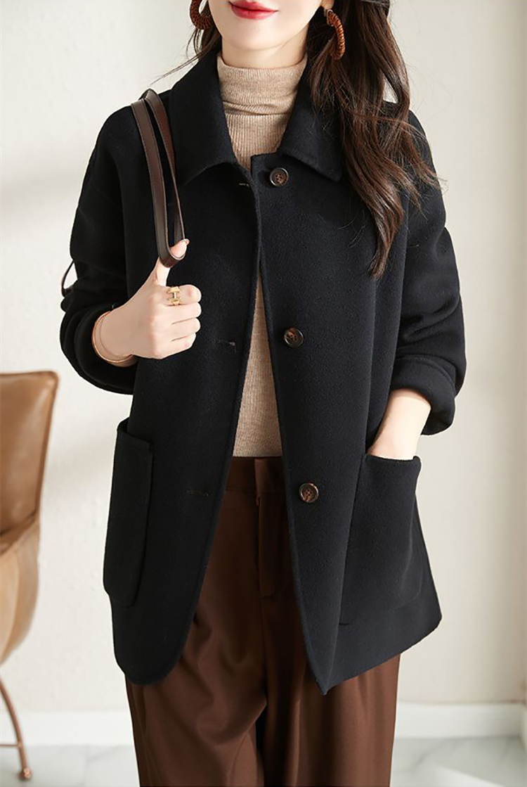 赫本風簡約單排扣毛呢大衣(2色)