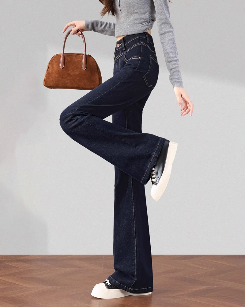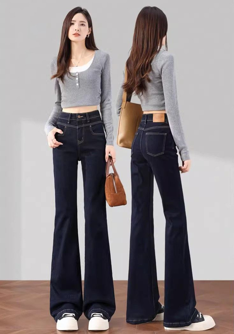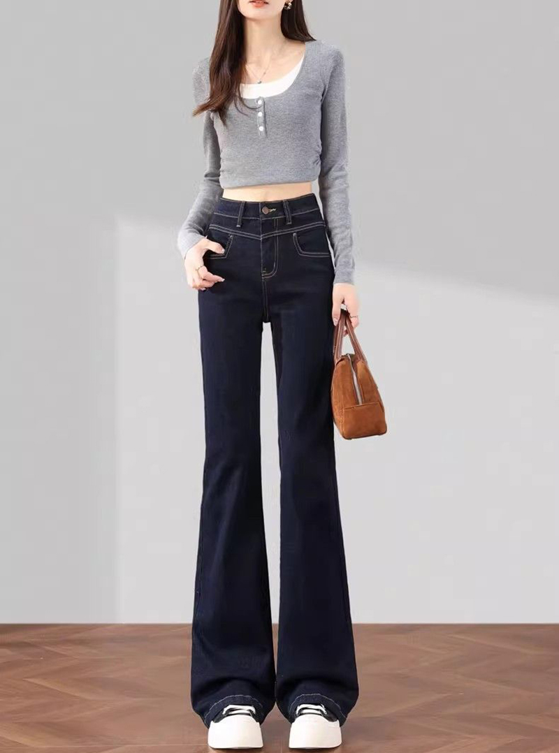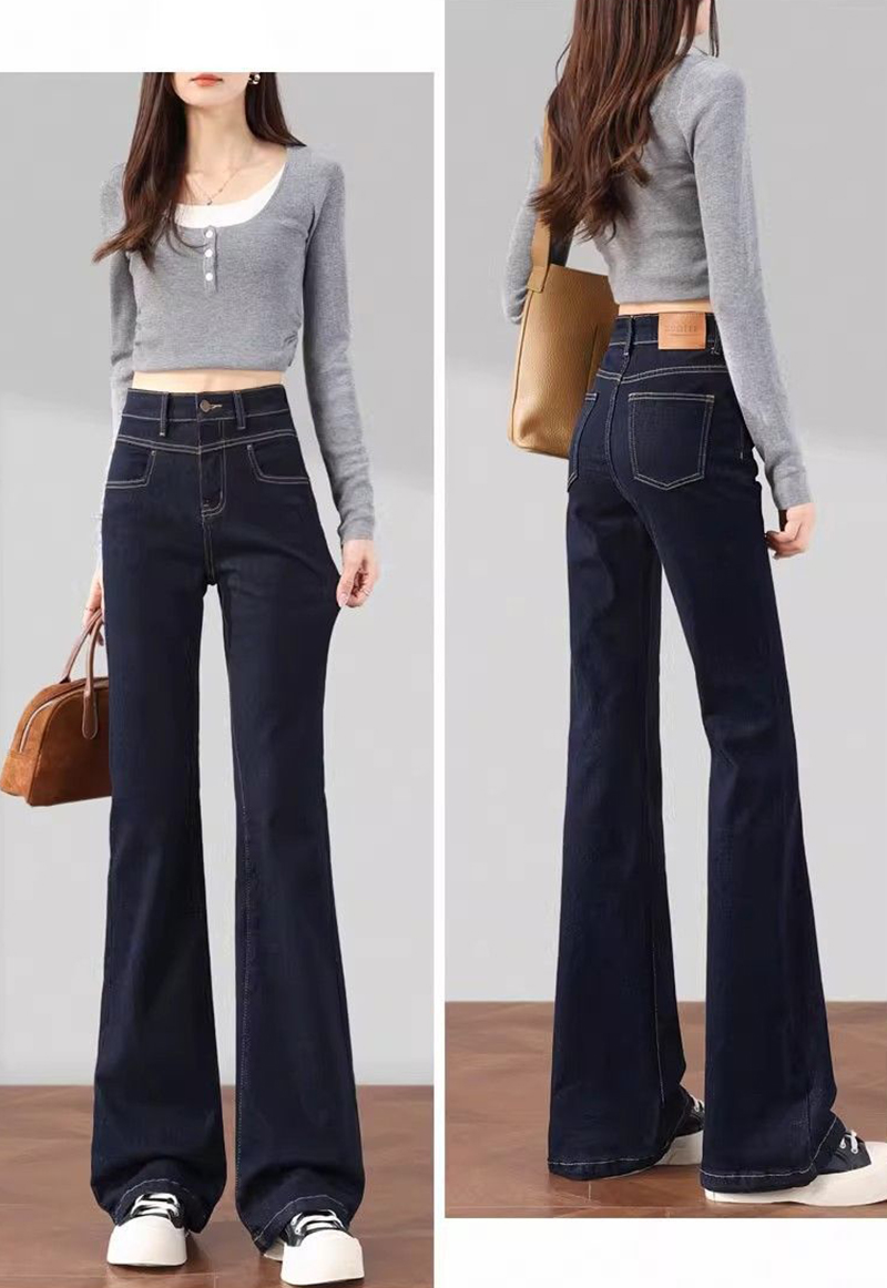 高腰顯瘦直筒微喇叭牛仔褲