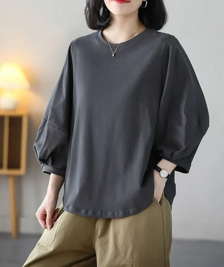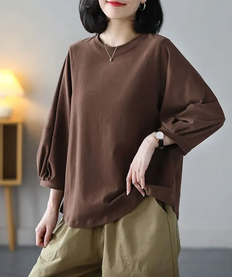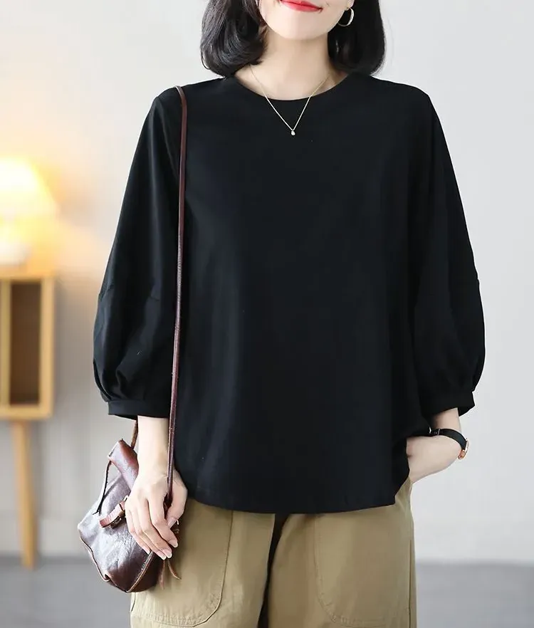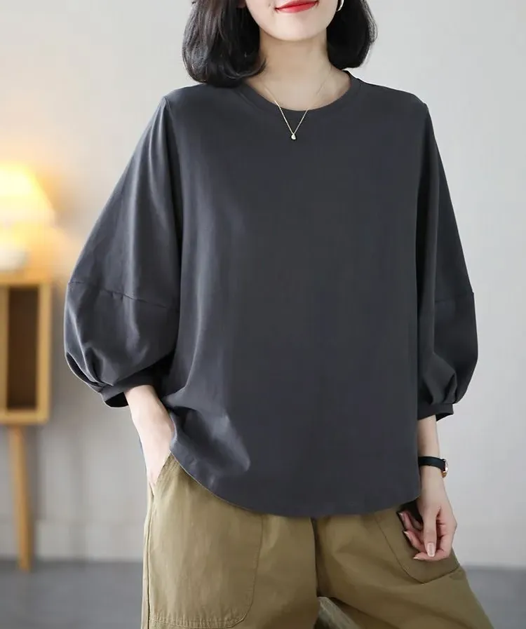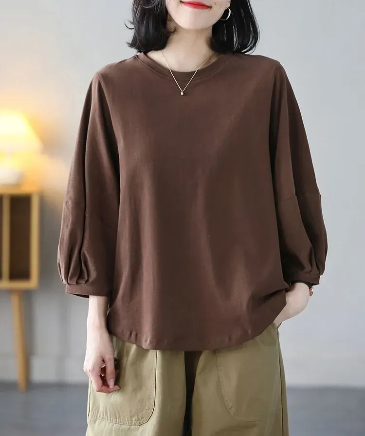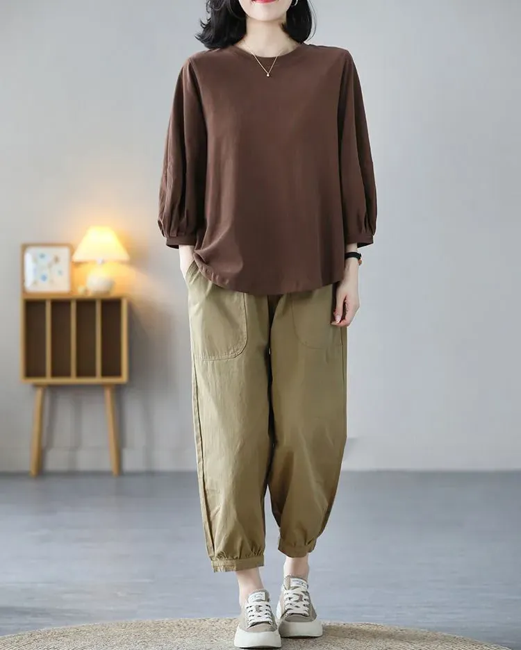 日式休閒七分泡泡袖T恤(4色)