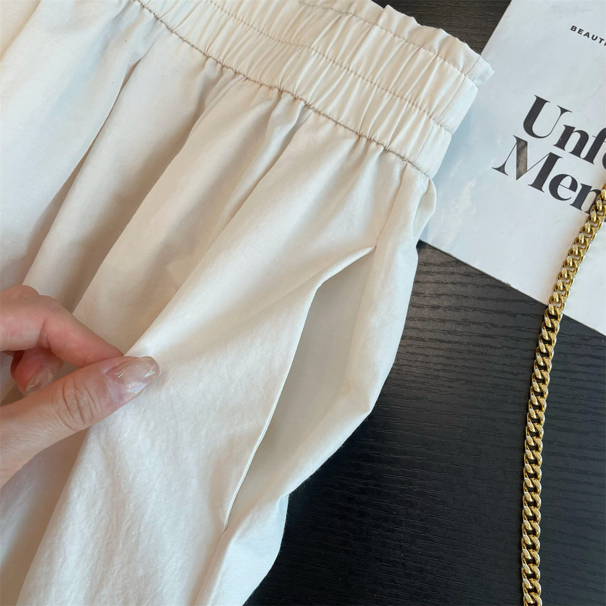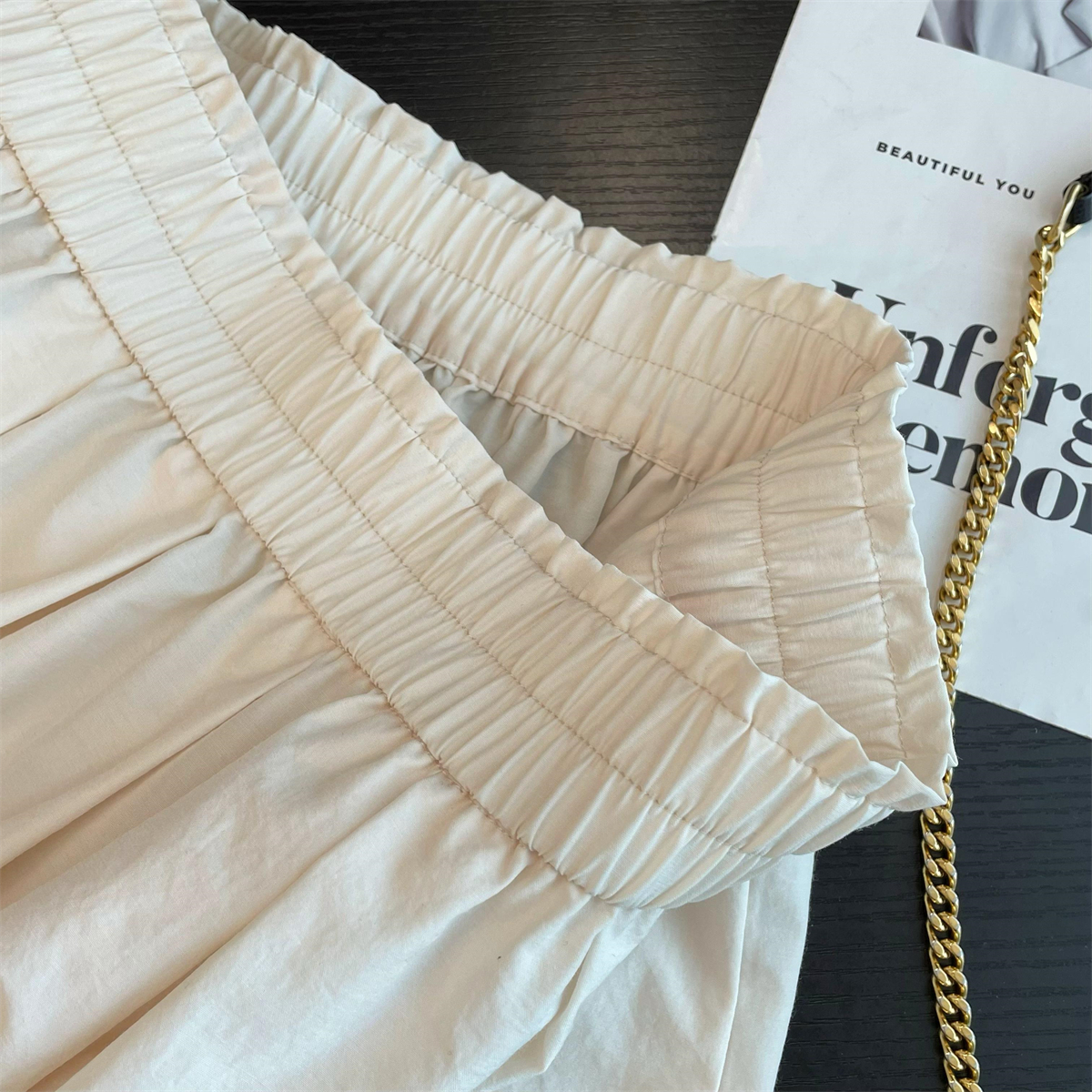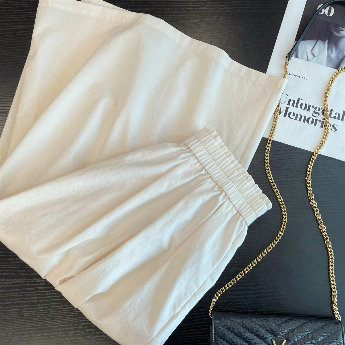 日系鬆緊高腰休閒紙袋裙褲(2色)