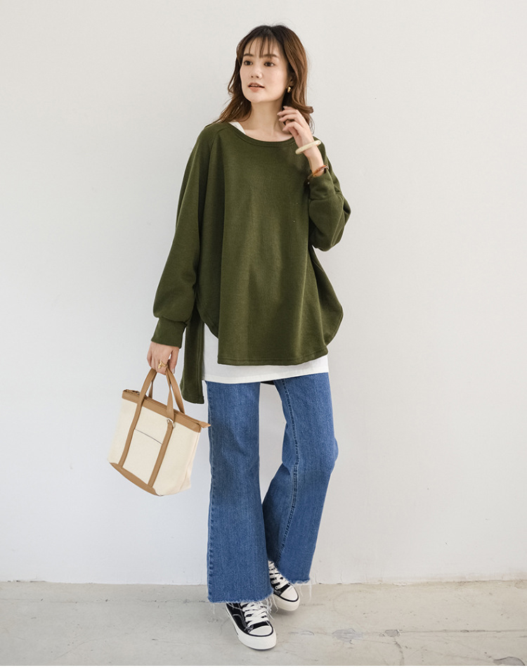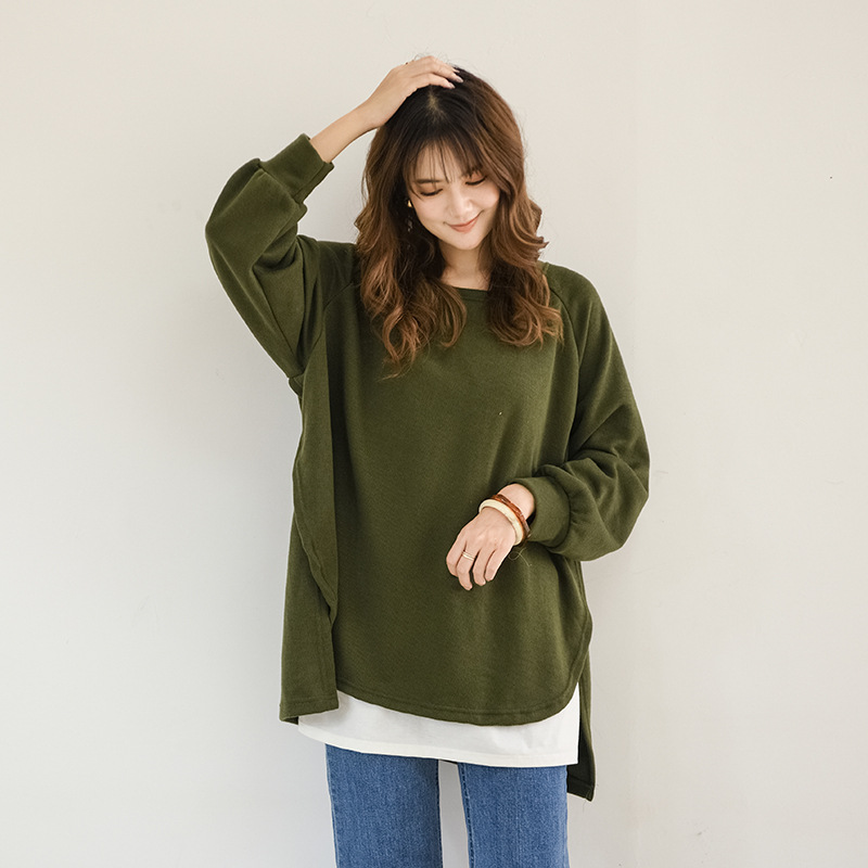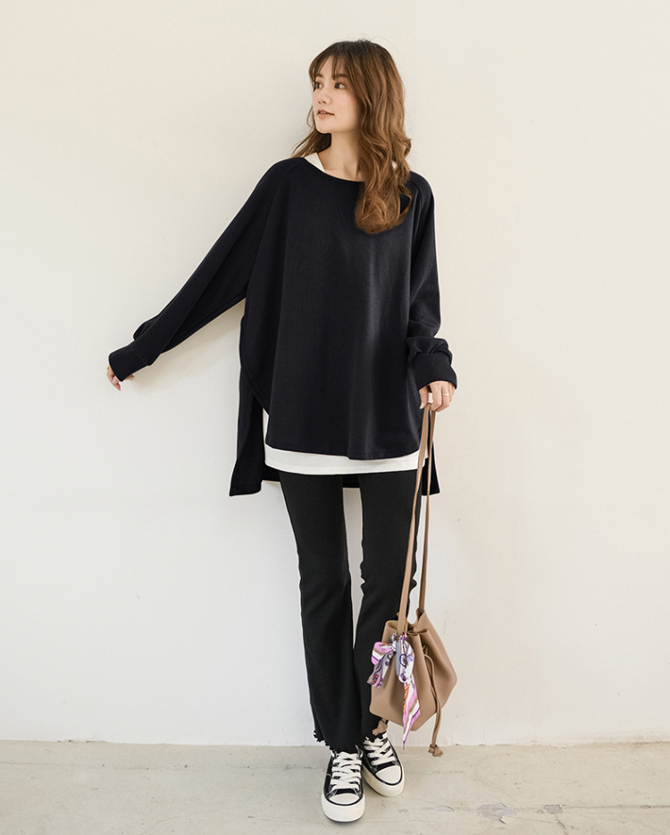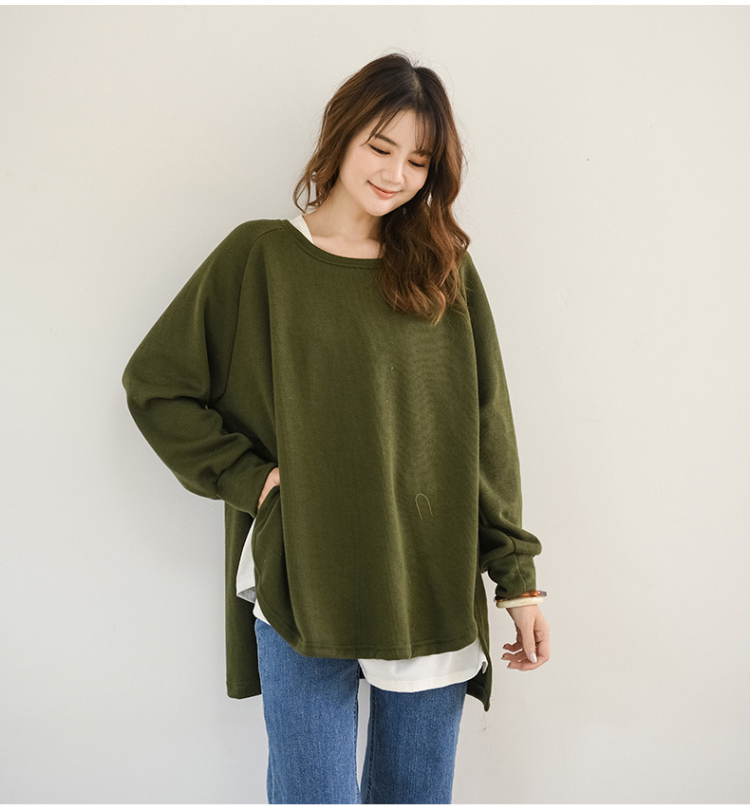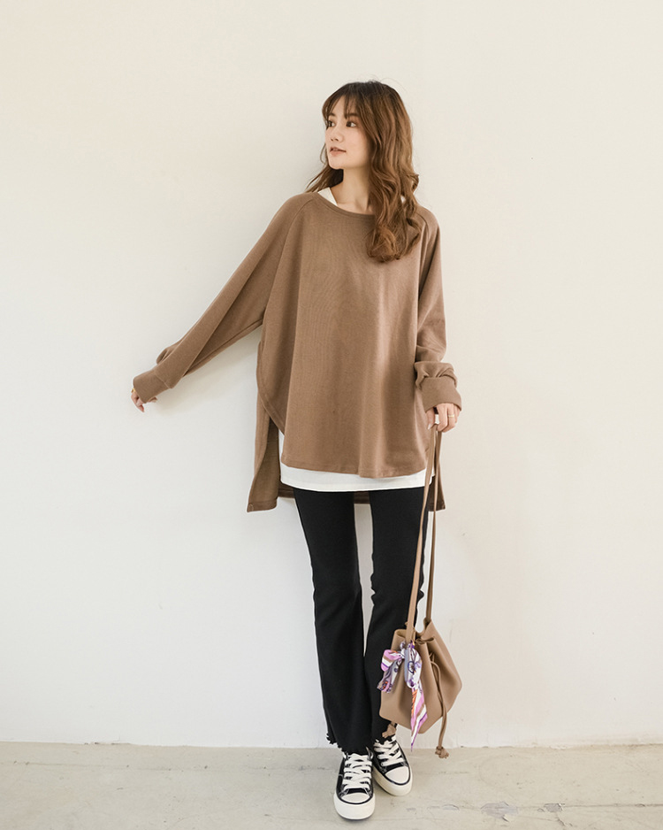 日系寬鬆休閒百搭羅紋長袖套頭衛衣(5色)