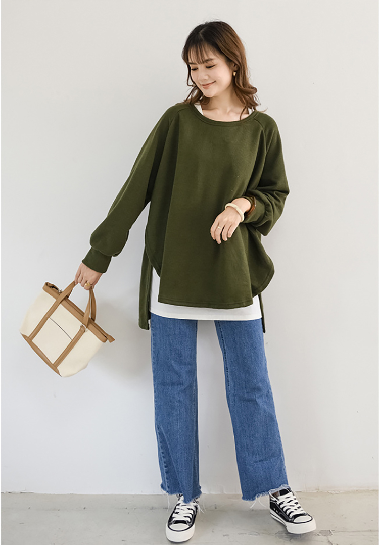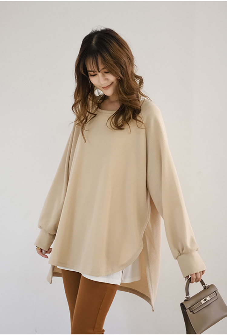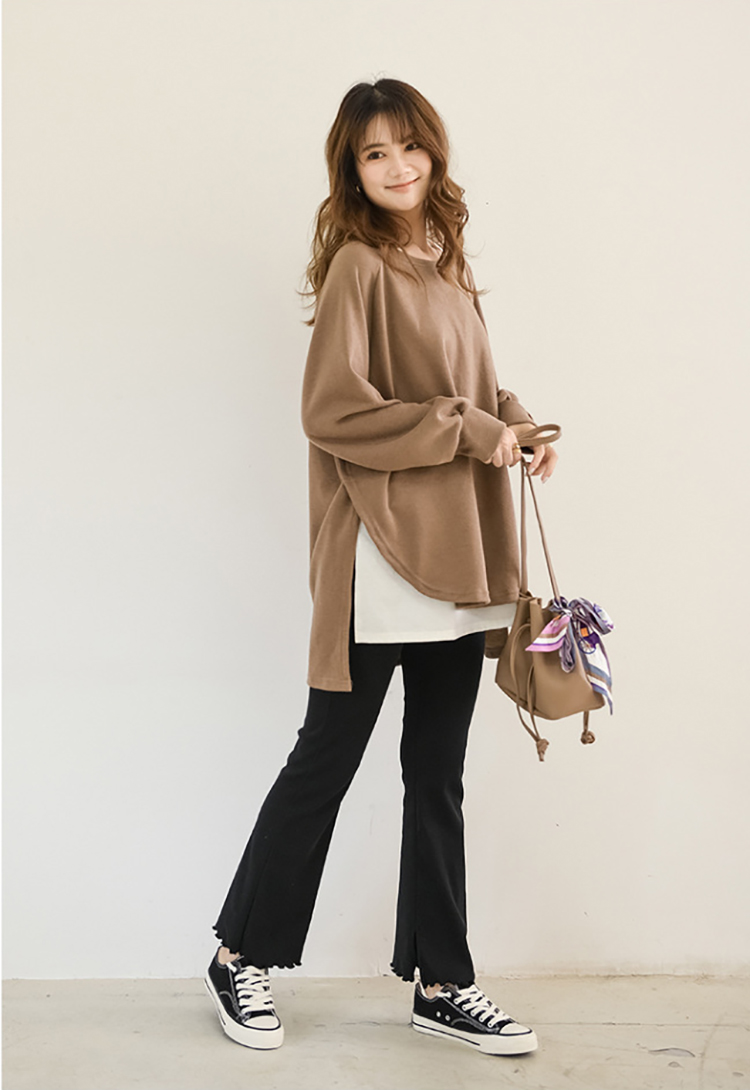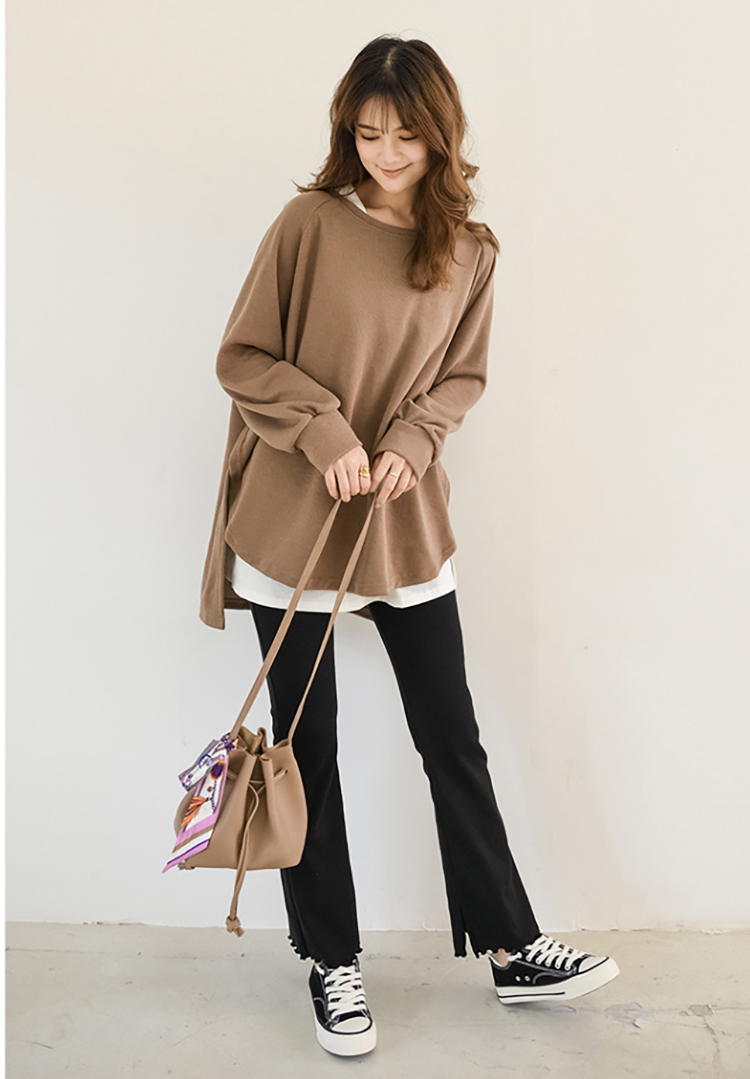 日系寬鬆休閒百搭羅紋長袖套頭衛衣(5色)