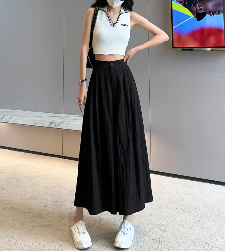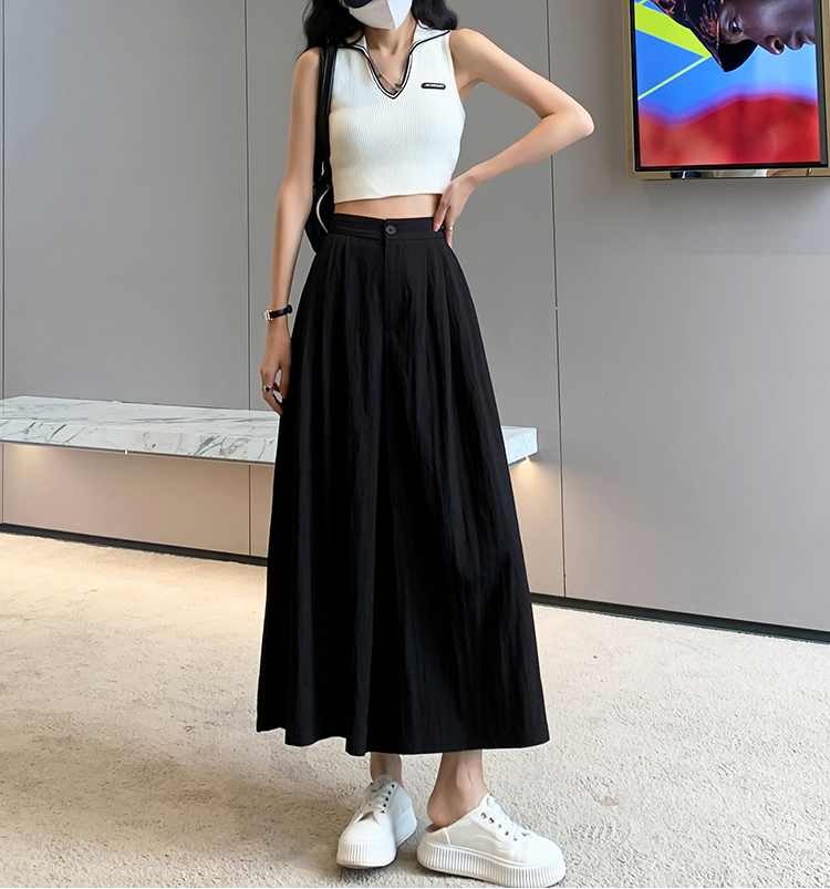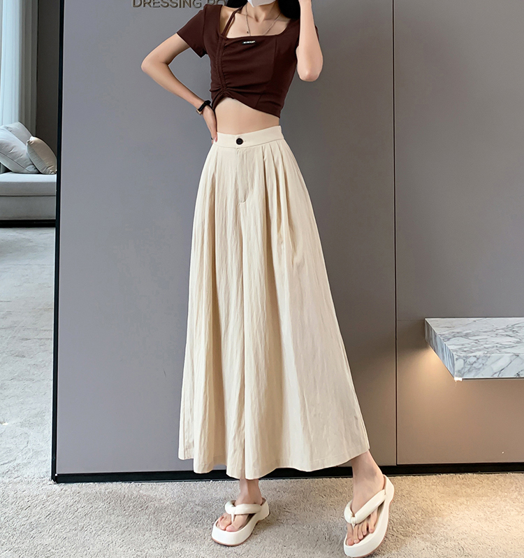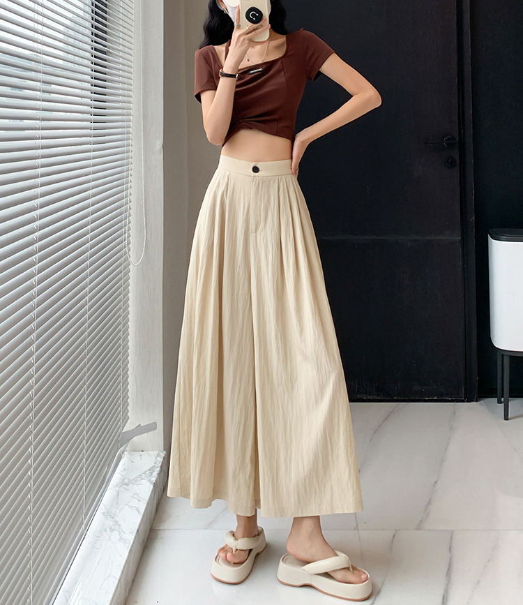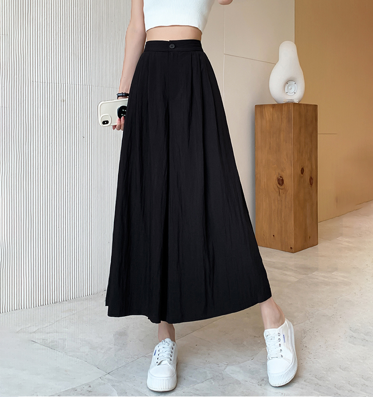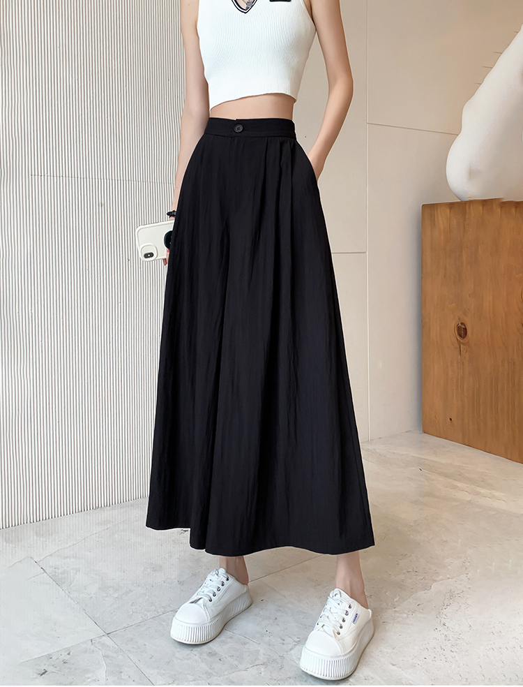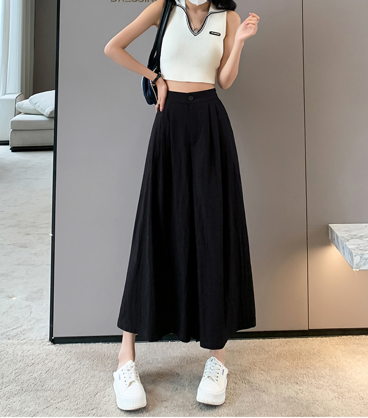 日系寬鬆高腰寬腿九分褲裙(2色)