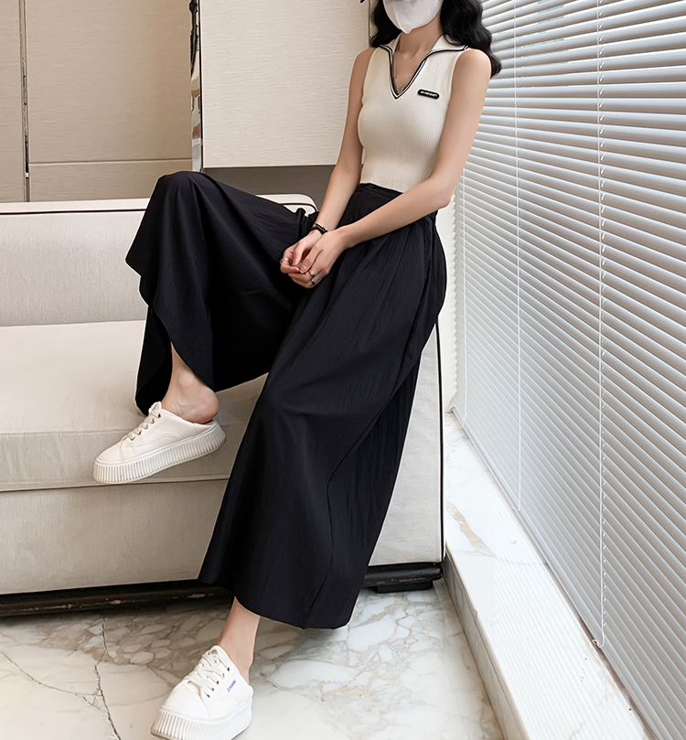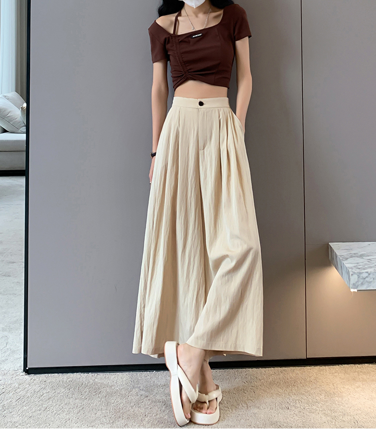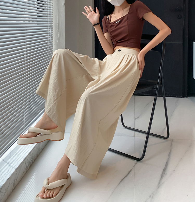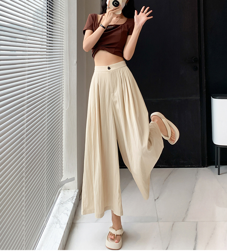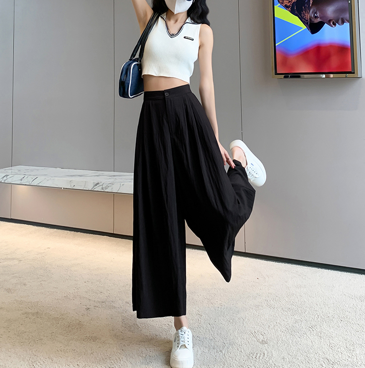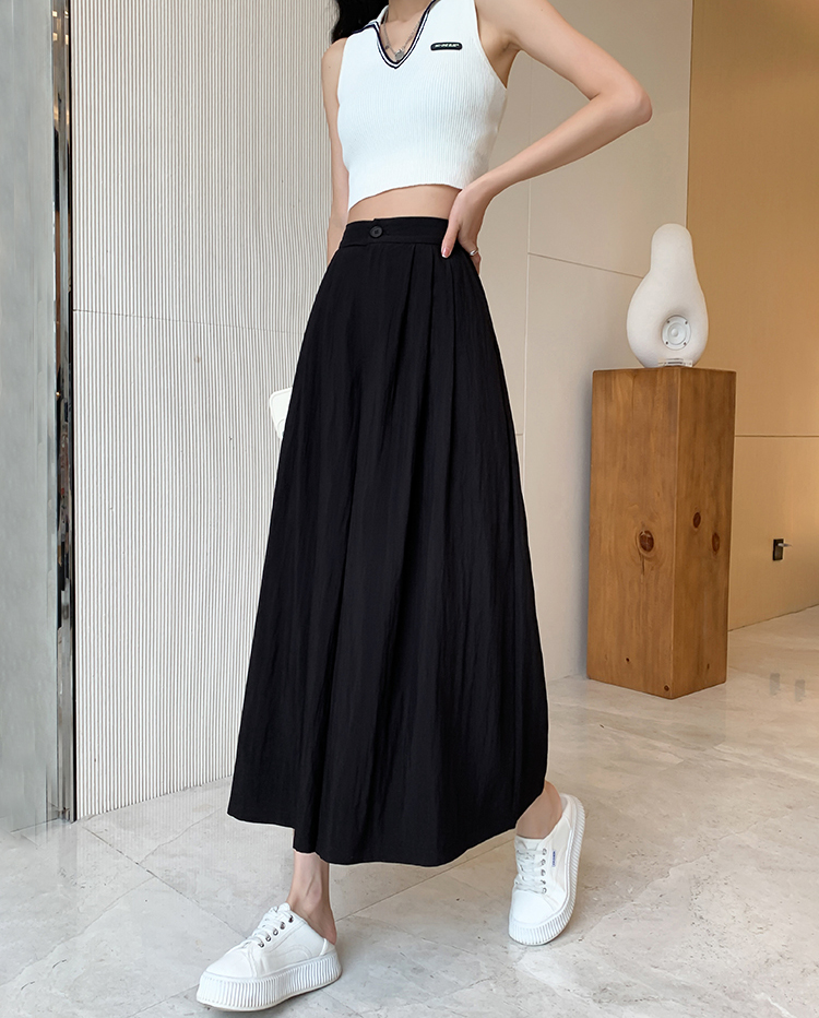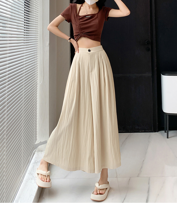 日系寬鬆高腰寬腿九分褲裙(2色)