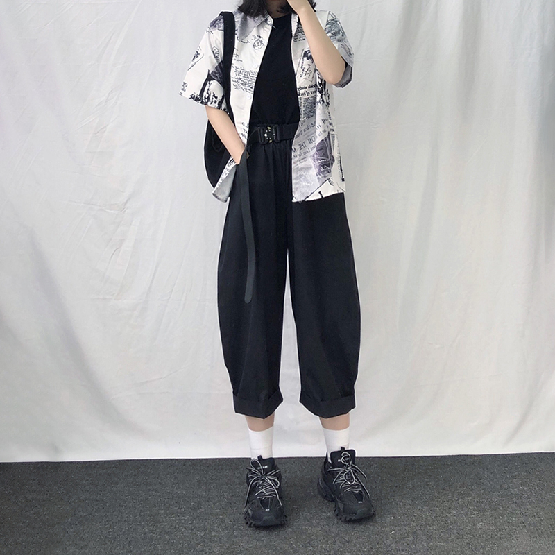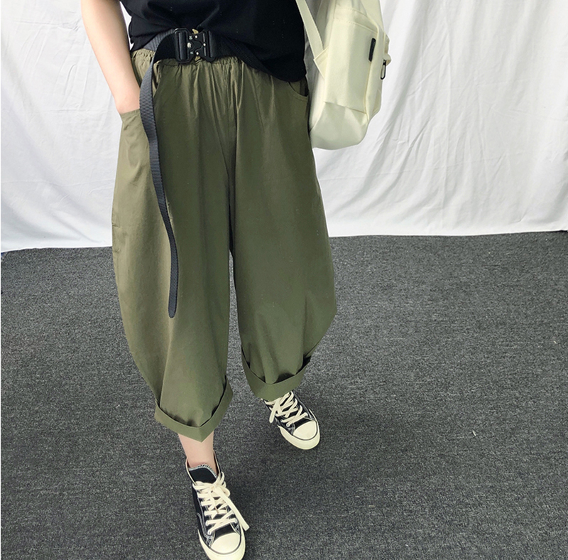 日系寬鬆鬆緊腰燈籠闊腿褲(2色)