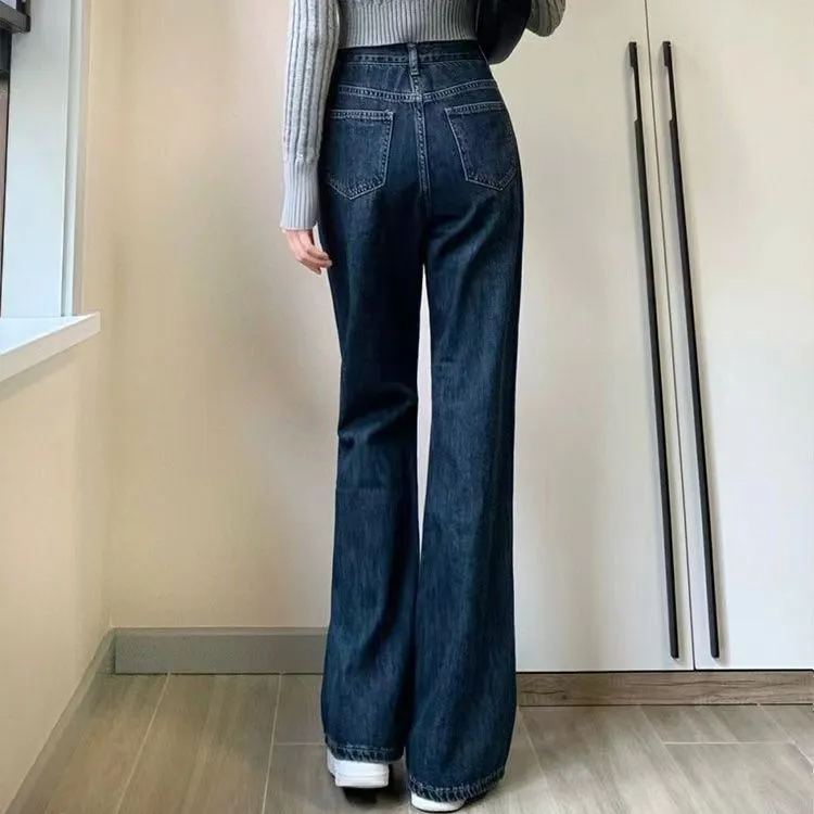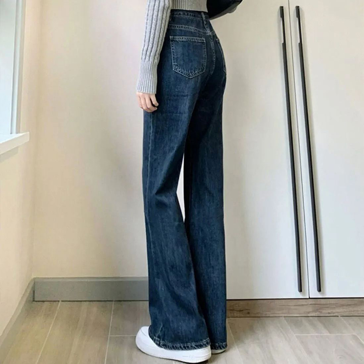 百搭簡約顯瘦高腰微喇牛仔褲