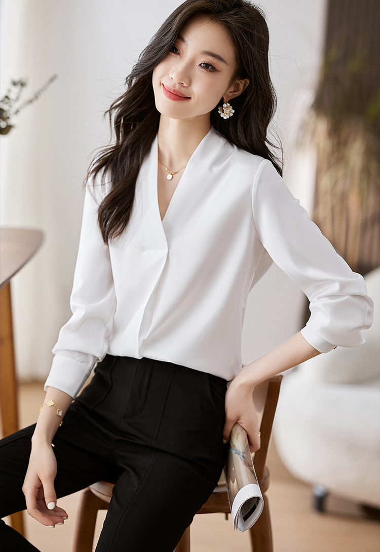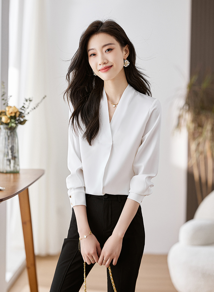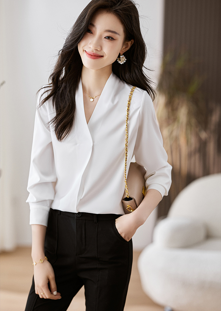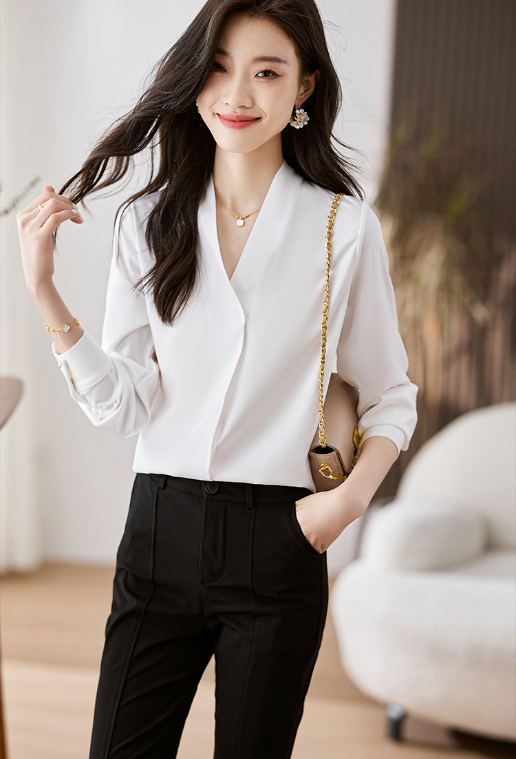 韓系百搭V領顯瘦長袖襯衫