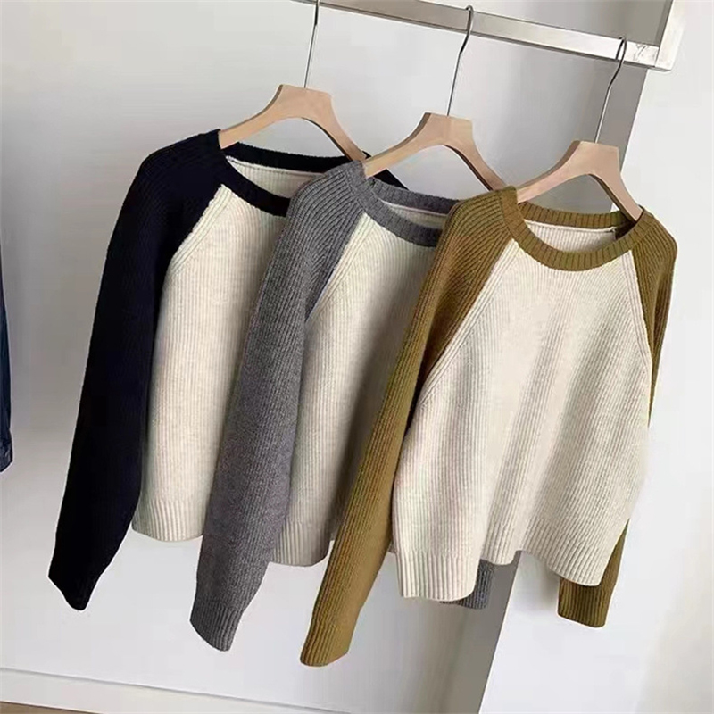 韓系撞色圓領插肩長袖毛衣(5色)