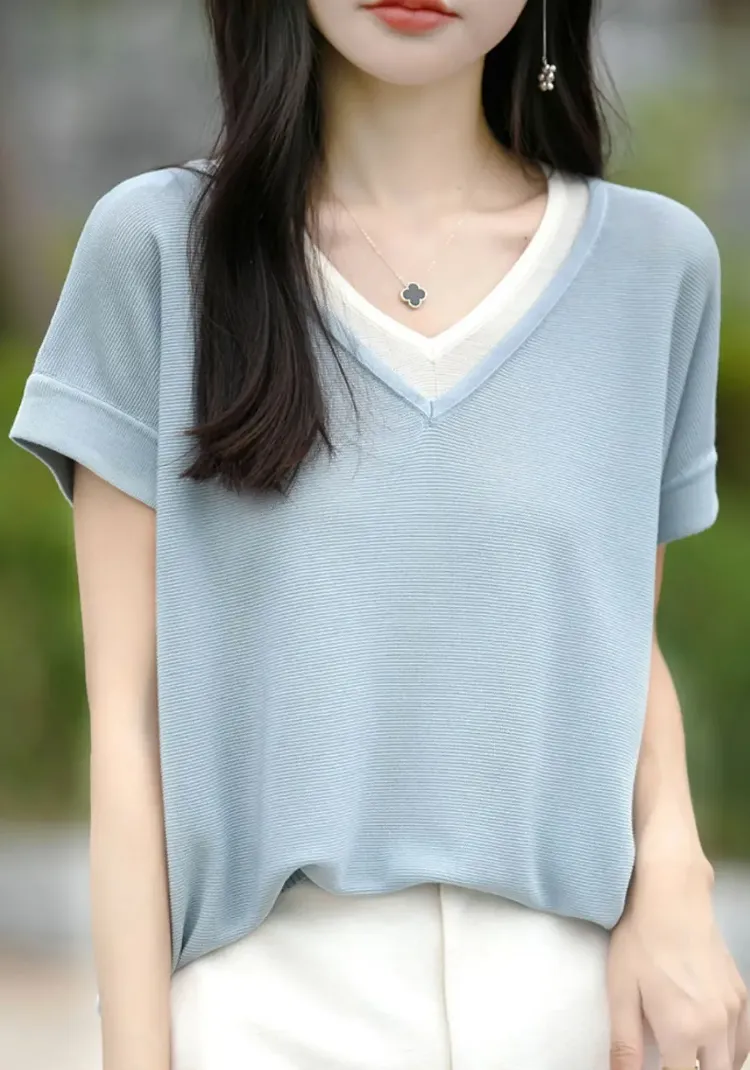 韓系假兩件V領寬鬆休閒拼色T恤(4色)