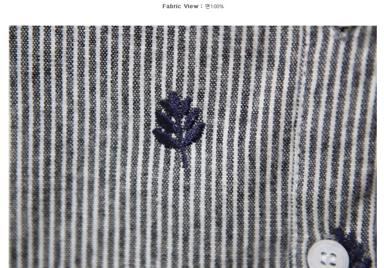 韓系小清新條紋樹葉刺繡立領襯衫
