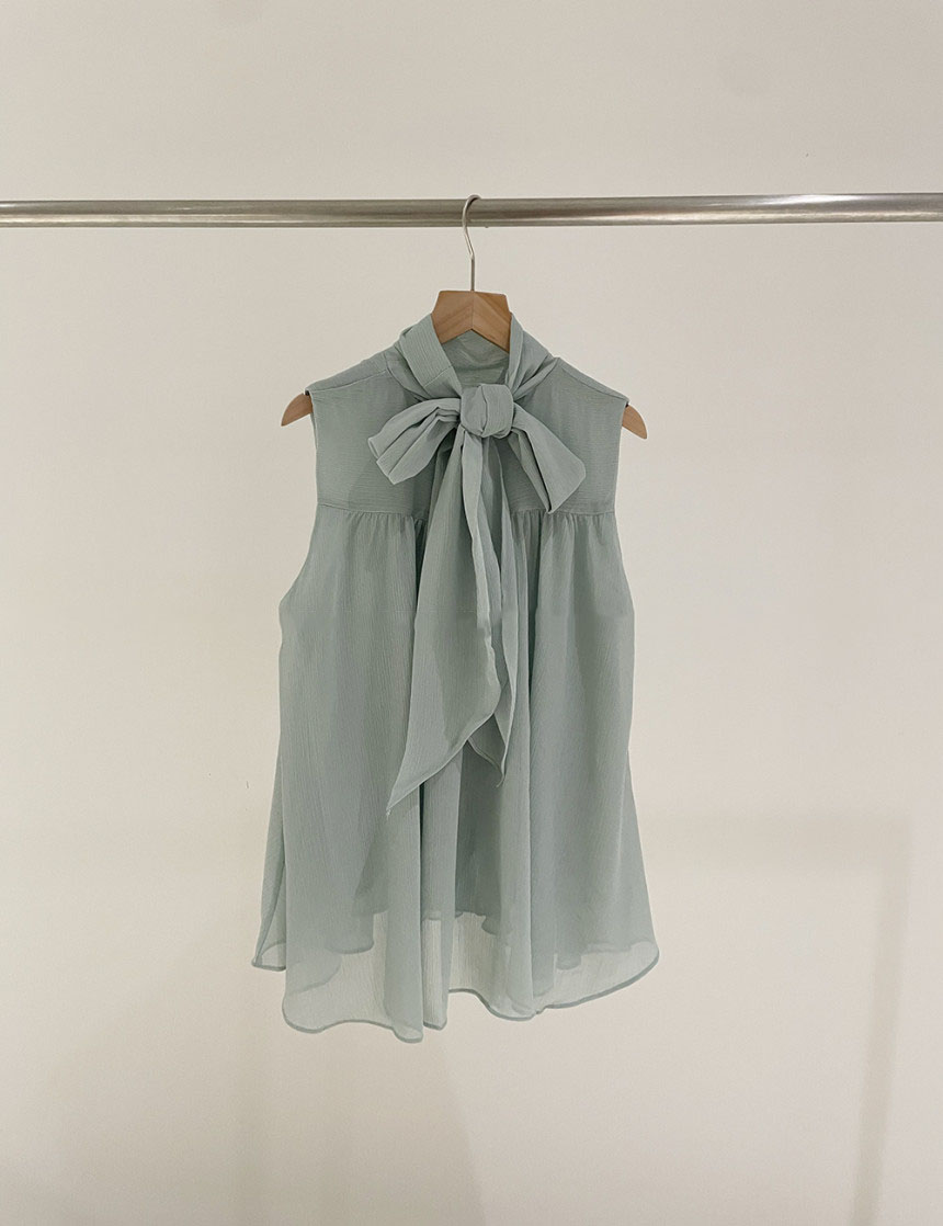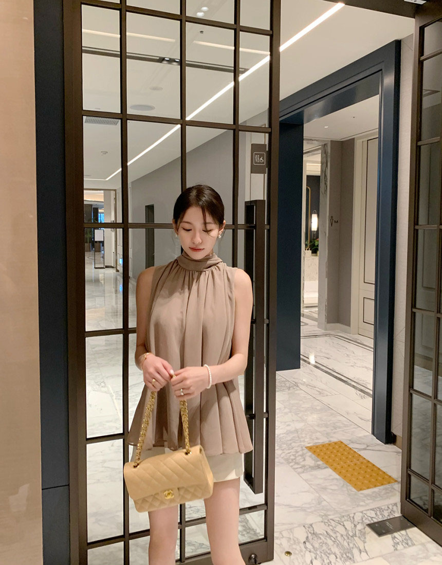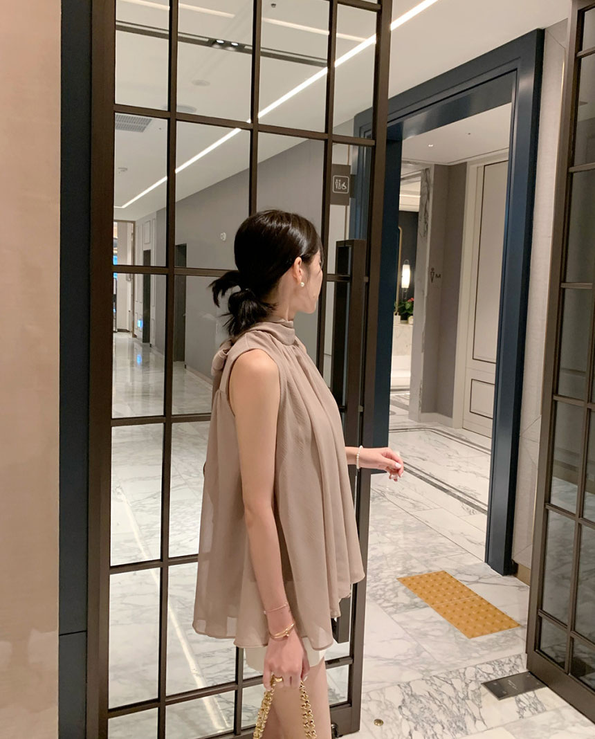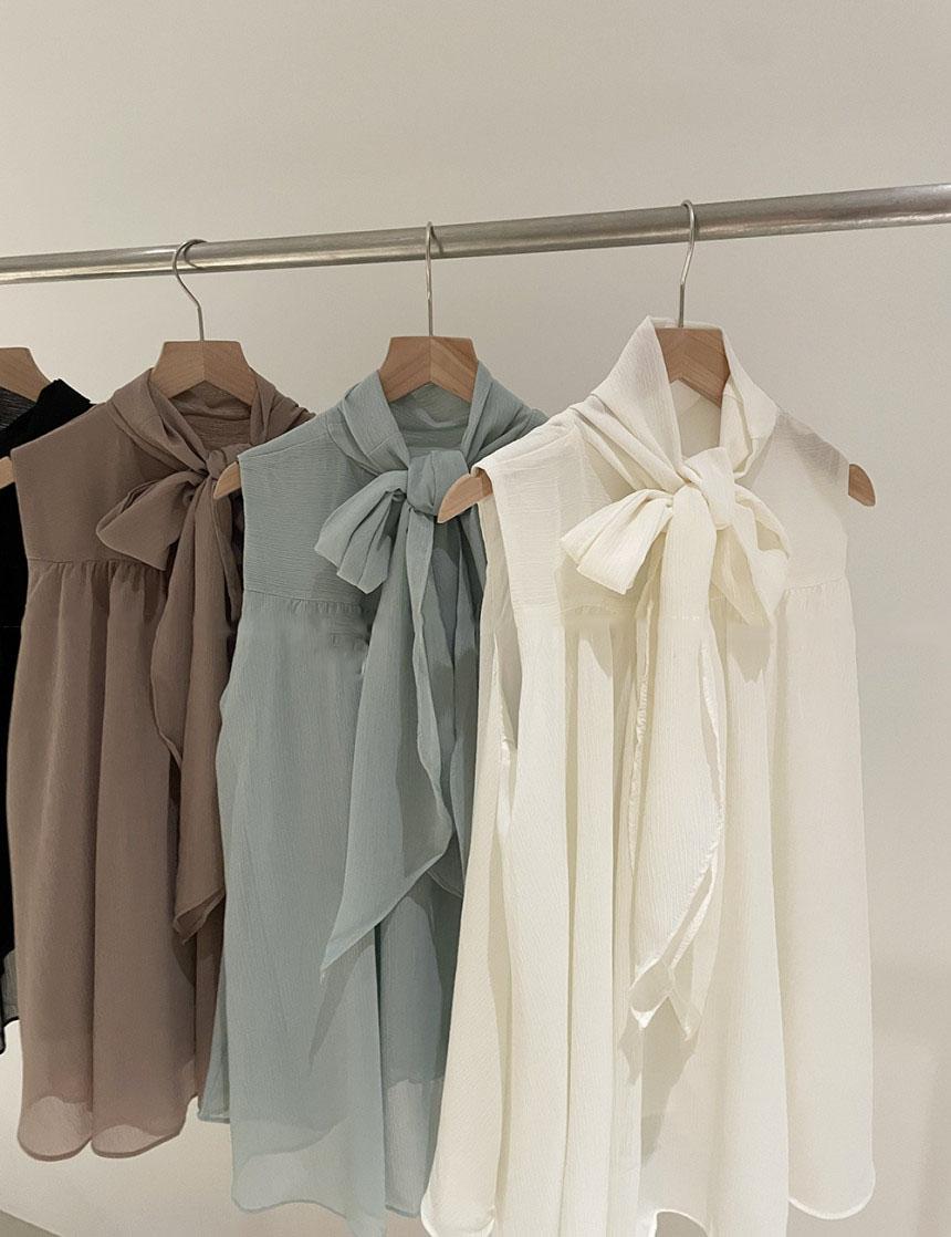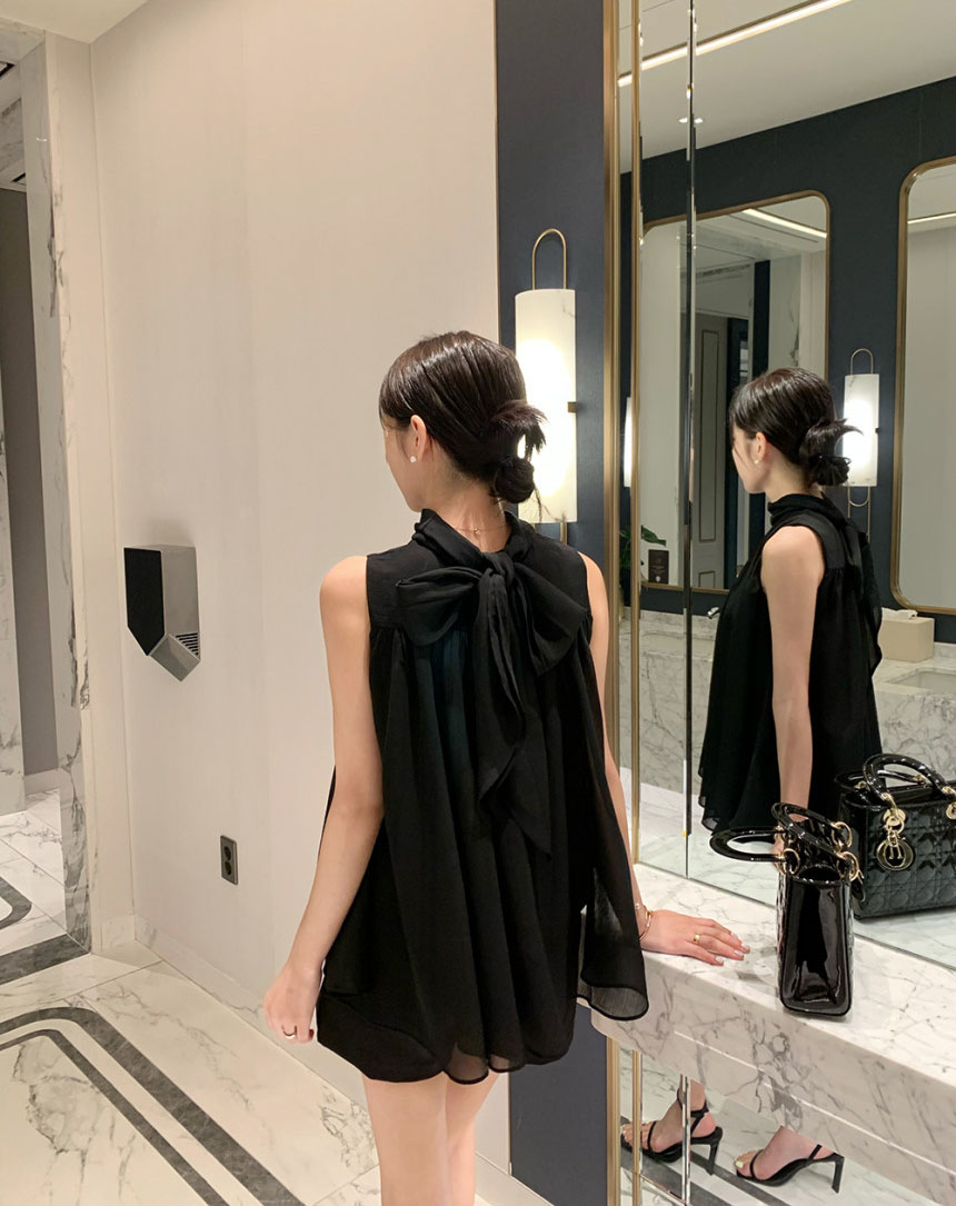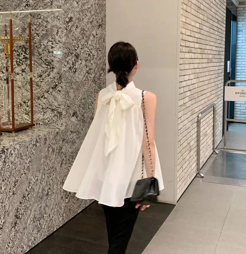 韓系優雅掛脖蝴蝶結無袖背心式襯衫(4色)