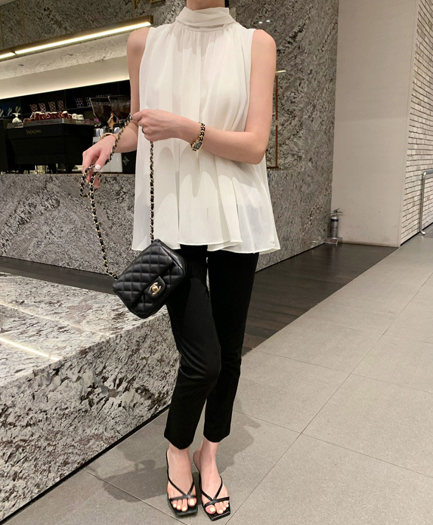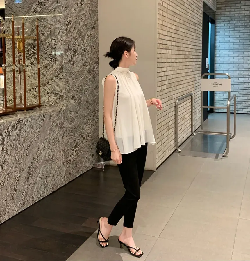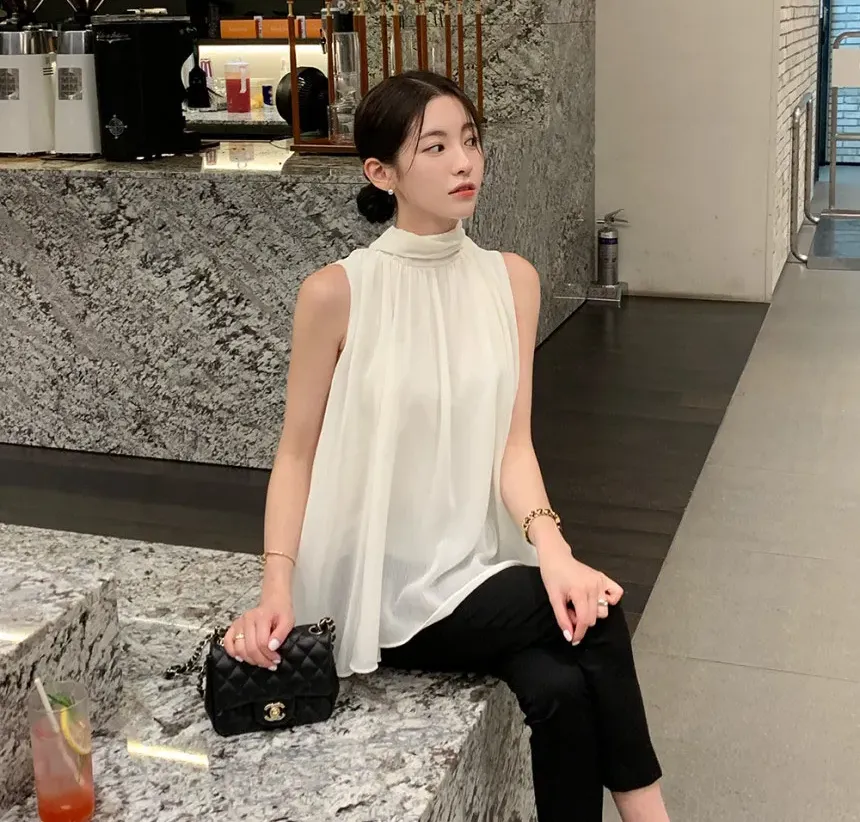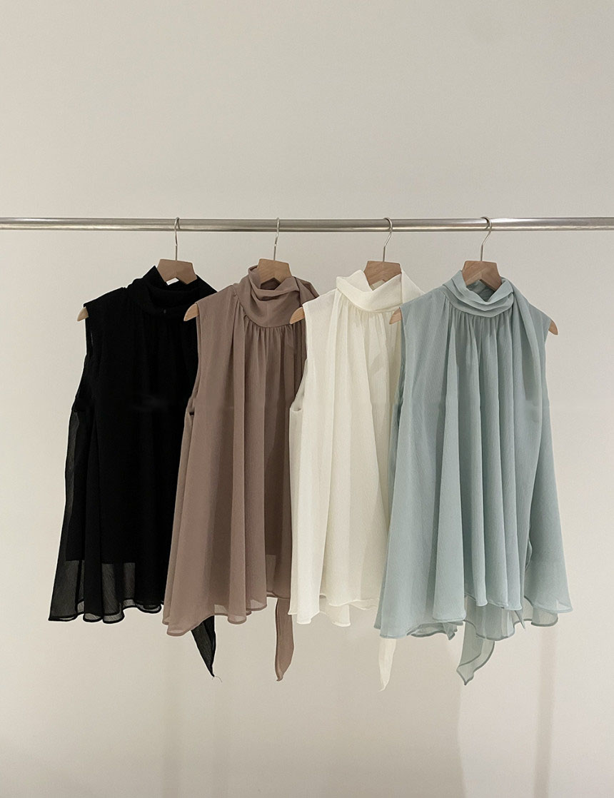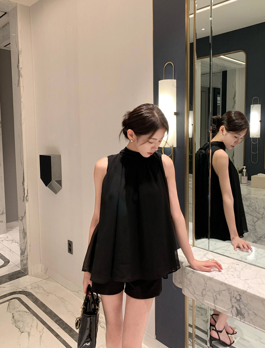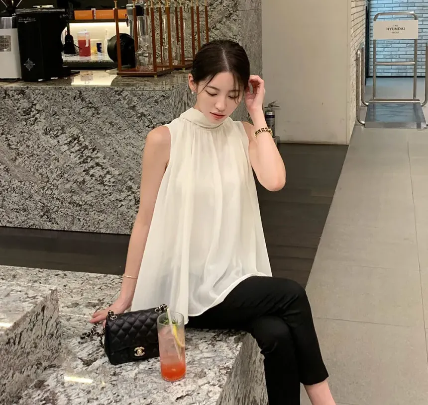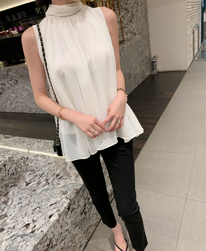 韓系優雅掛脖蝴蝶結無袖背心式襯衫(4色)